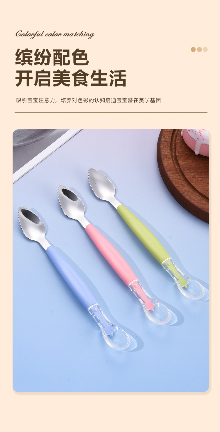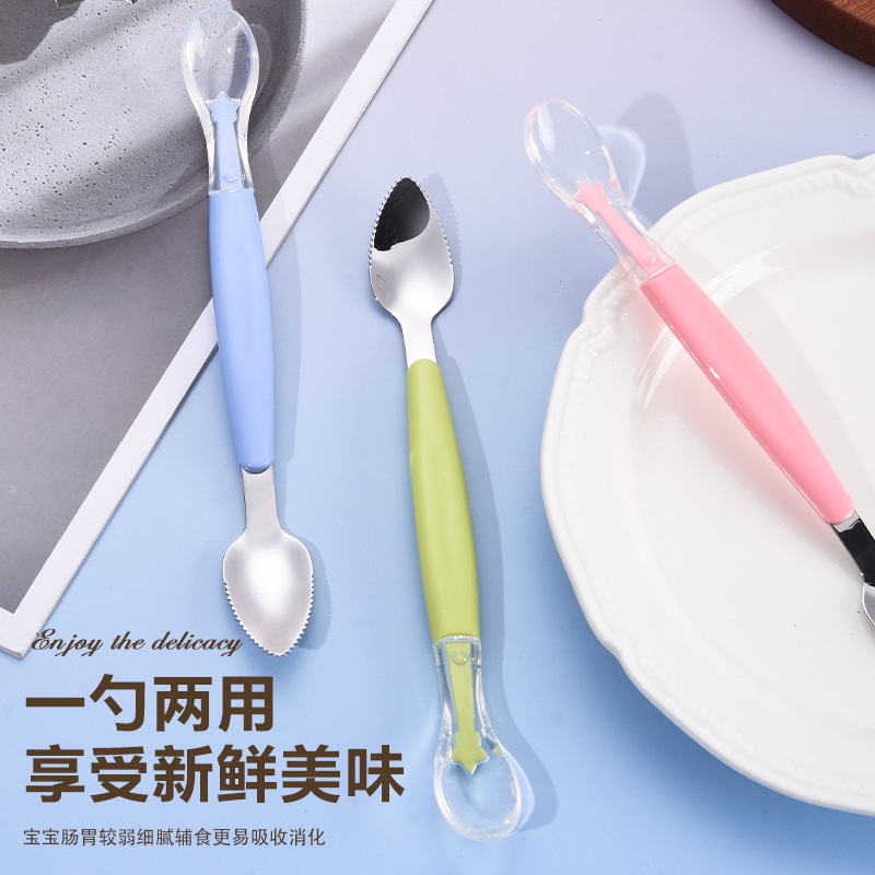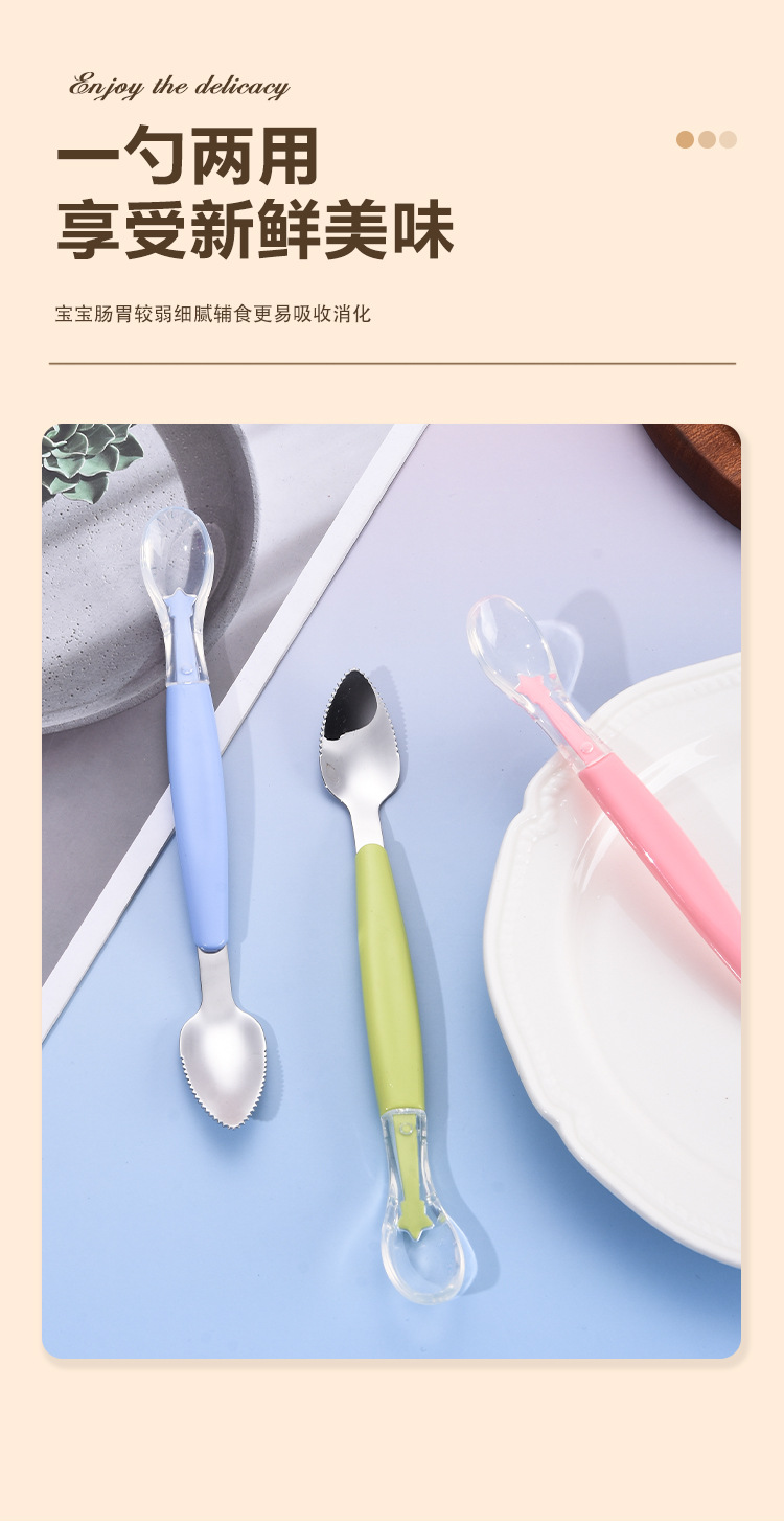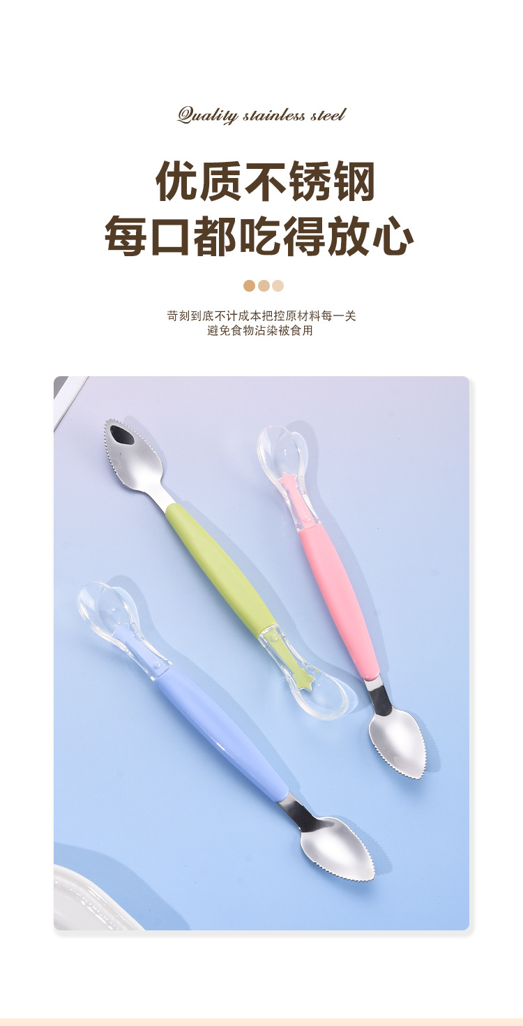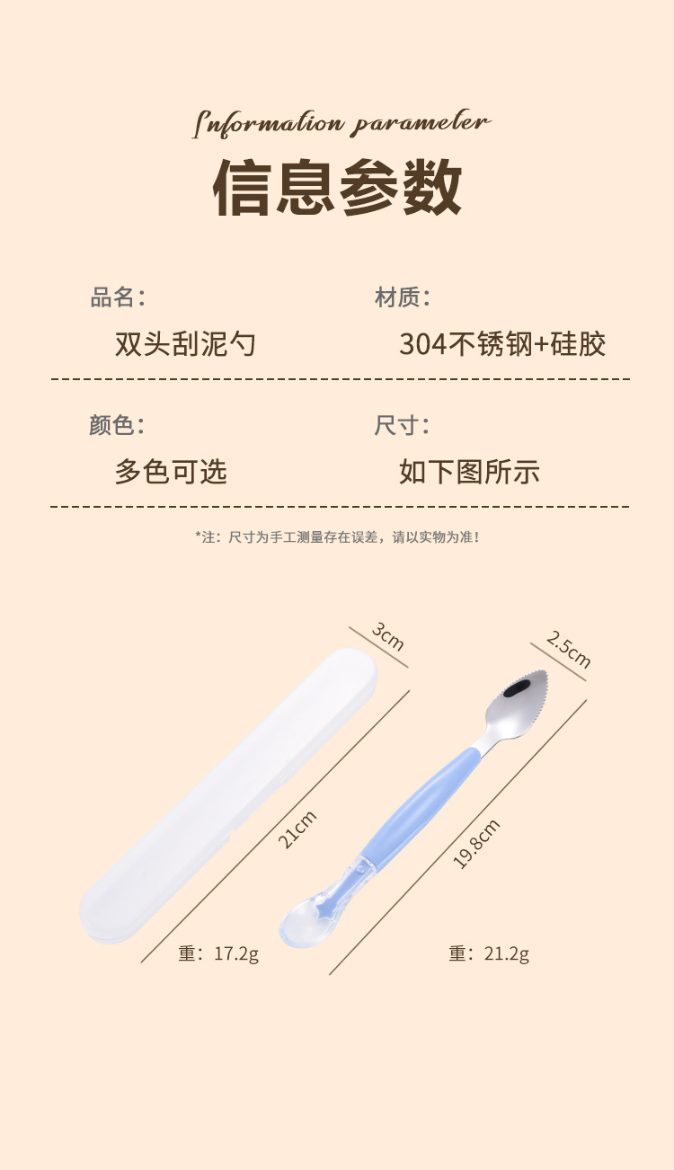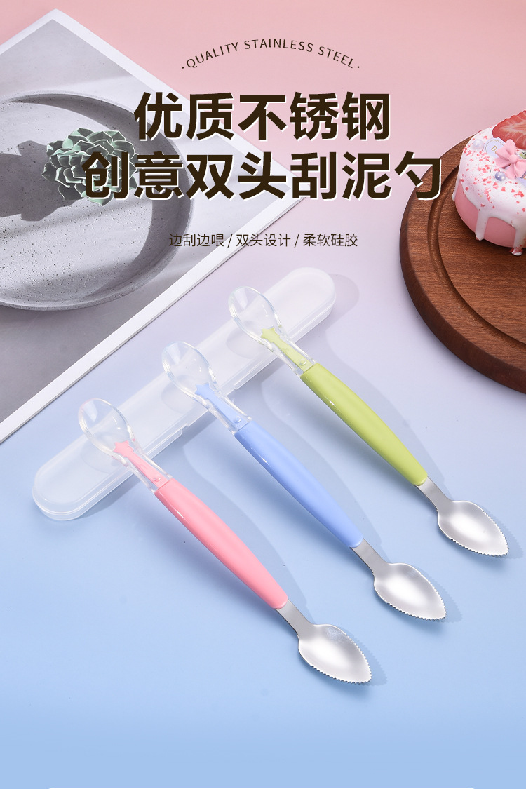 304不锈钢水果泥刮勺双头果泥勺宝宝辅食工具刮水果泥勺子挖泥勺