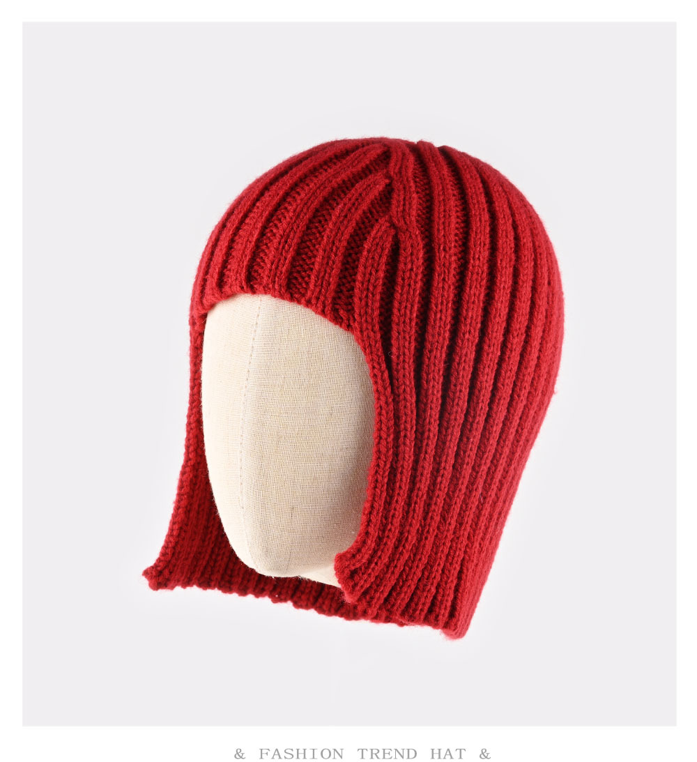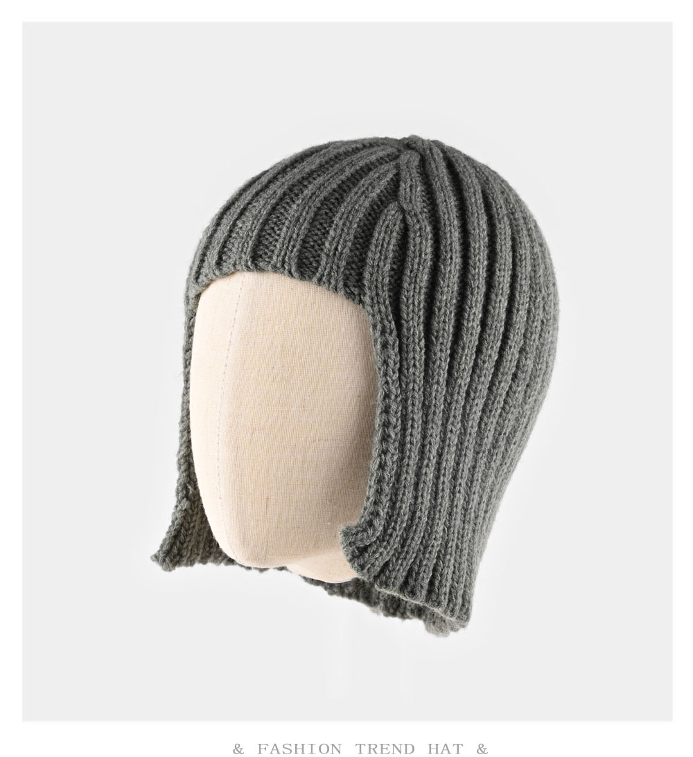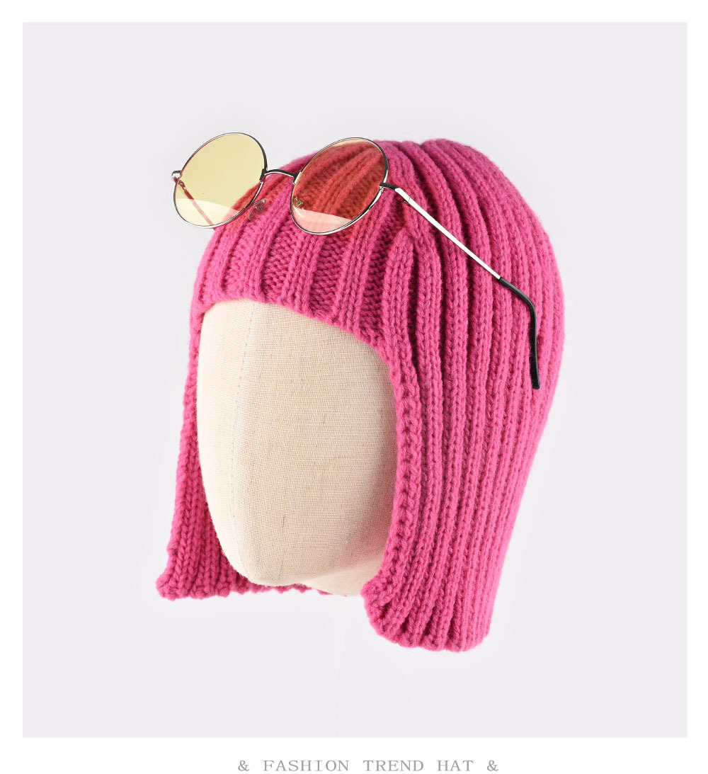 辣妹假发针织帽子女秋冬季保暖护耳套头包头帽时髦造型毛线帽跨境