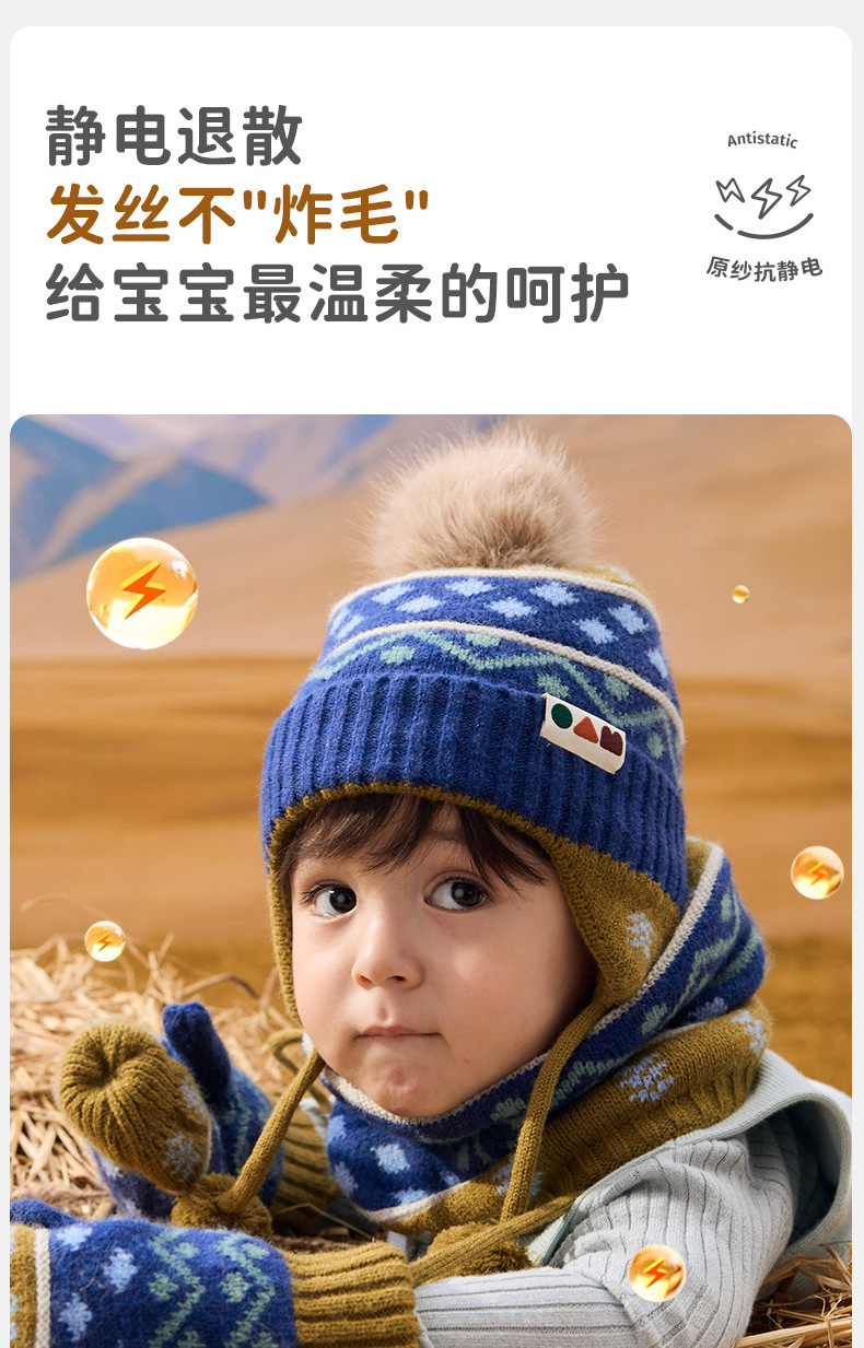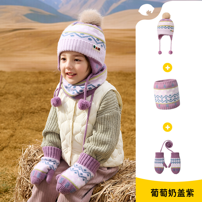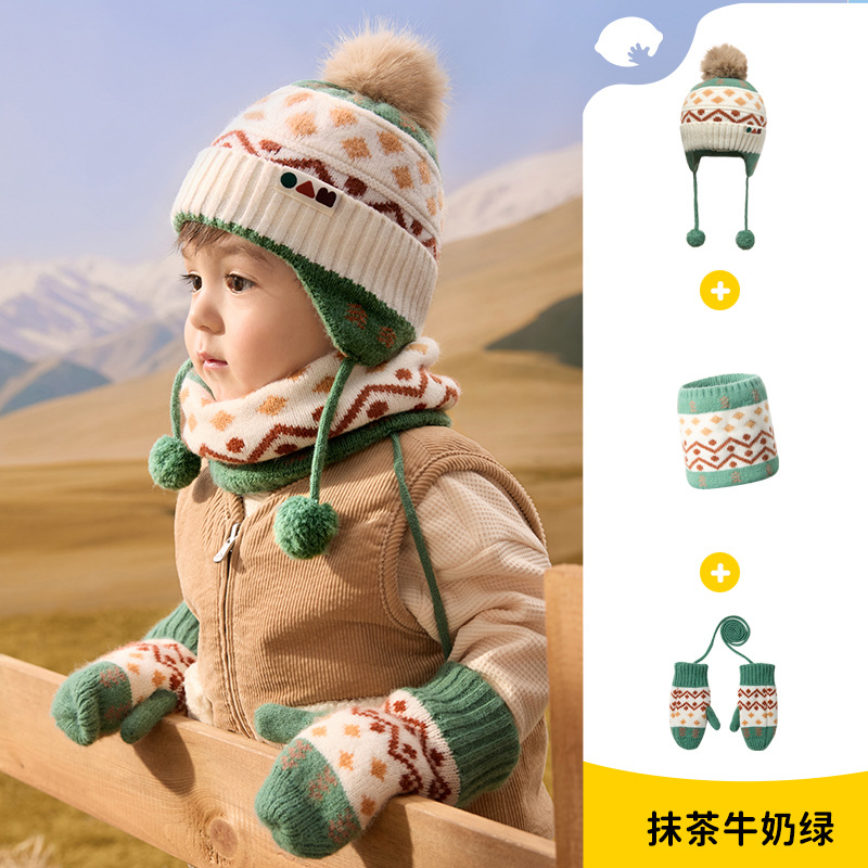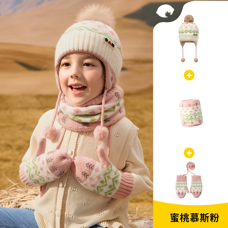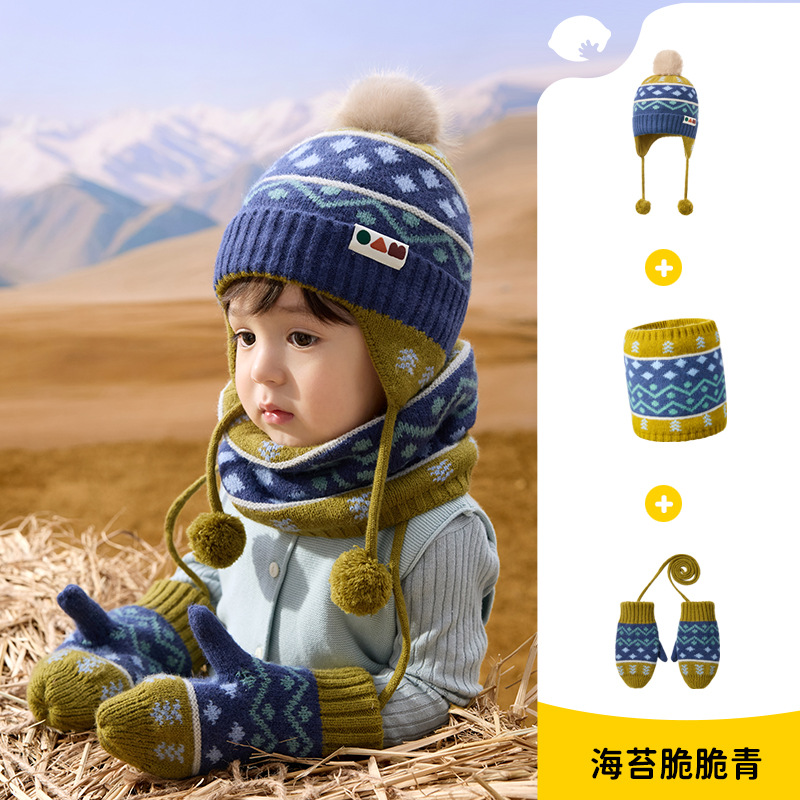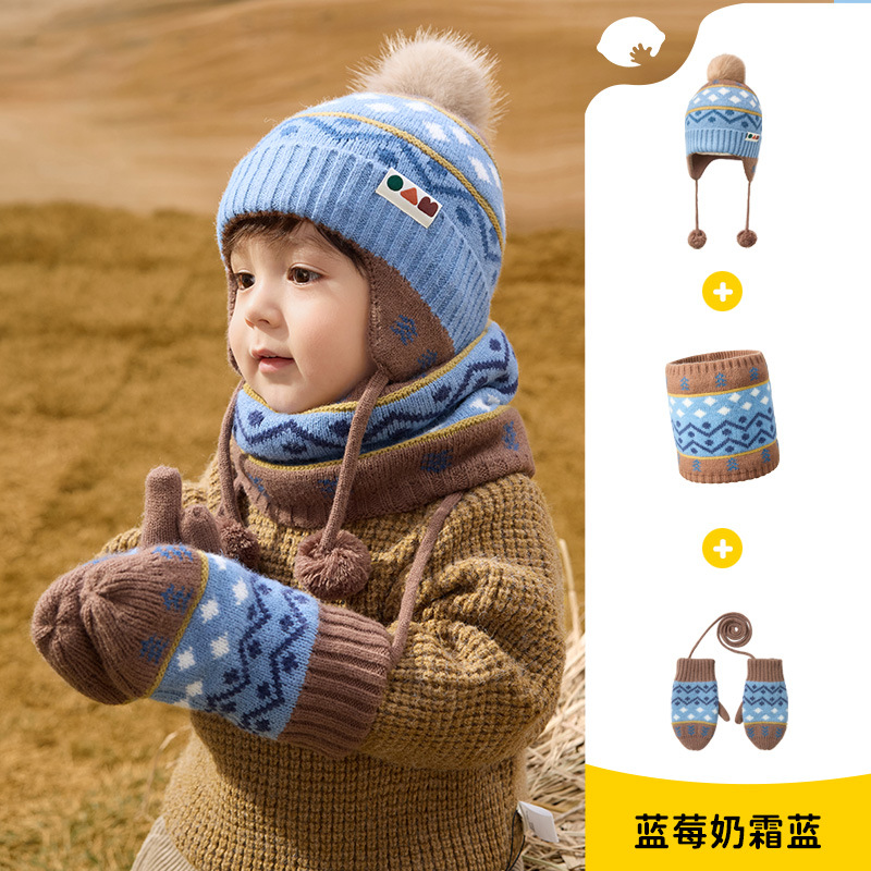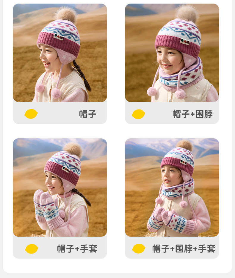 柠檬宝宝儿童帽子冬季围巾手套多件套保暖防风防寒护耳帽套装批发
