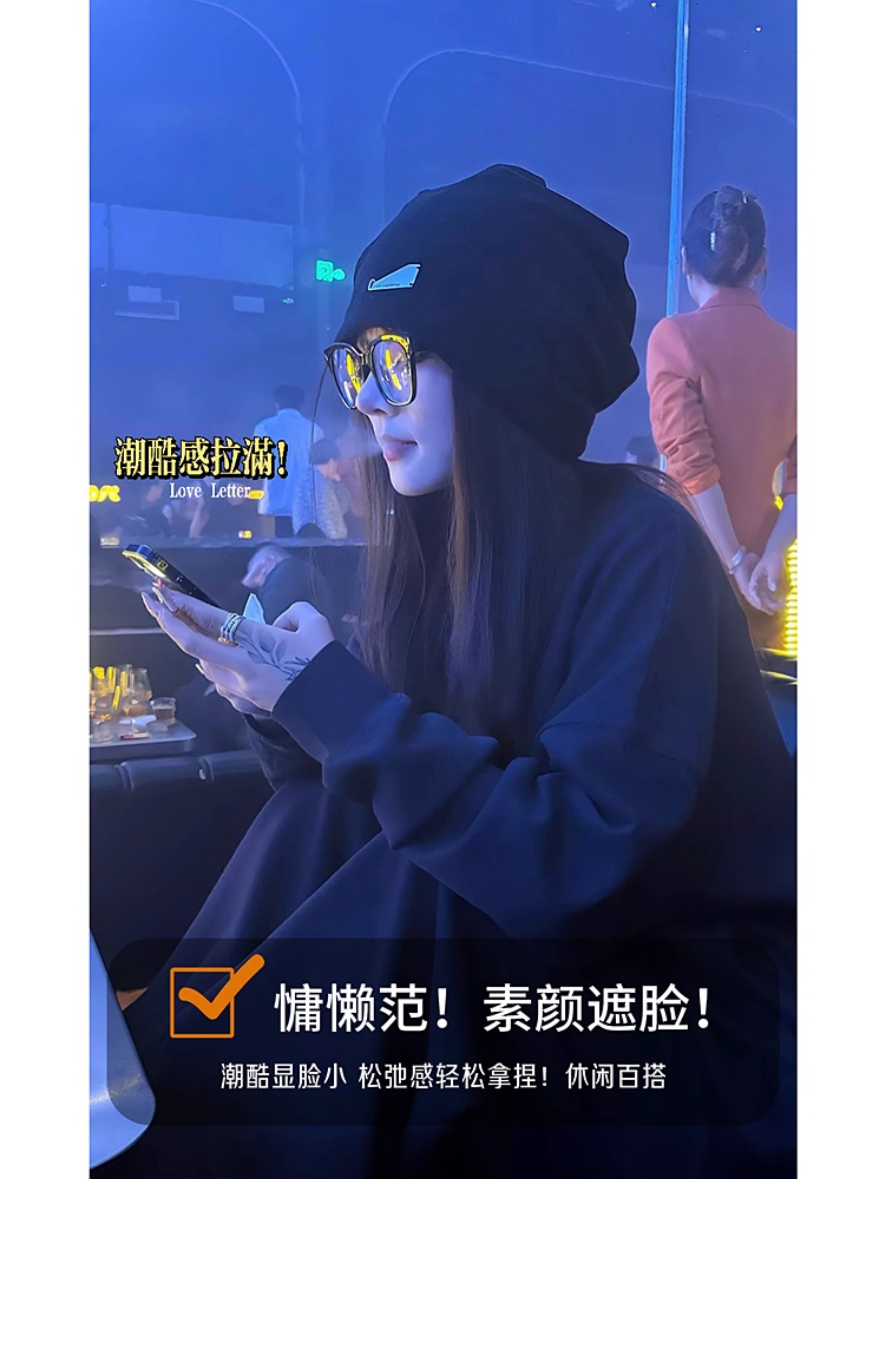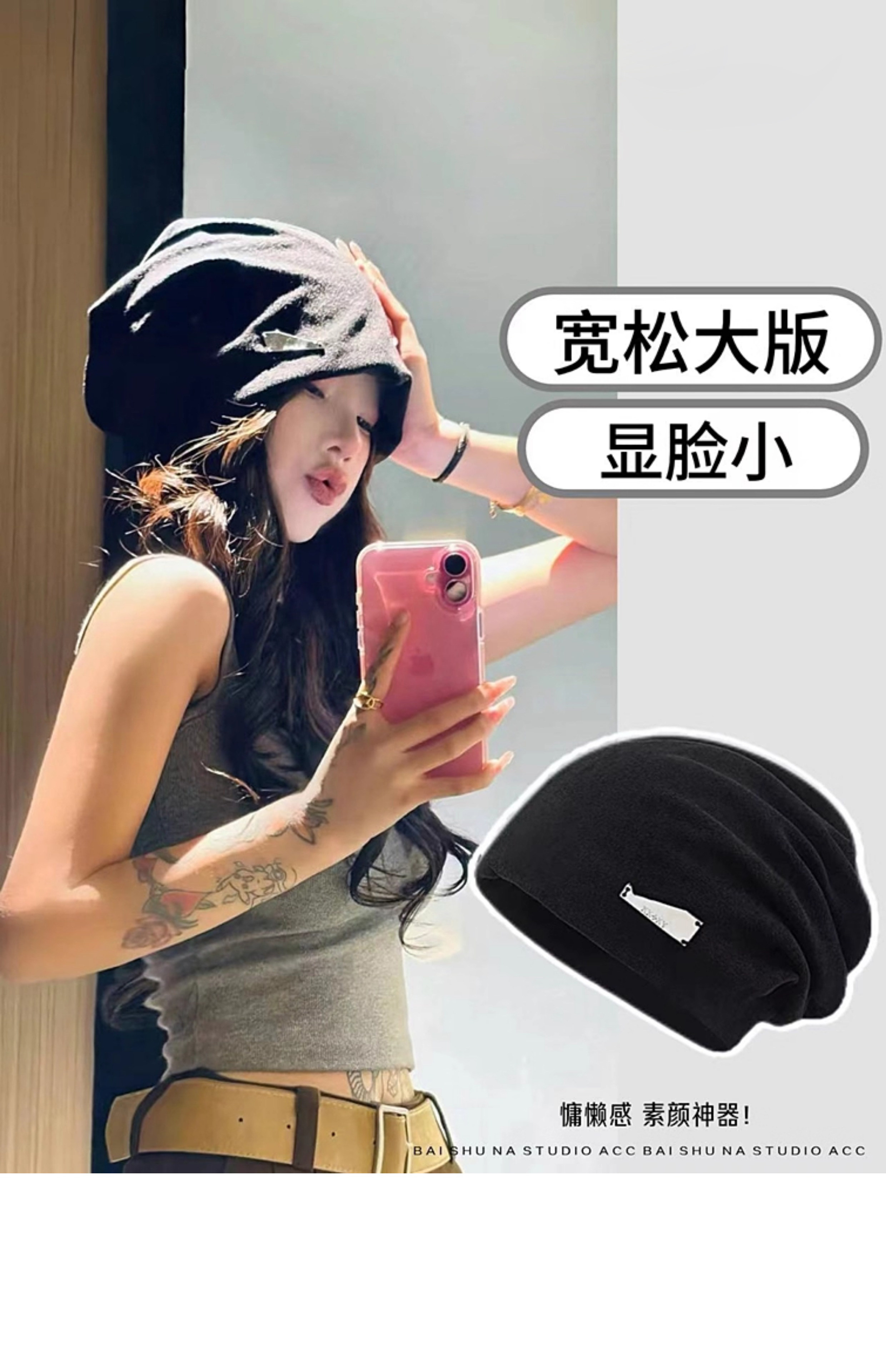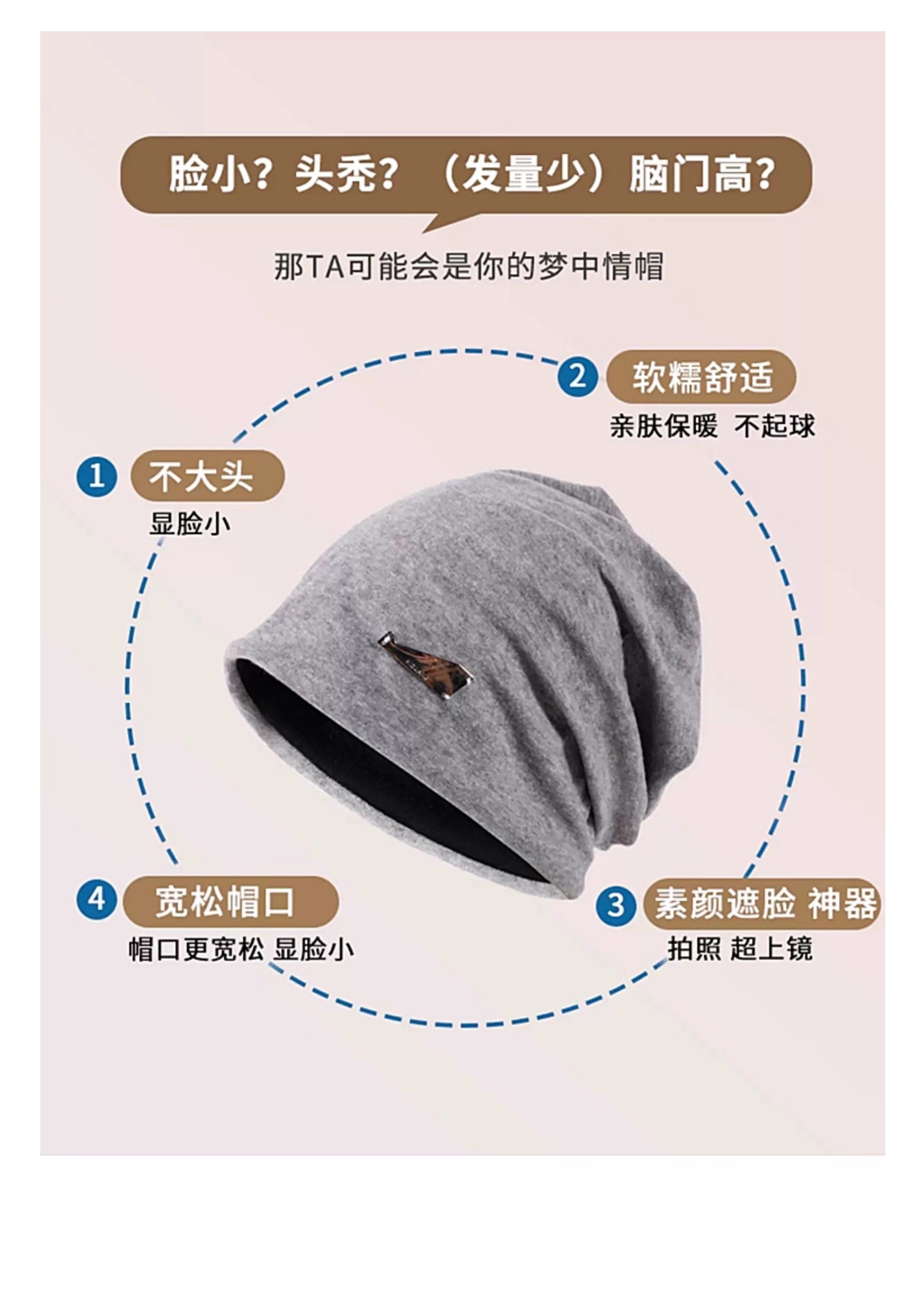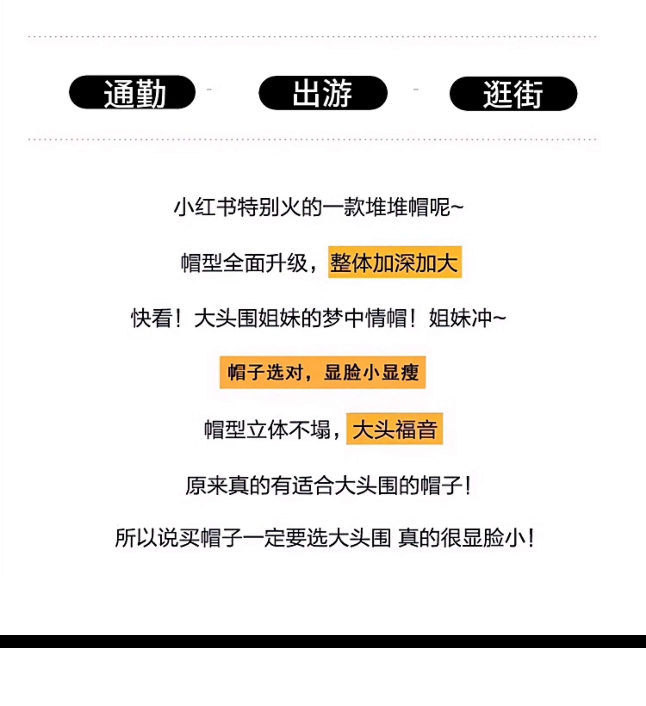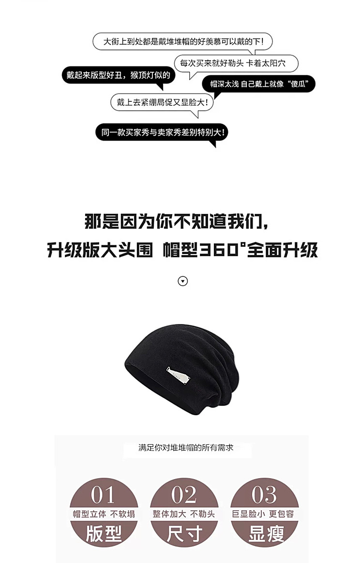 加大加深慵懒风堆堆帽子女秋冬季大头围月子帽冷帽显脸小包头帽男