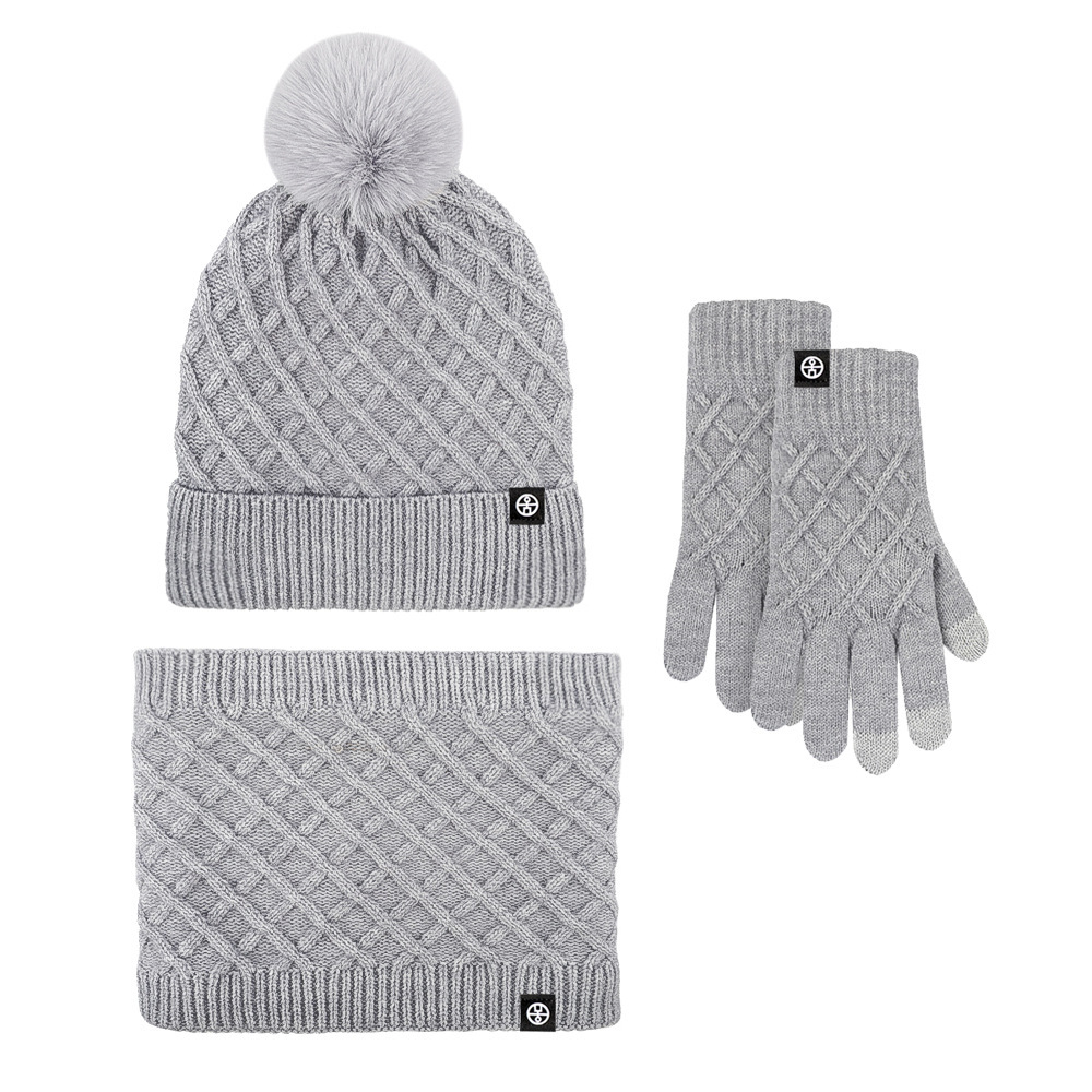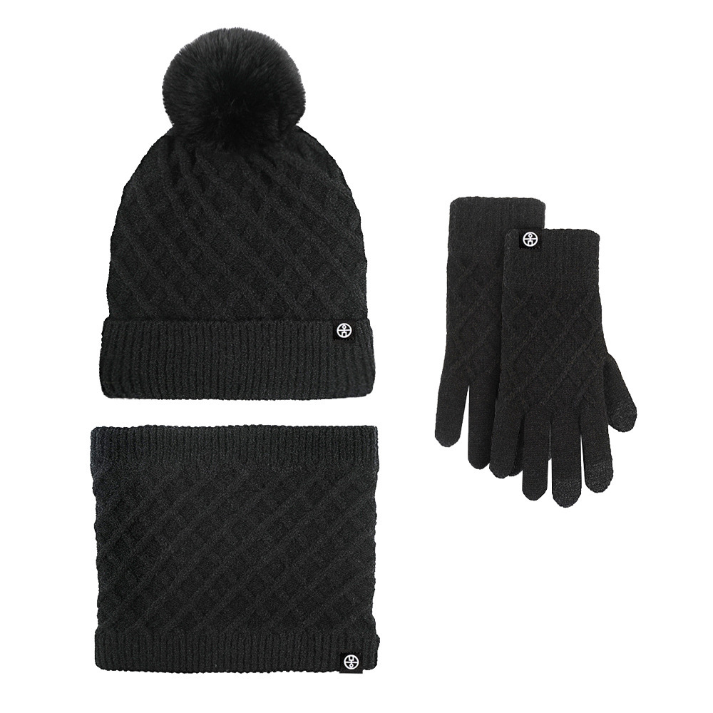 亚马逊冬季帽子男加绒加厚针织帽子围巾手套三件套装保暖帽子女