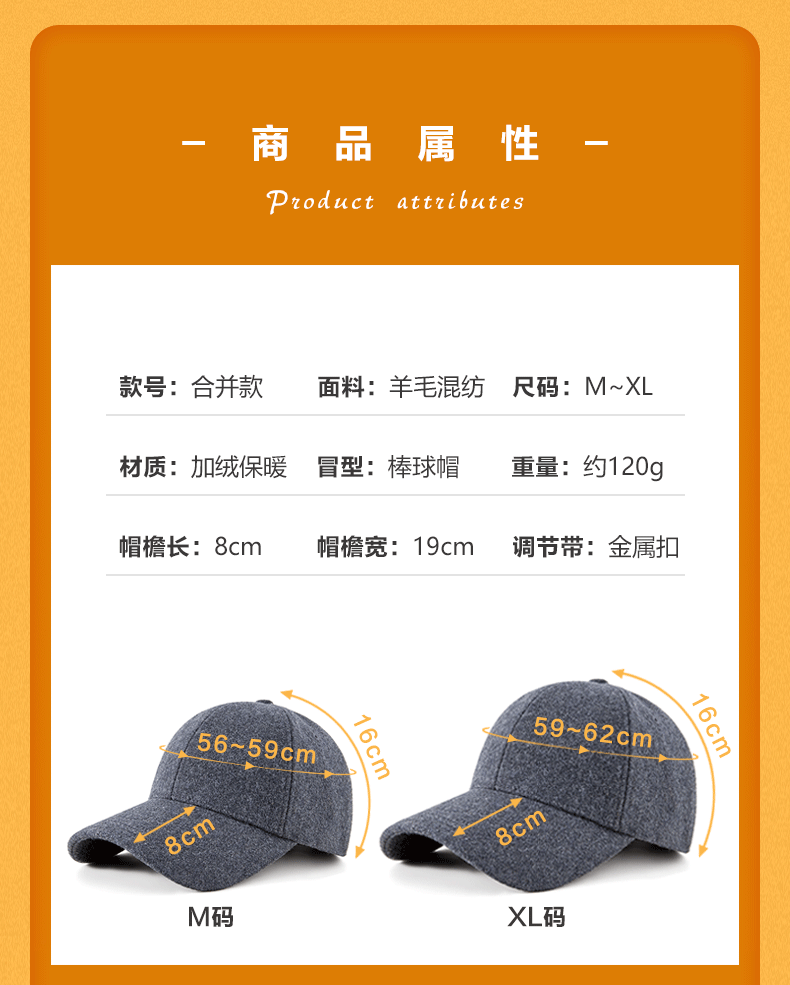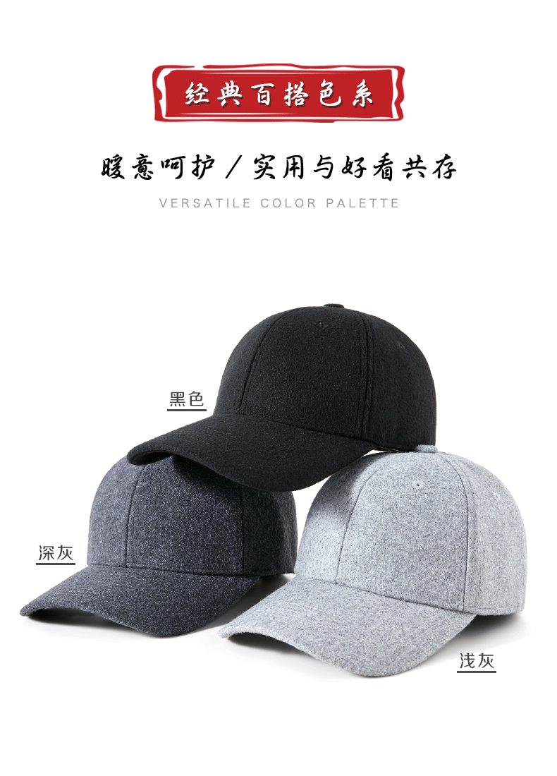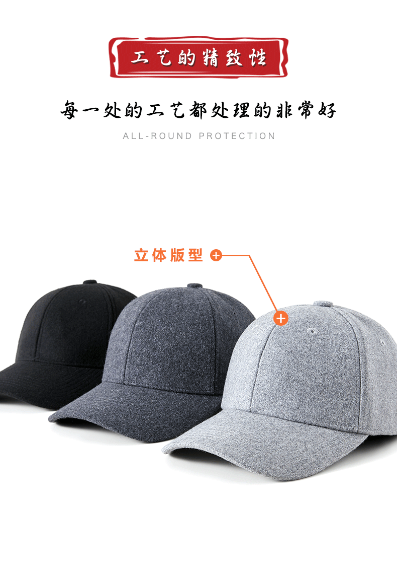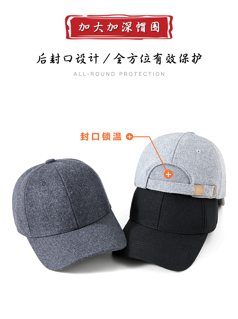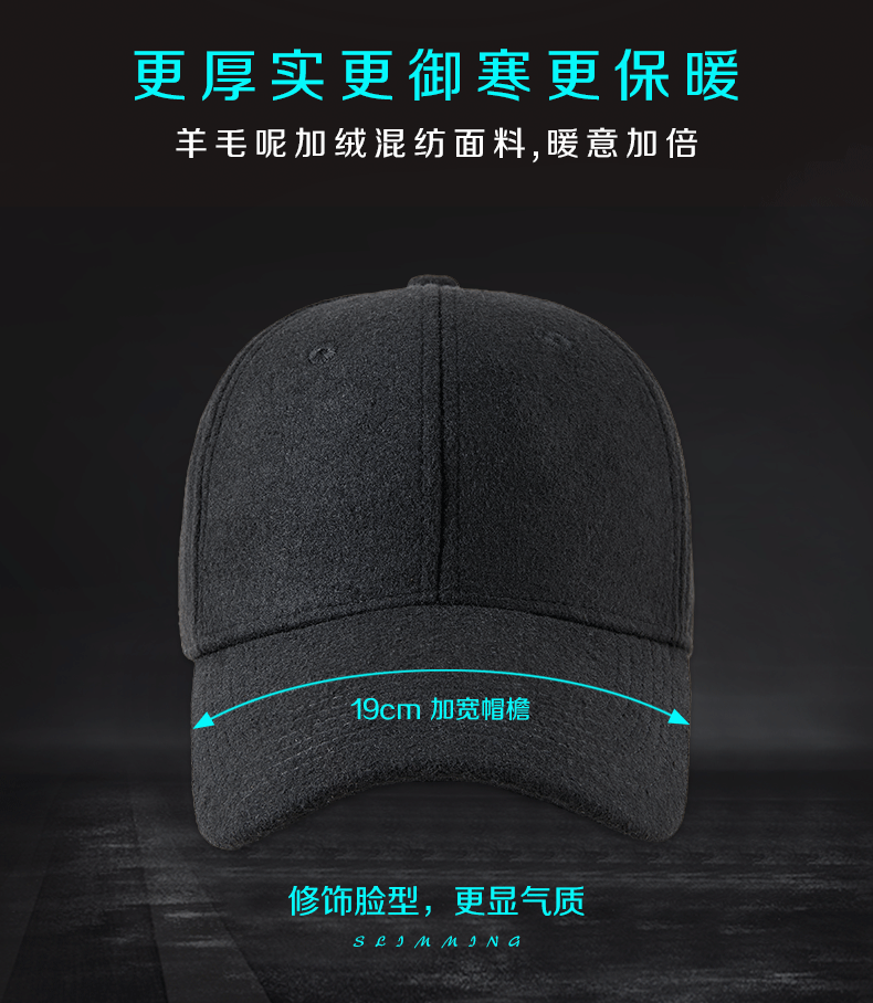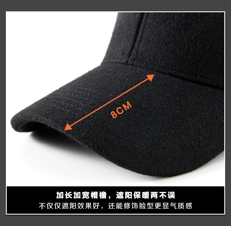 秋冬羊毛呢加绒鸭舌帽中老年保暖帽子女大头围遮阳棒球帽男款定制