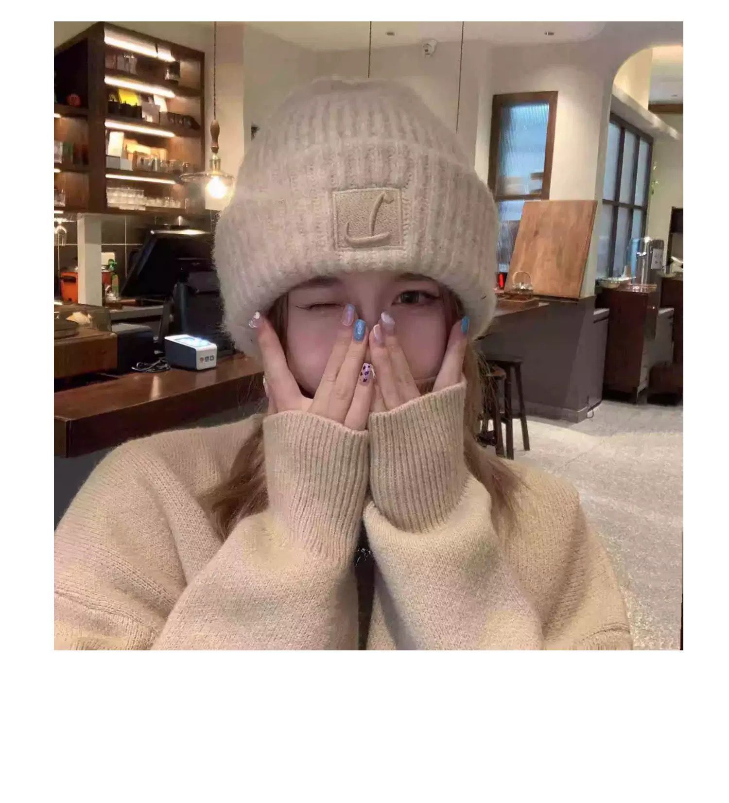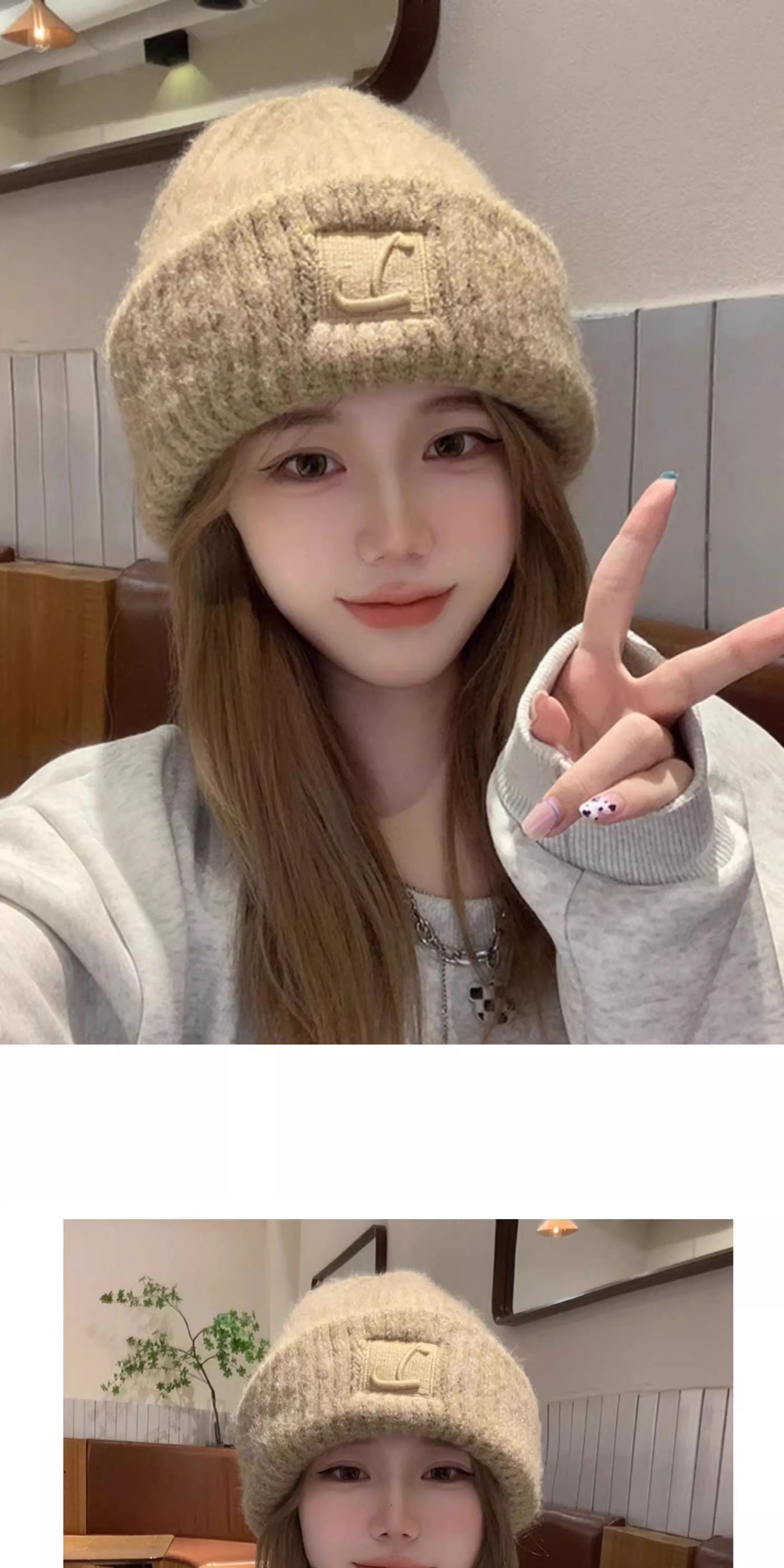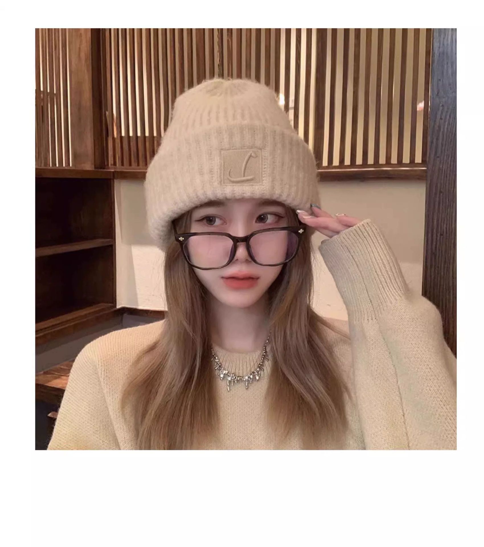 2025新款秋冬帽子护耳堆堆帽毛线帽围巾针织宽松大头围巾保暖加厚