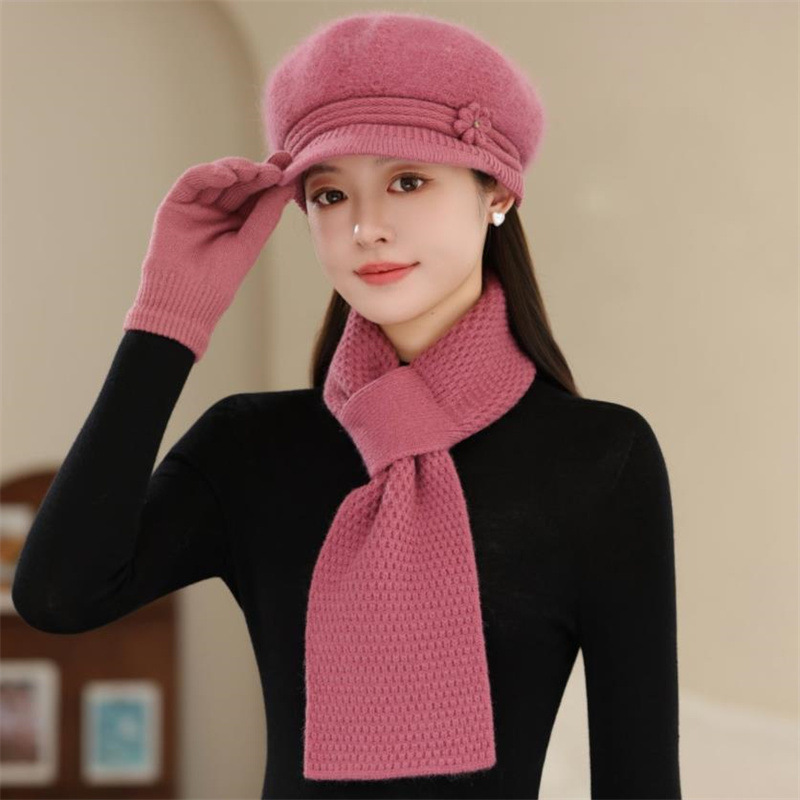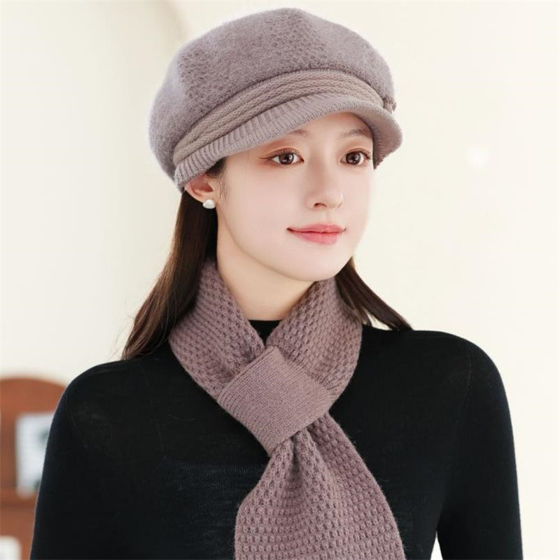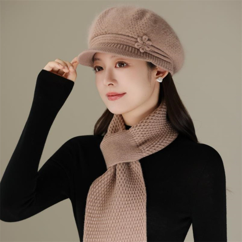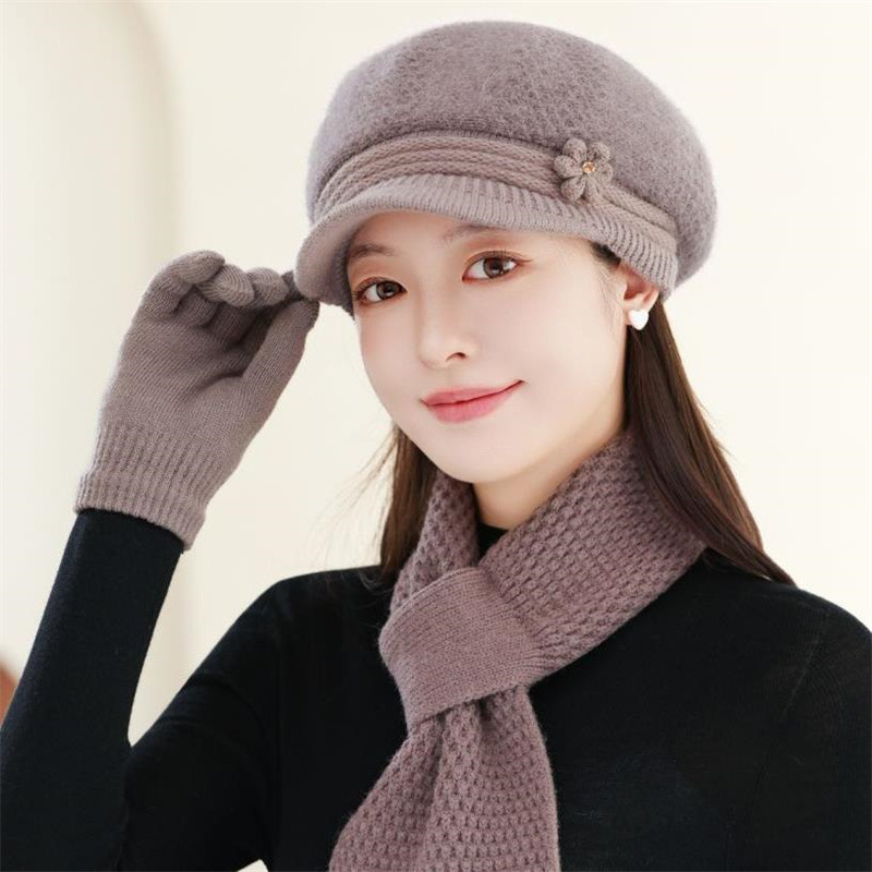 冬天帽子女士针织帽中老年人妈妈加绒毛线帽老人秋冬保暖骑车围巾