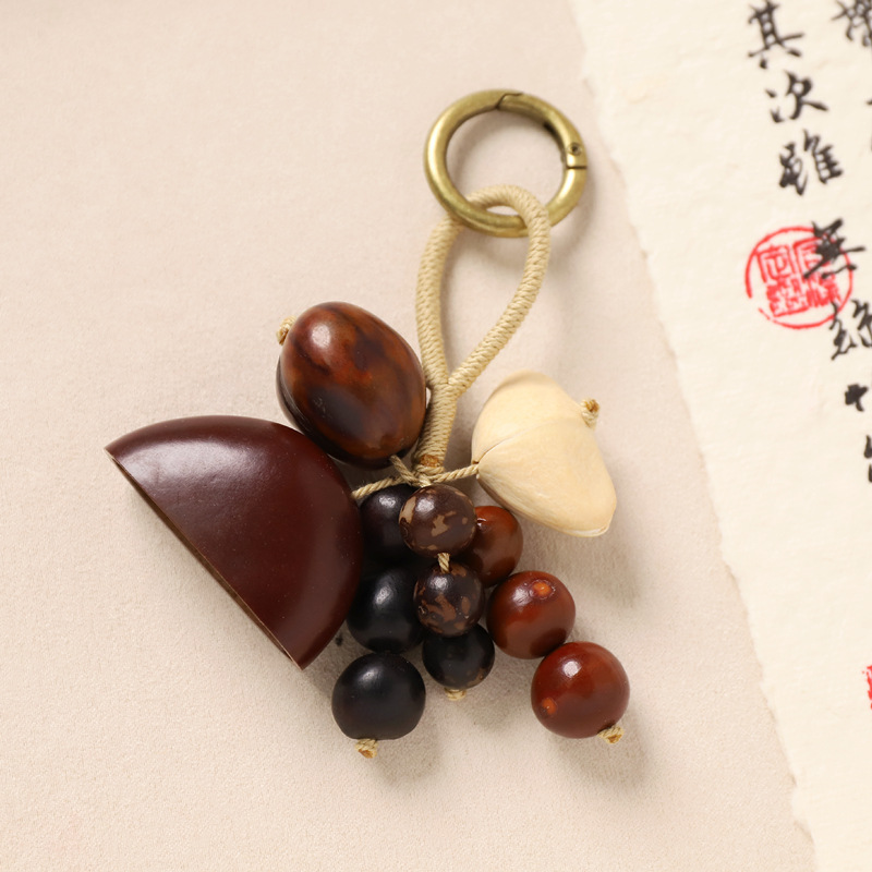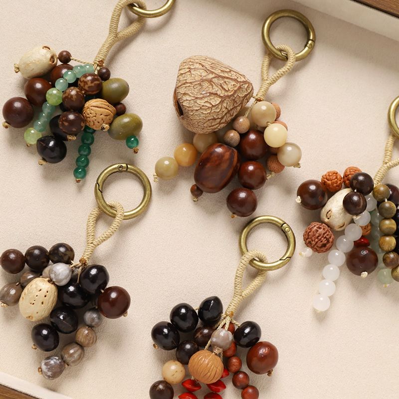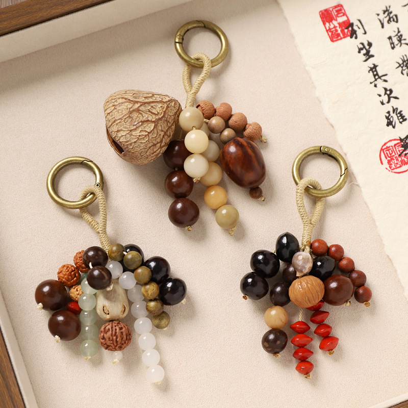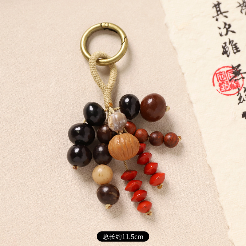 新中式满愿种子串包包挂件手工编织天然菩提钥匙扣文艺复古包挂饰
