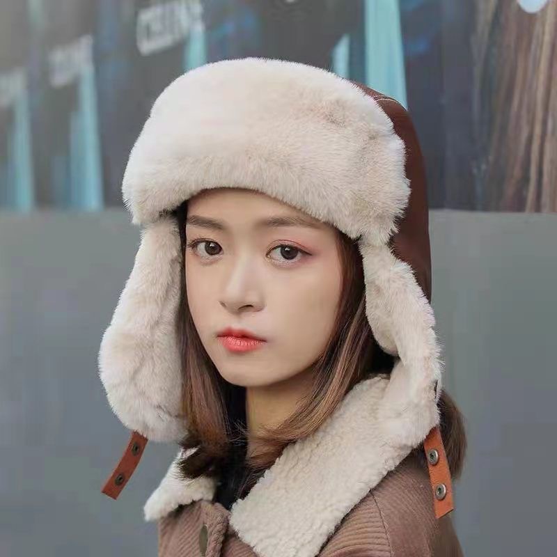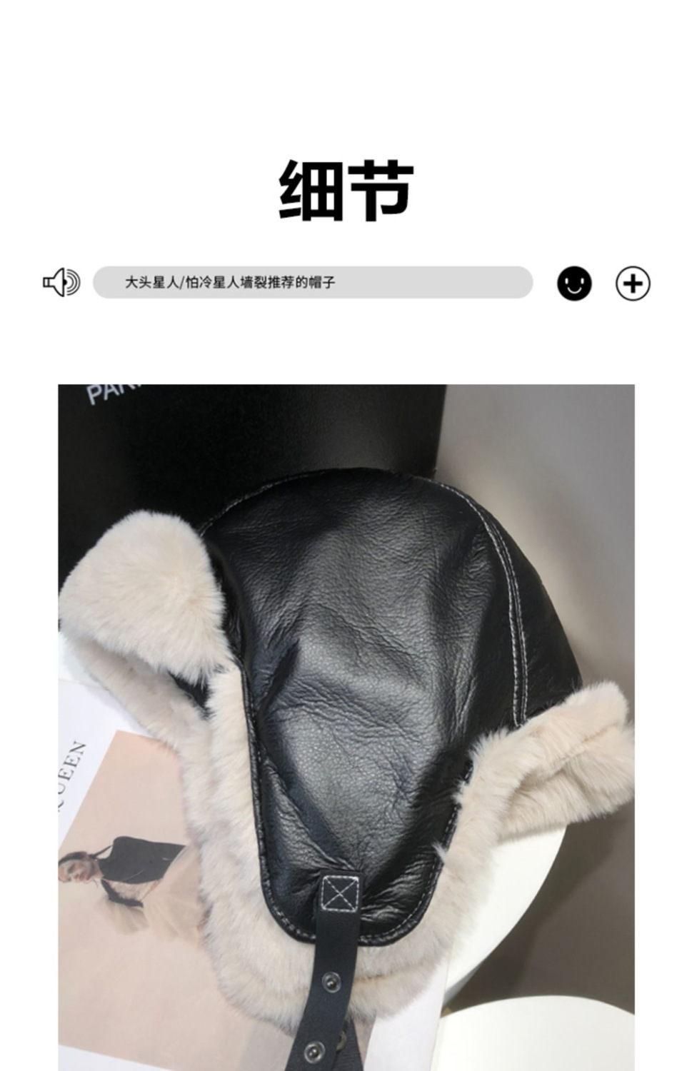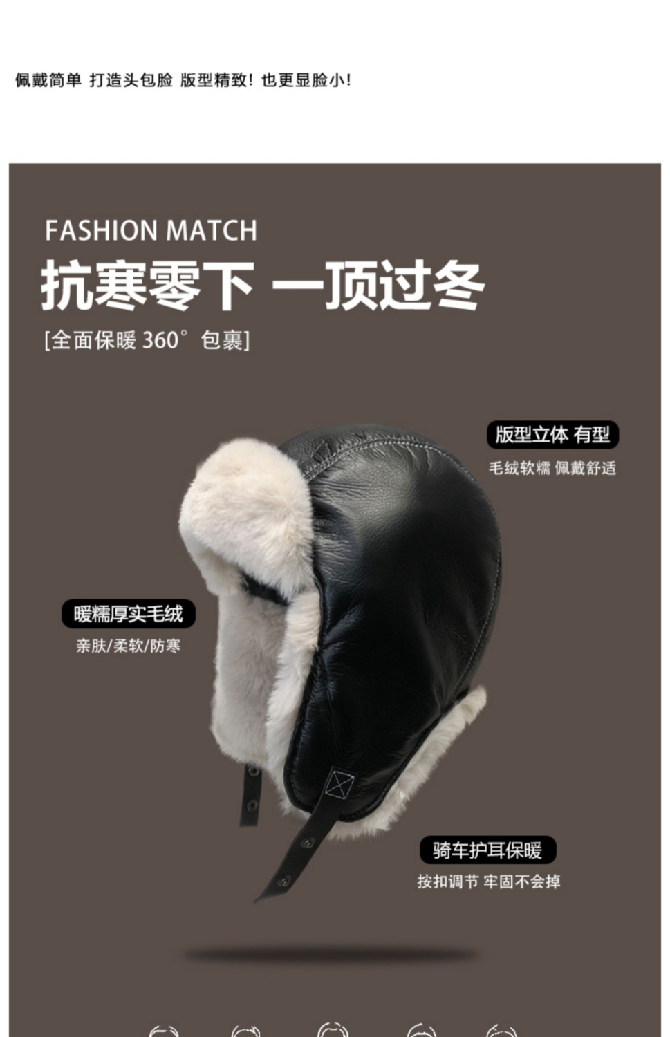 成人皮革防水保暖雷锋帽男士户外摩托车滑雪加绒飞行帽女士护耳帽