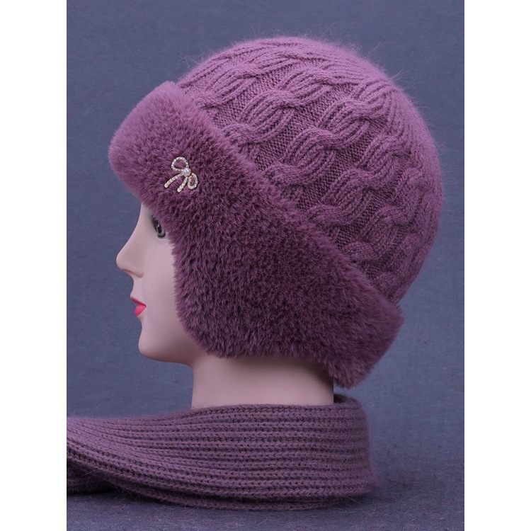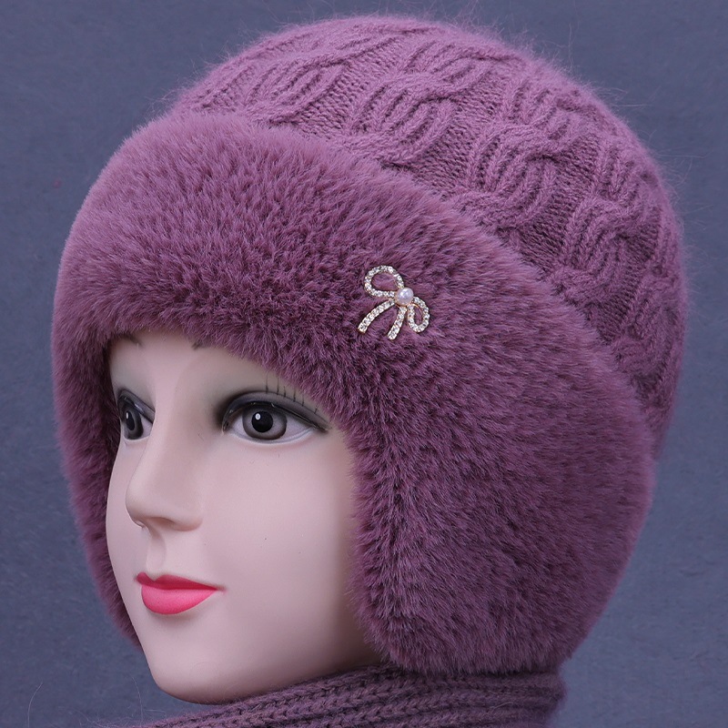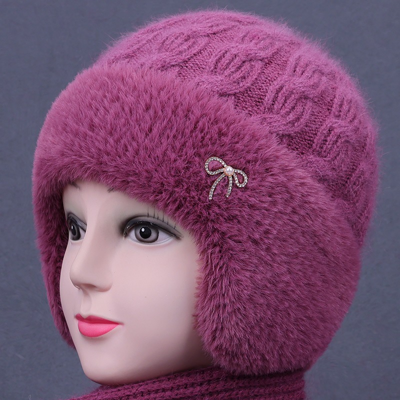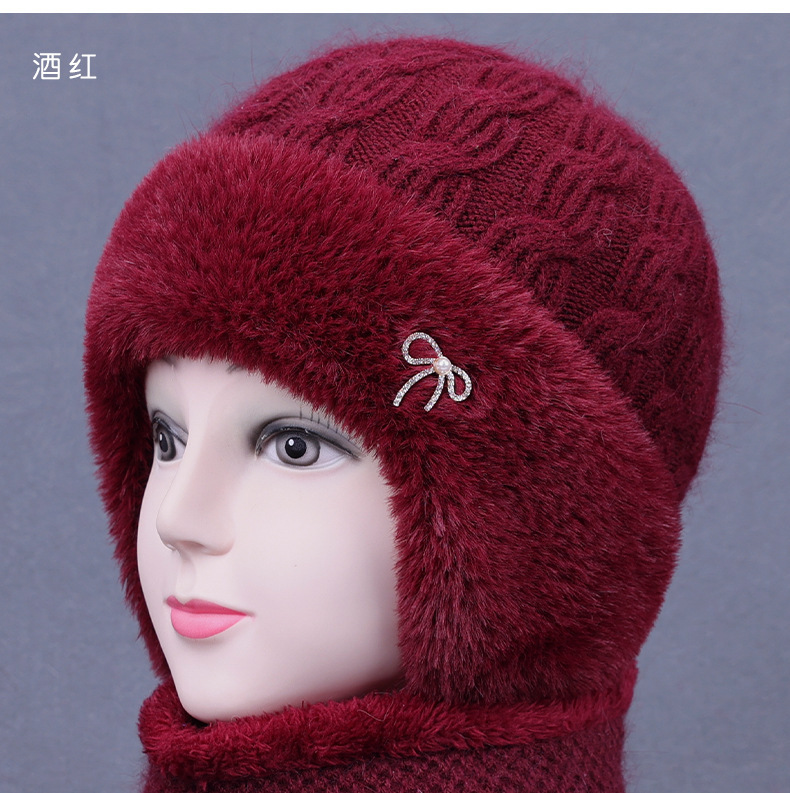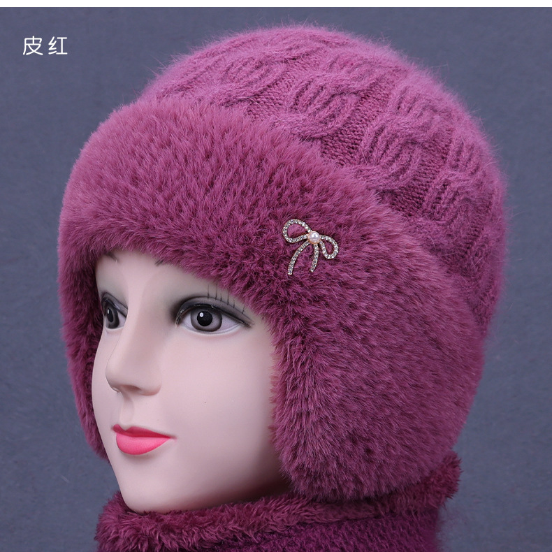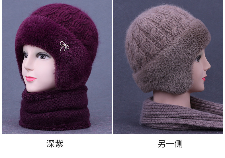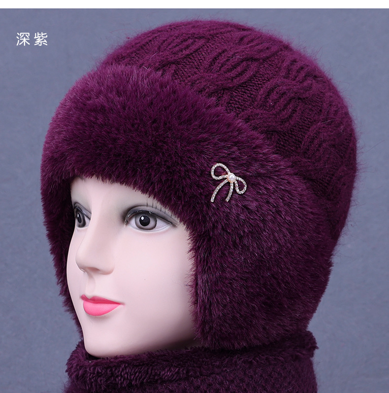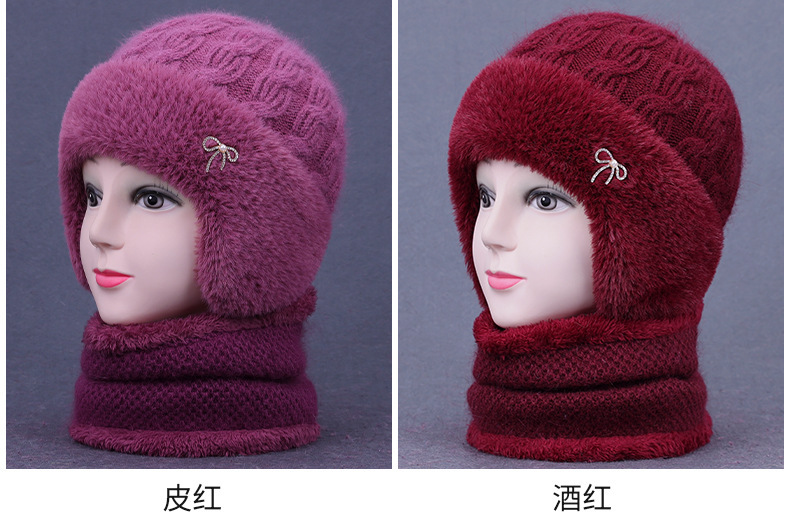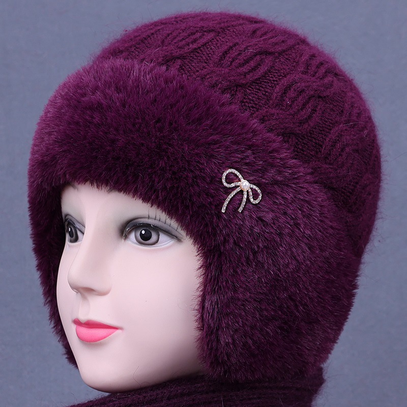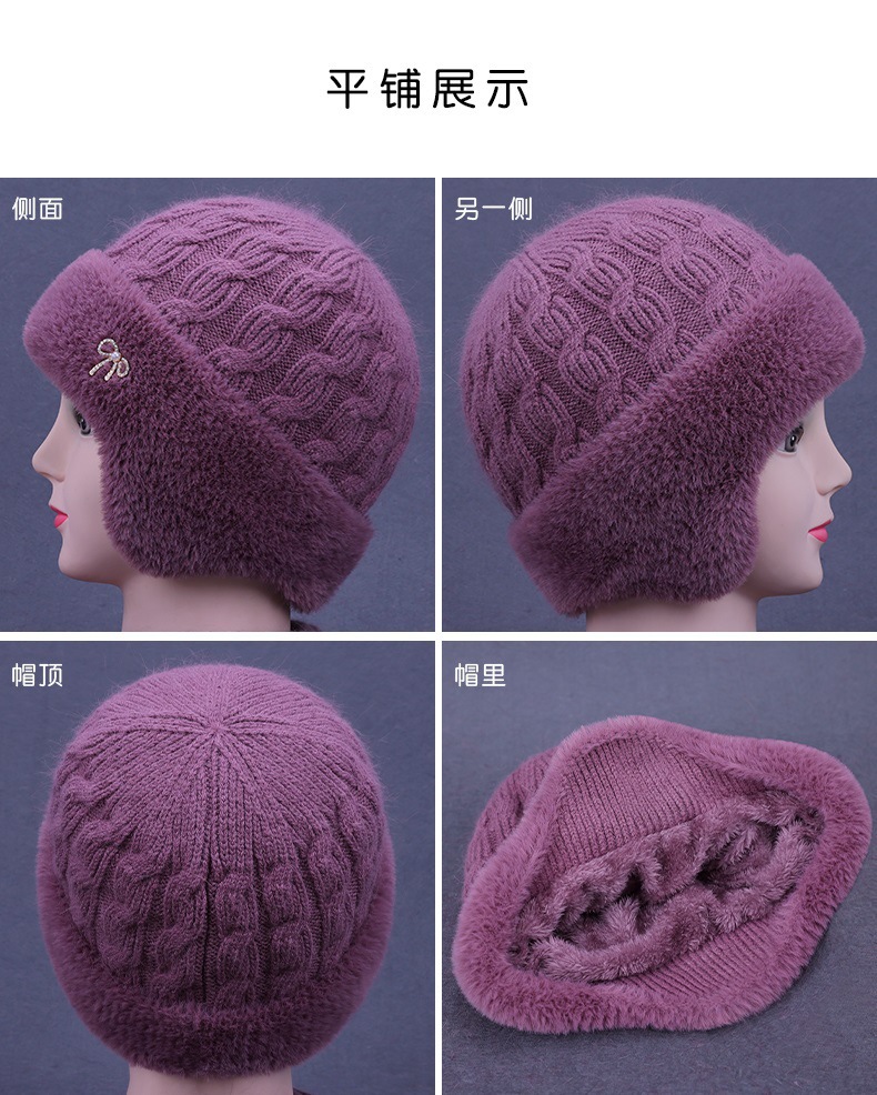 中老年人帽子女秋冬季妈妈加绒保暖针织毛线帽老太太套头棉帽批发