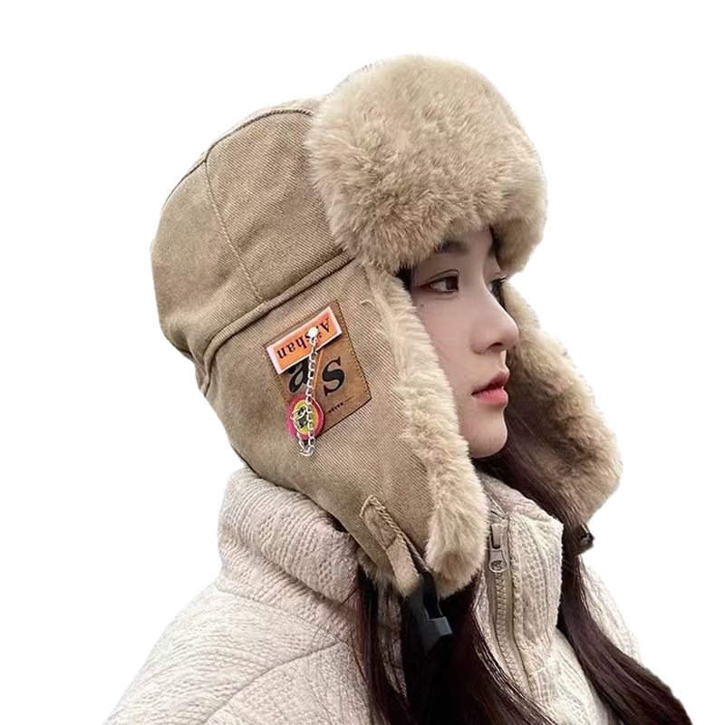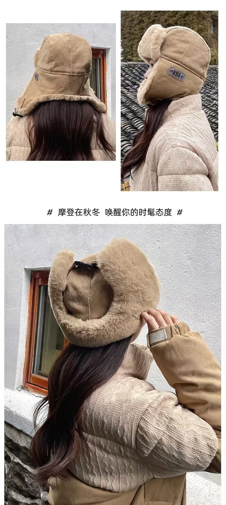 冬季加厚雷锋帽男女潮流防风保暖护耳骑车帽毛绒贴布链条棉飞行帽