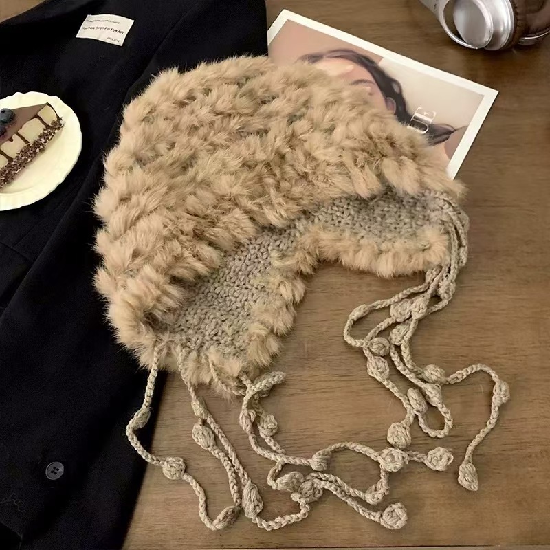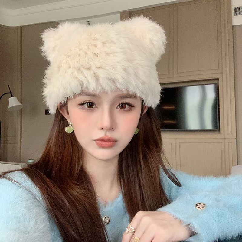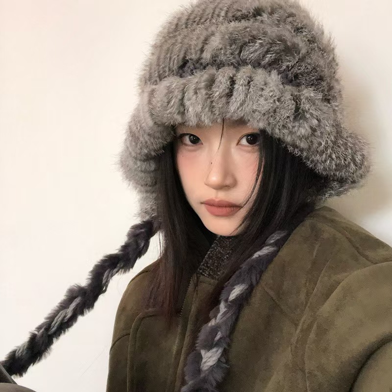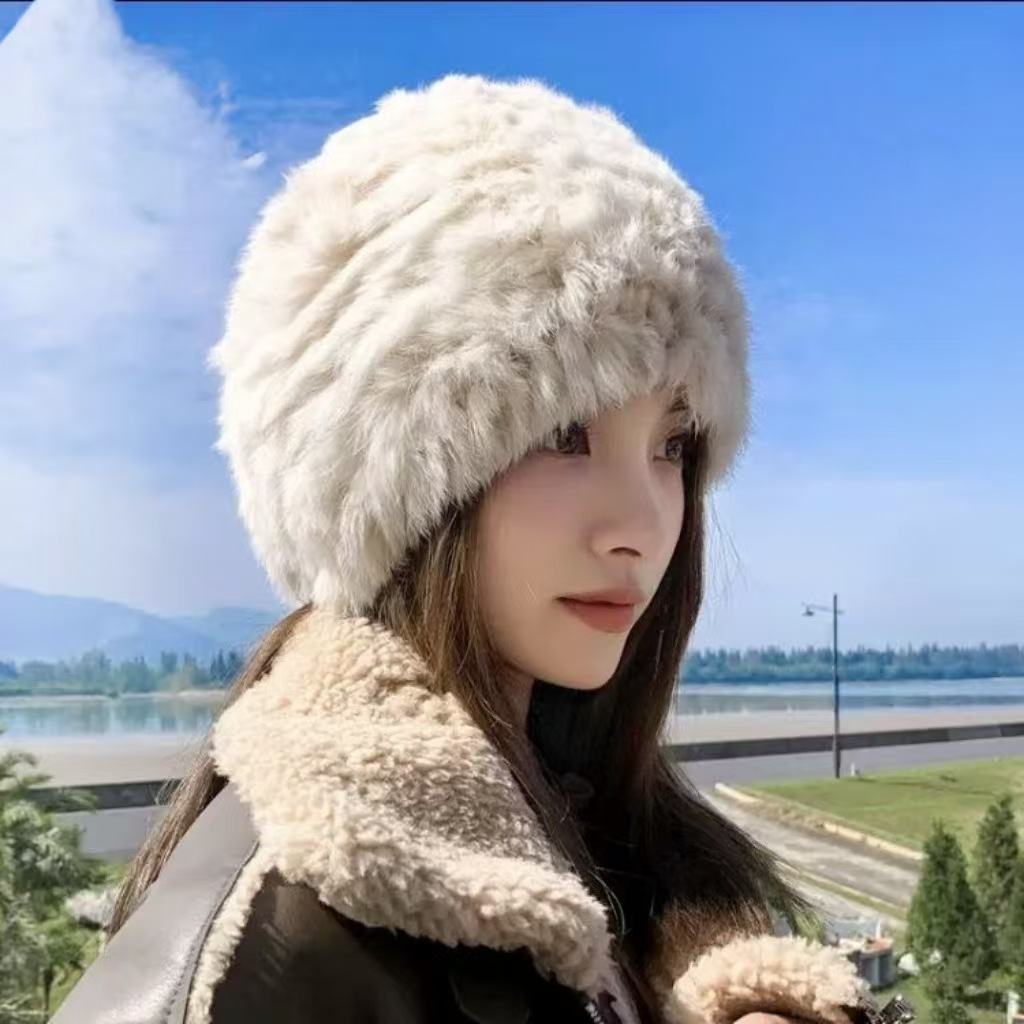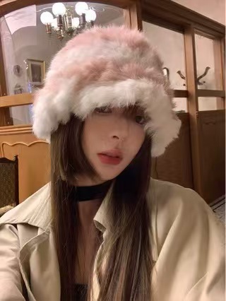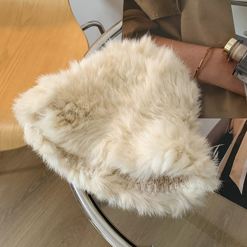 哈尔滨旅游兔毛帽子女士秋冬季保暖装备穿搭东北针织毛绒线渔夫帽