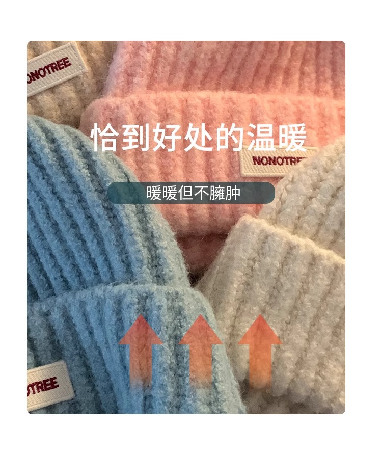 出口韩国蓝色针织毛线帽女秋冬季大头围百搭帽子显脸小护耳包头帽