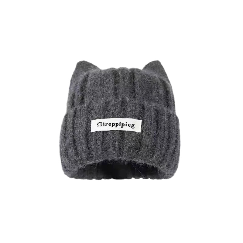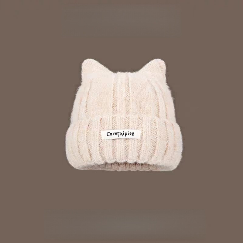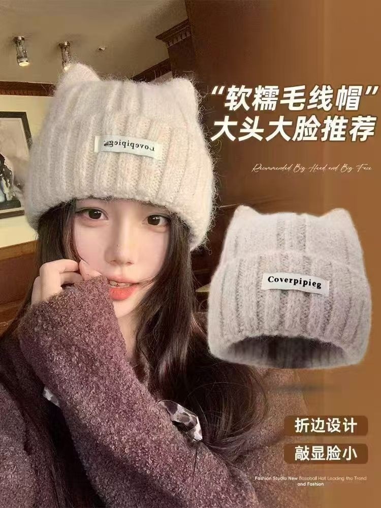 猫耳针织帽子秋冬女款气质韩版保暖毛线帽大头围显脸小护耳套头帽