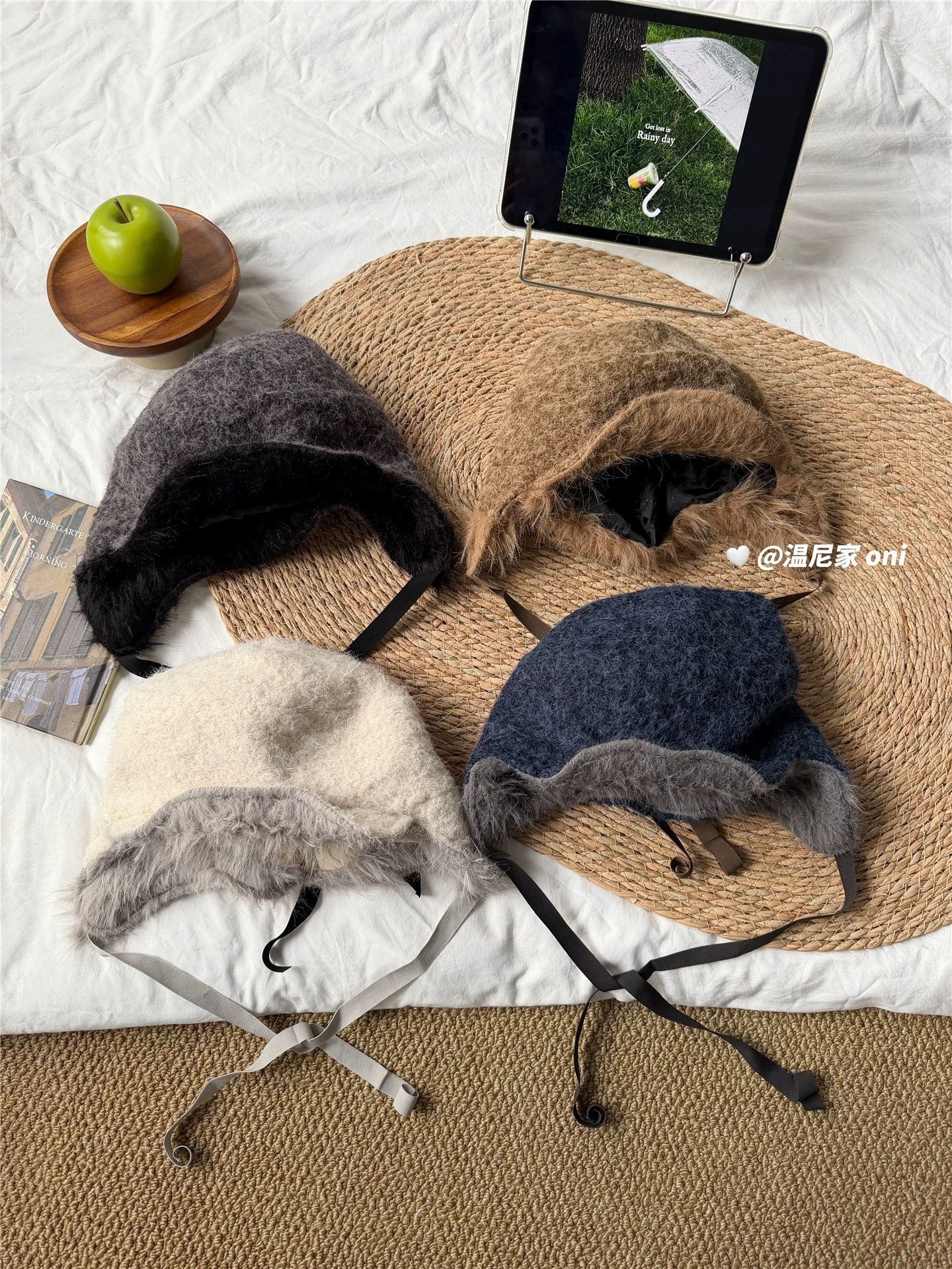 秋冬新款韩系氛围感包头帽女百搭时尚护耳保暖休闲时髦帽子雷锋帽