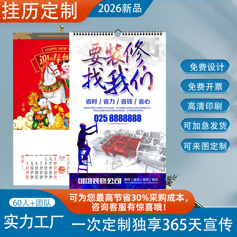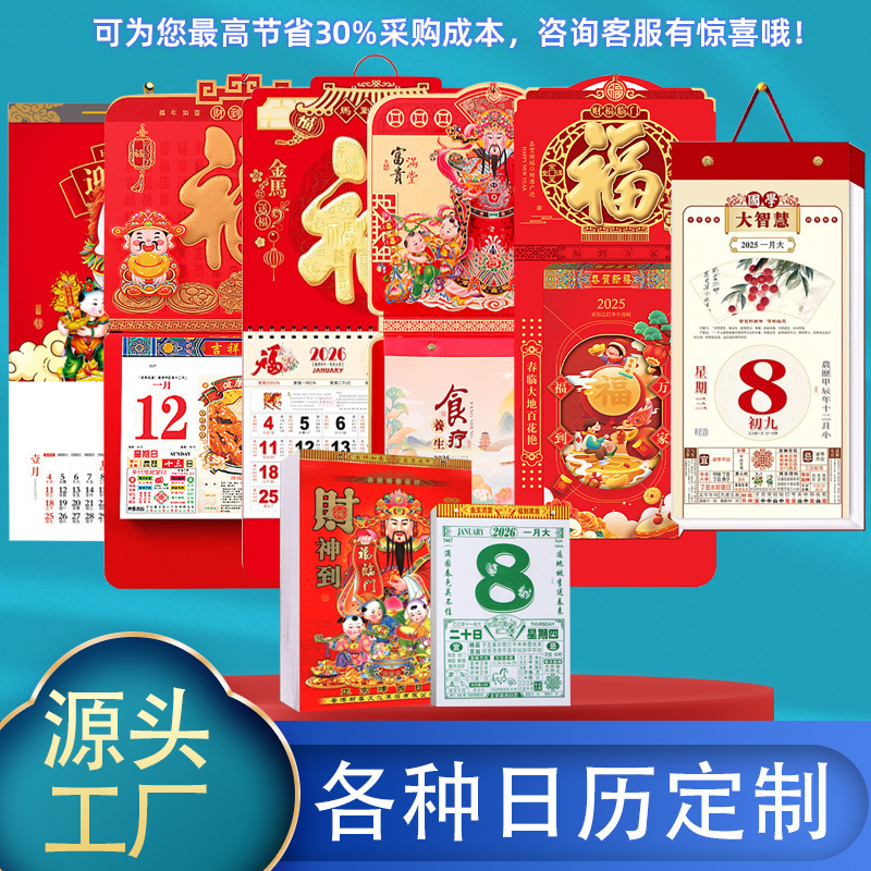 2026年YO圈挂历老黄历家用单日历定 制公司企业LOGO手撕月历日历