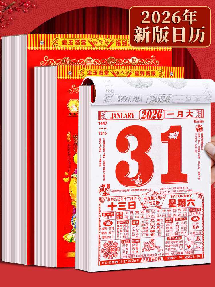 2026新款老黄历挂历手撕家用挂墙农历年历本日历蛇年传统黄道吉日
