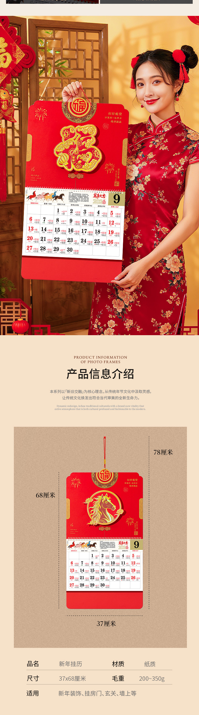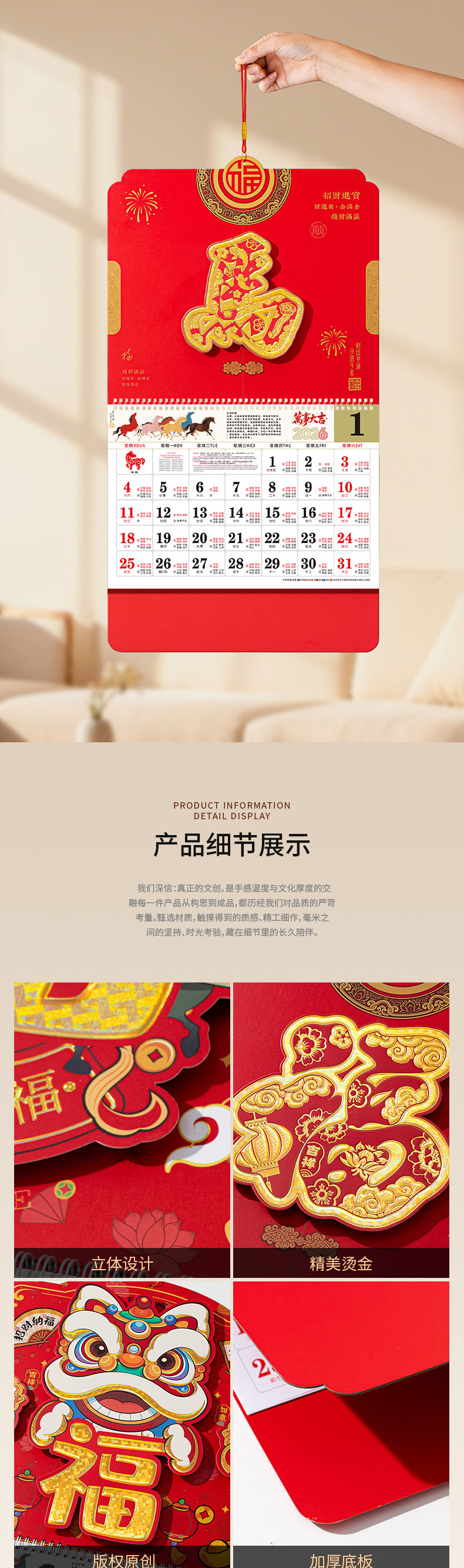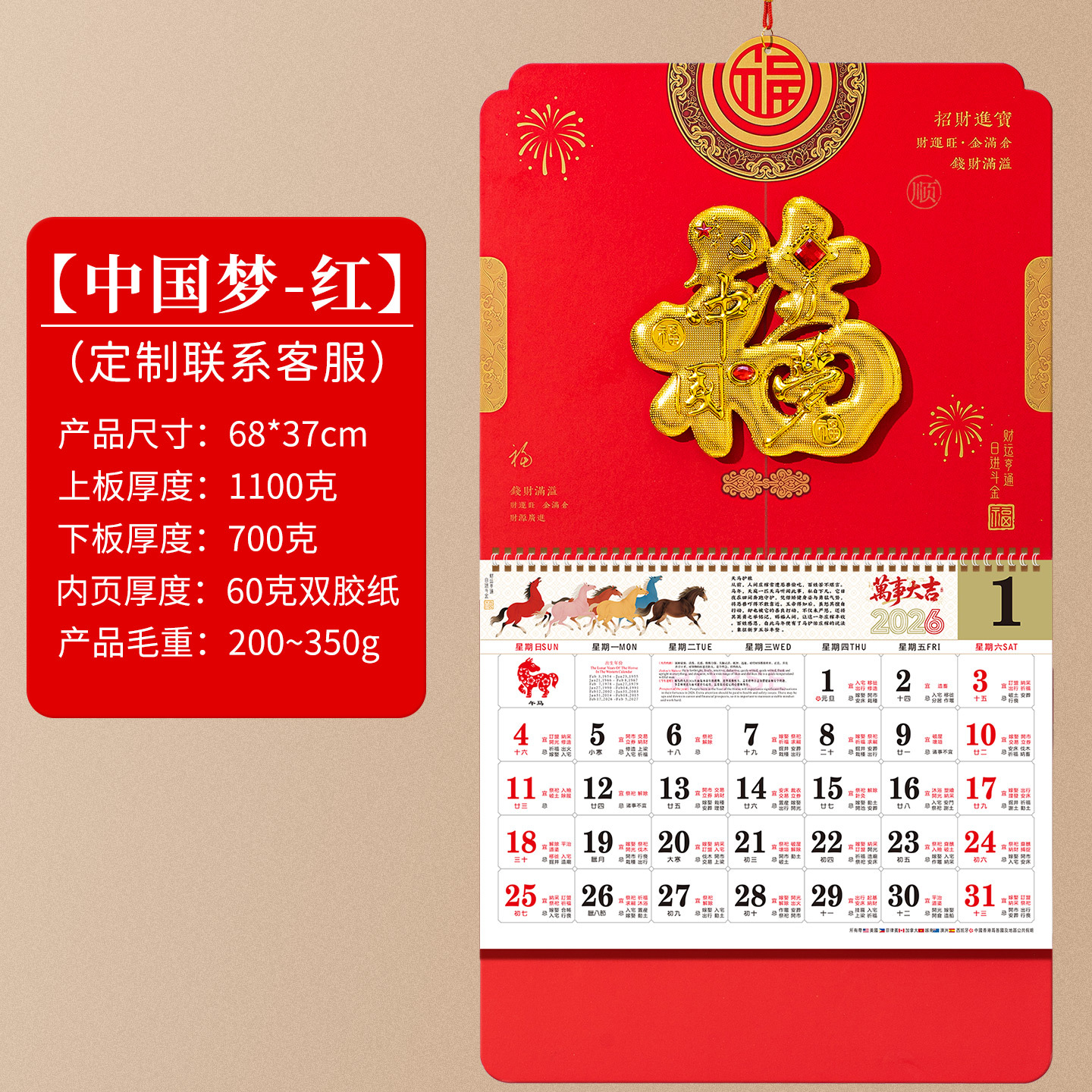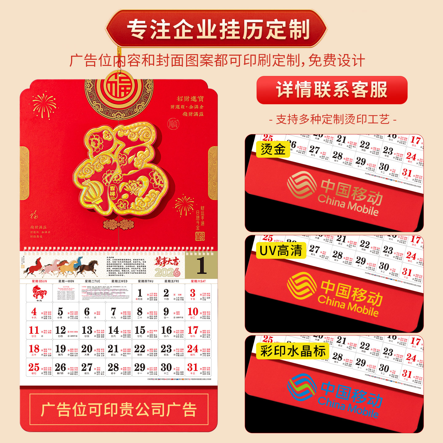 马年挂历新款家用新年春节过年黄历挂墙2026福字手撕日历卡通LOGO