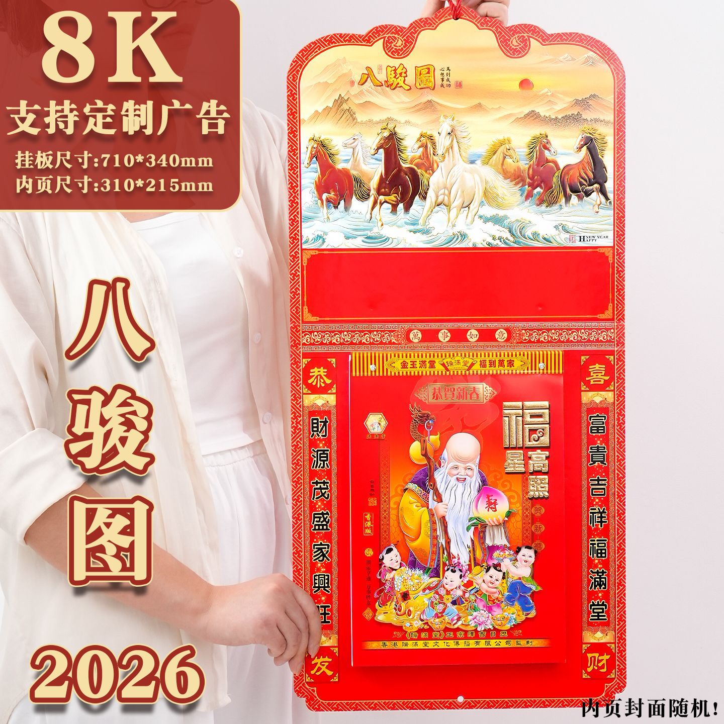 【支持定 制】日历2026年挂式老黄历马年传统家用挂墙福字挂历