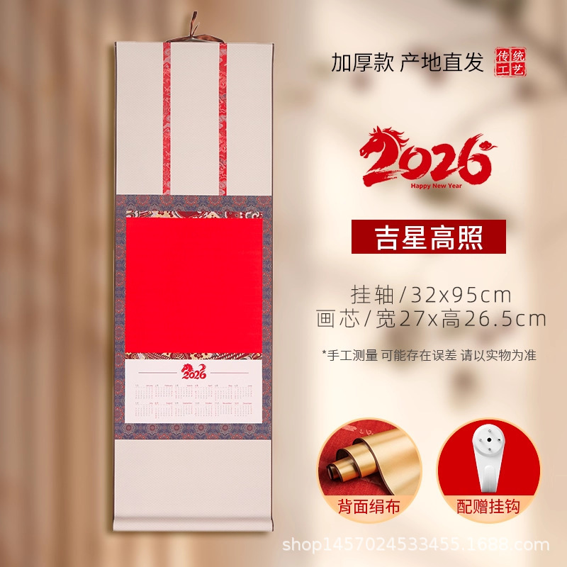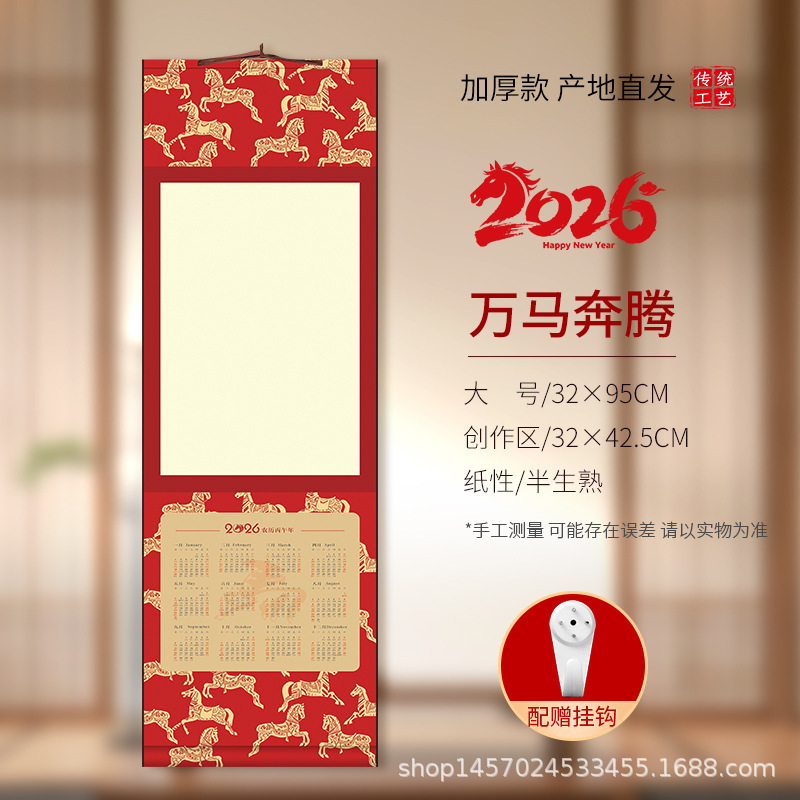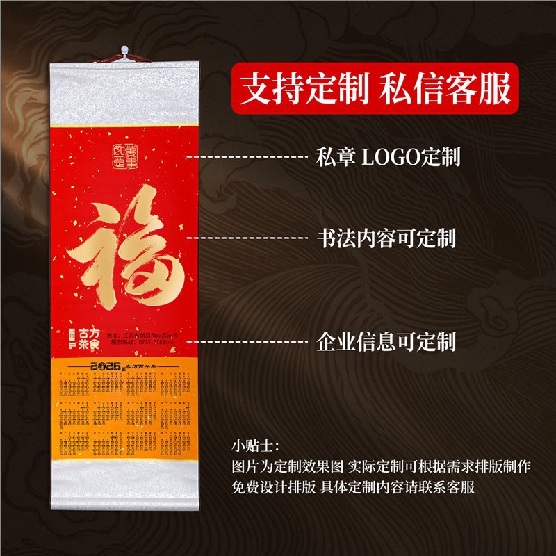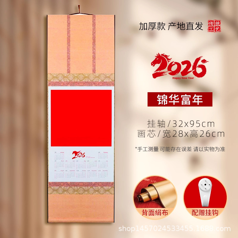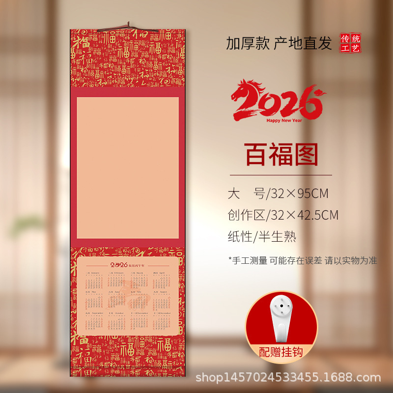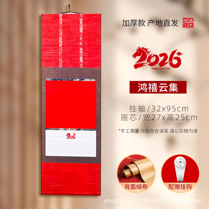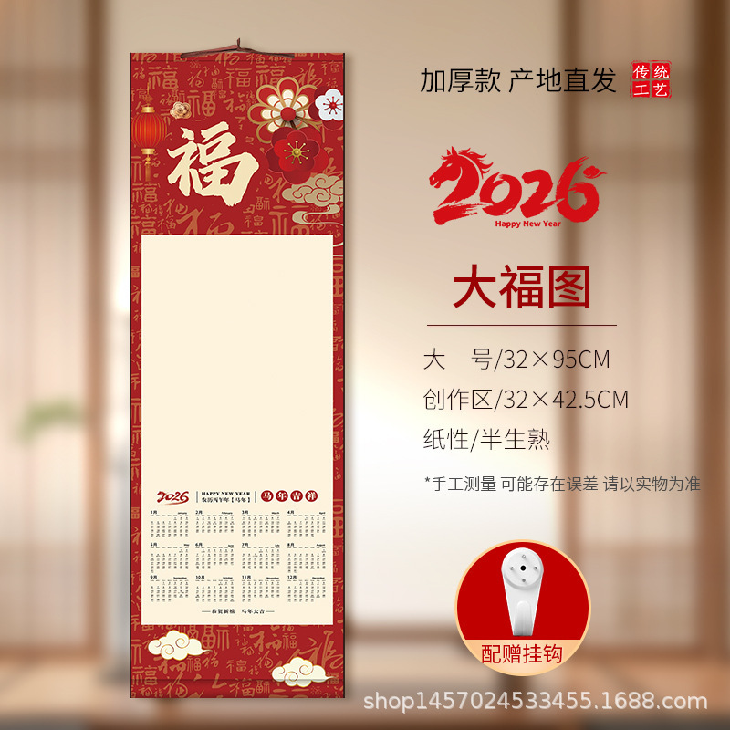 复古蜡染挂历2026马年空白日历万年红福字红纸宣纸书法挂轴卷轴新