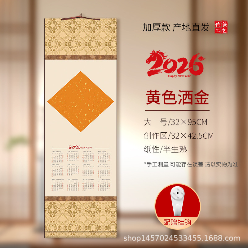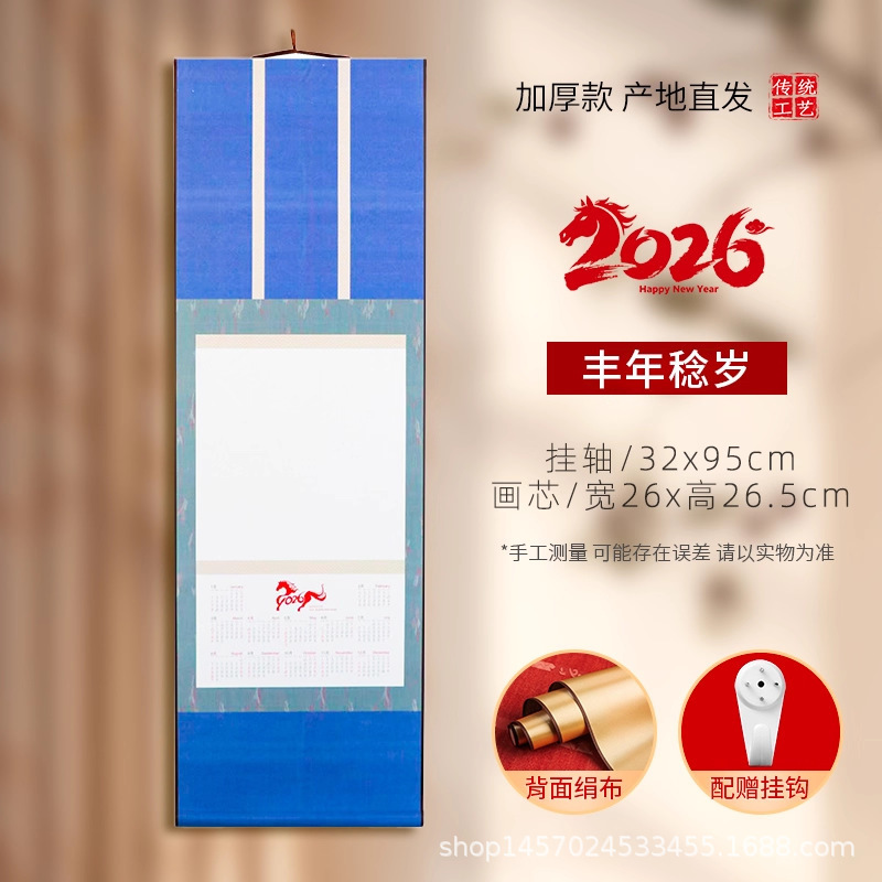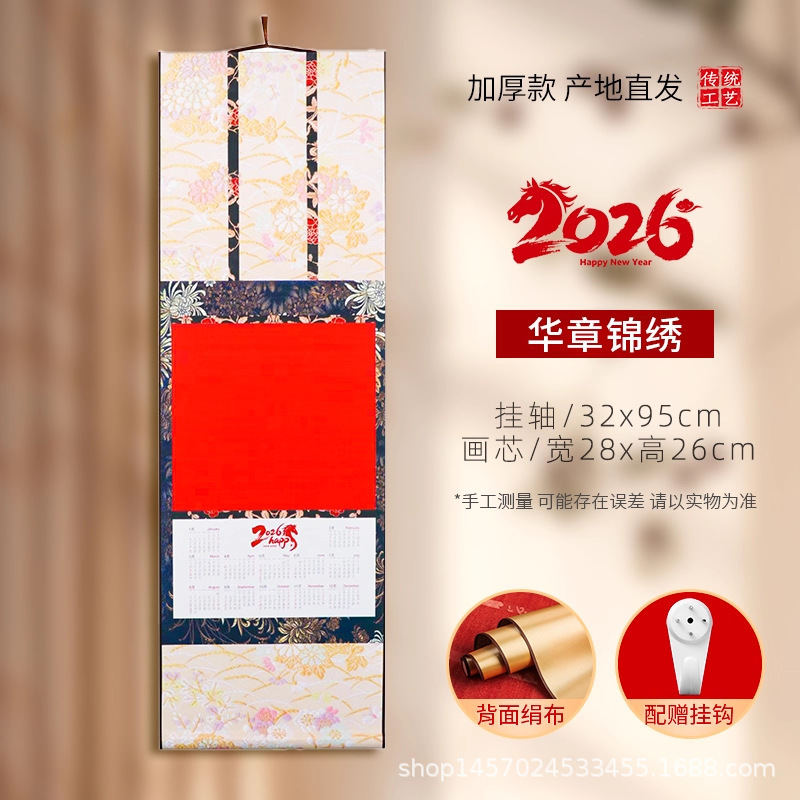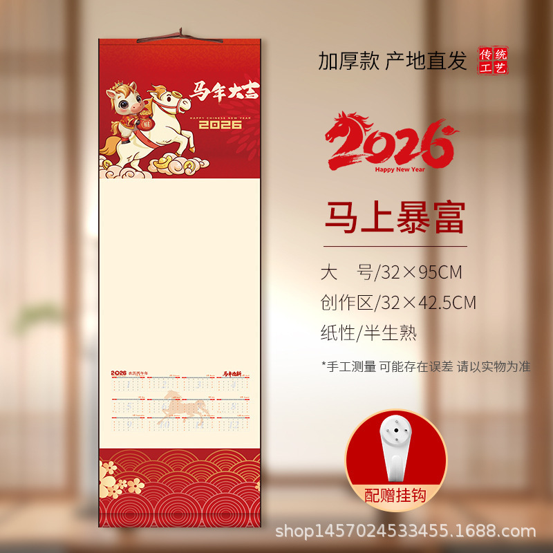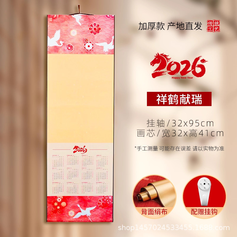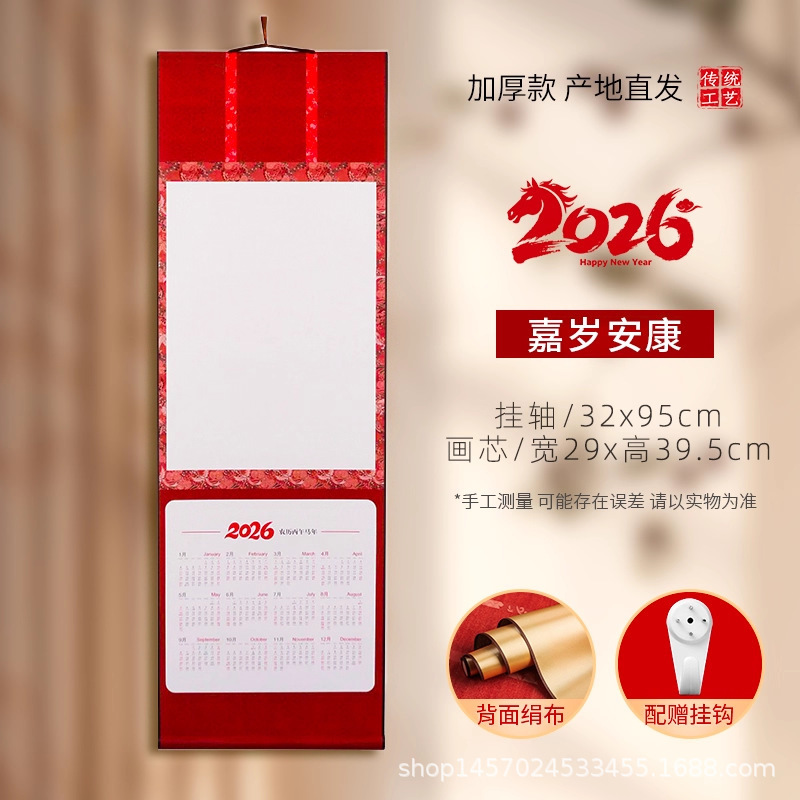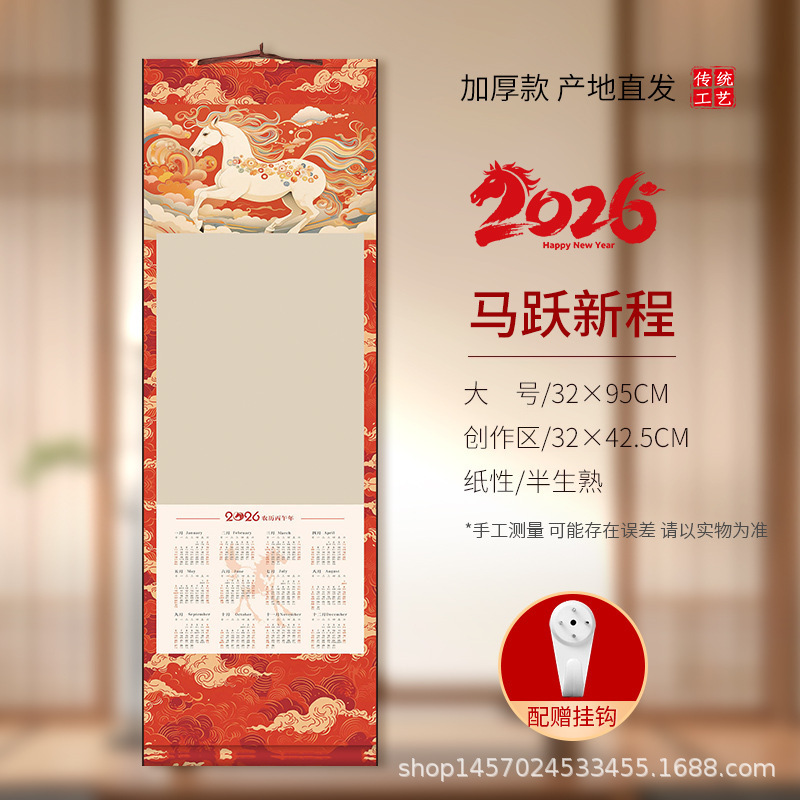 复古蜡染挂历2026马年空白日历万年红福字红纸宣纸书法挂轴卷轴新