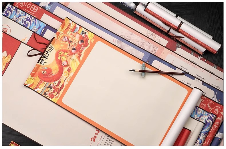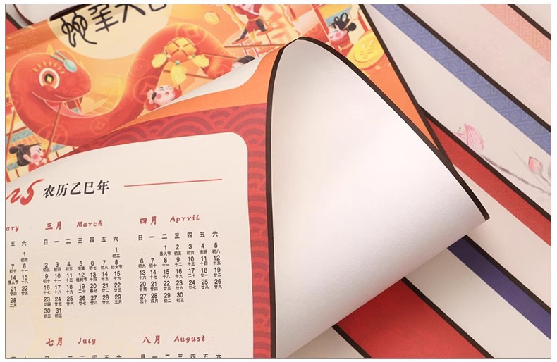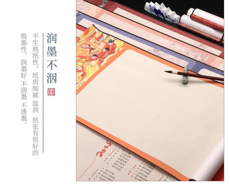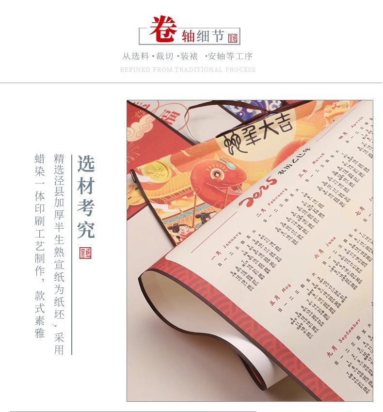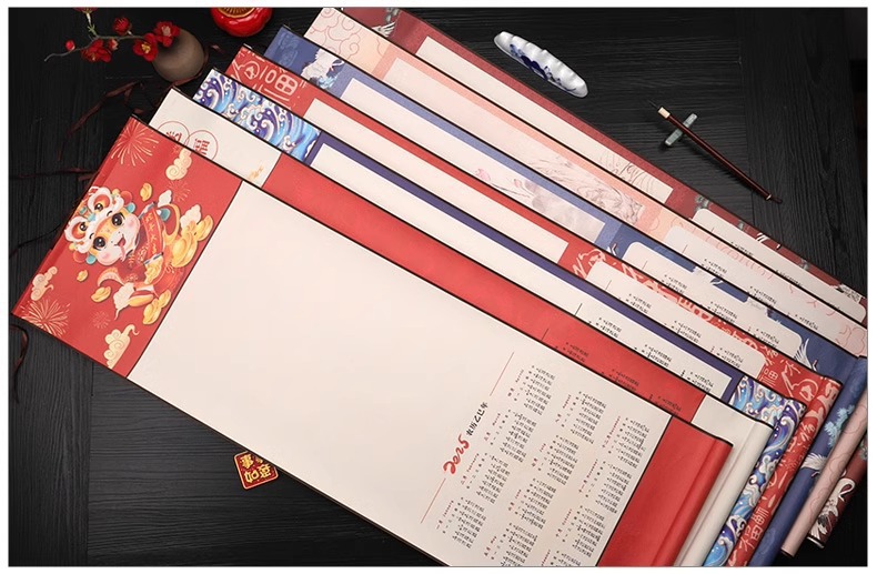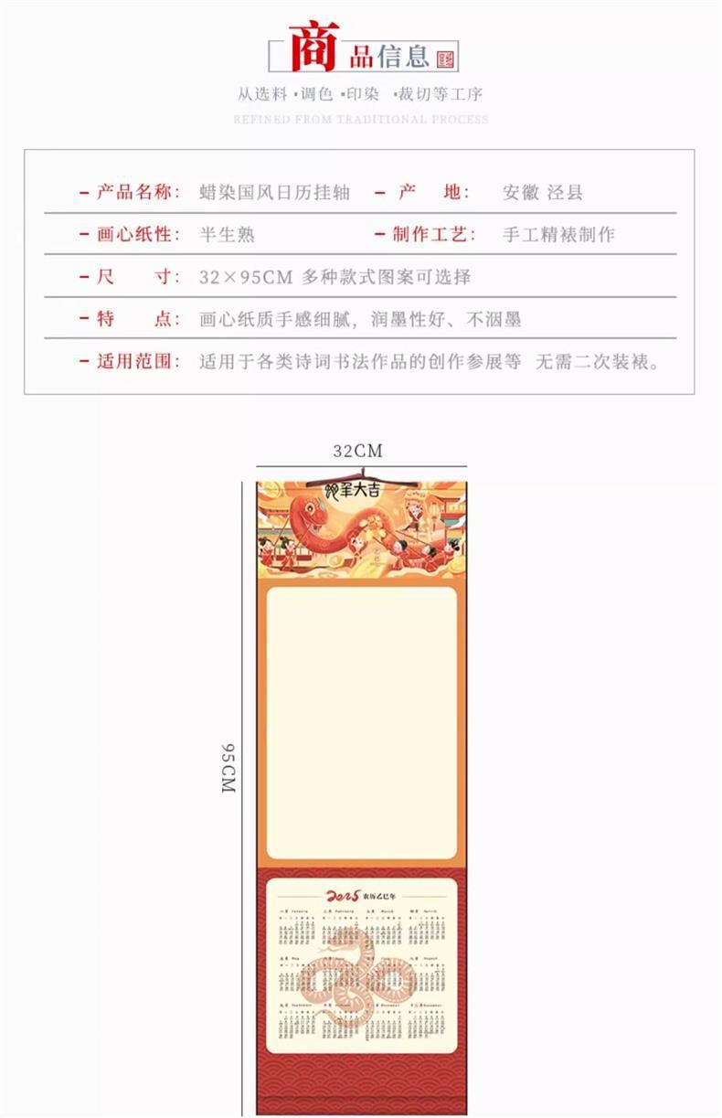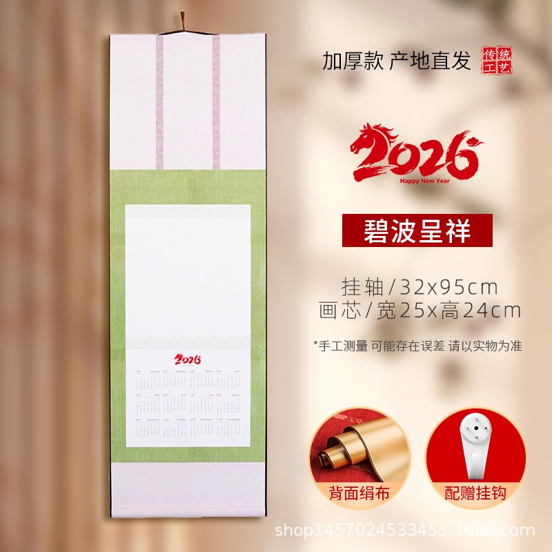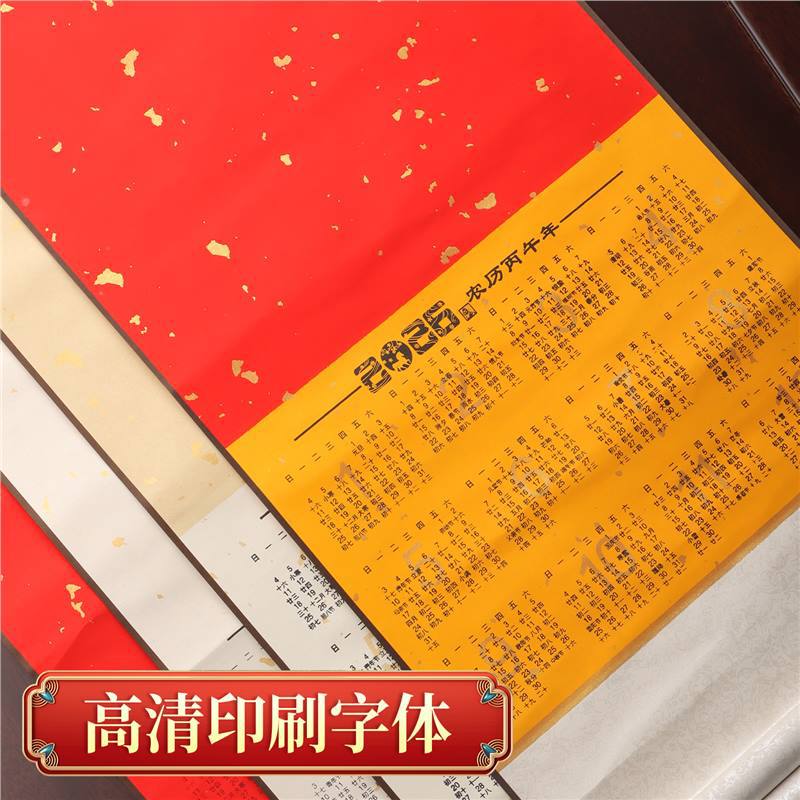 复古蜡染挂历2026马年空白日历万年红福字红纸宣纸书法挂轴卷轴新