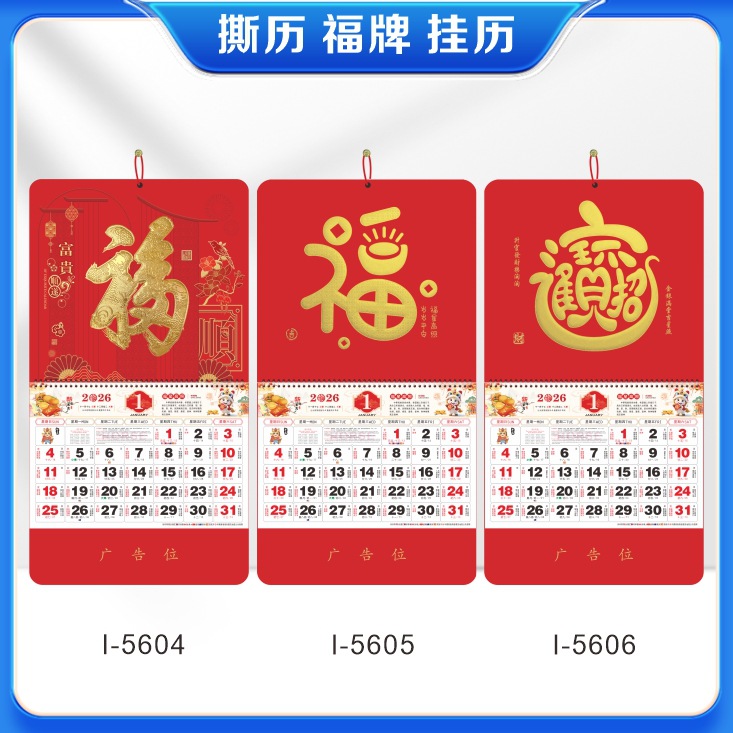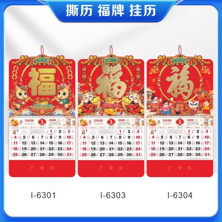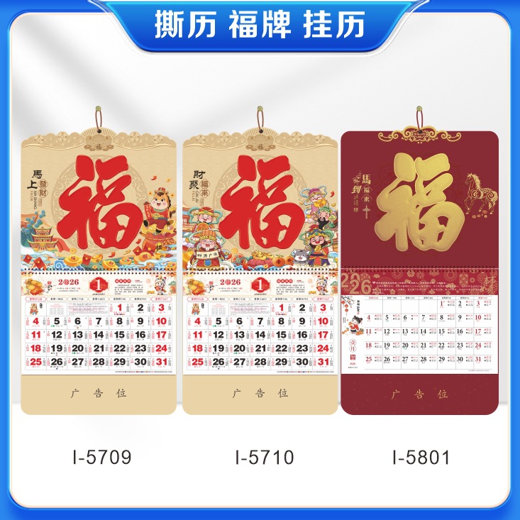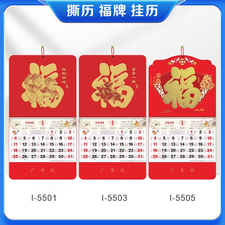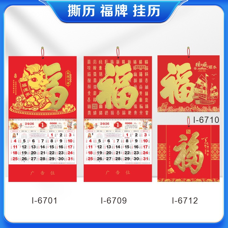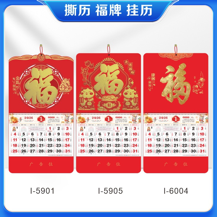 2026年新款马年挂历定制传统通盛双日历福字吊牌中国风大药房年历