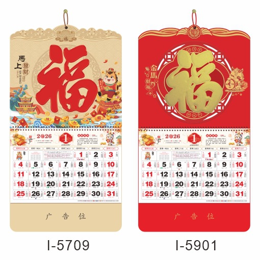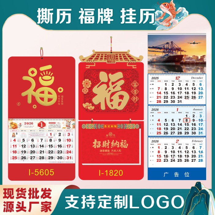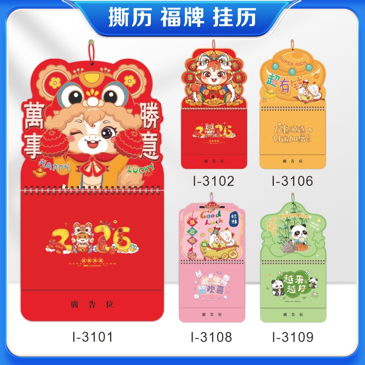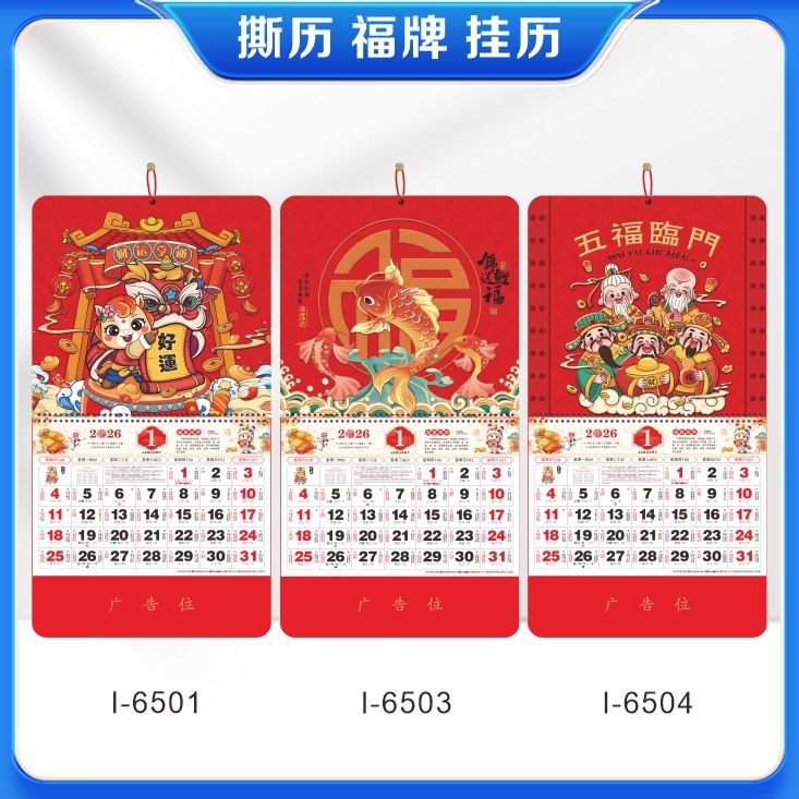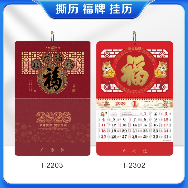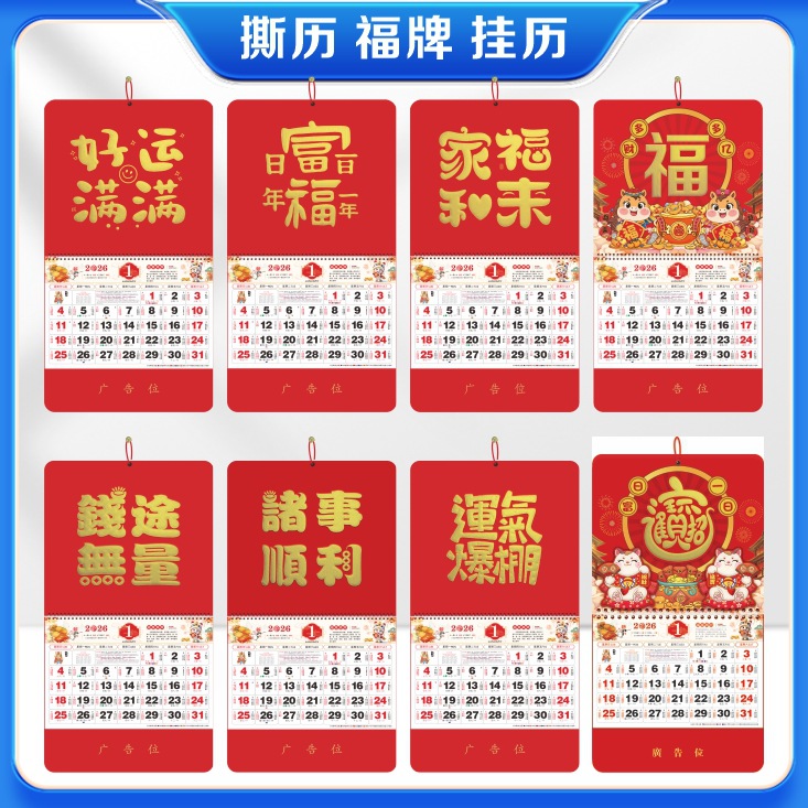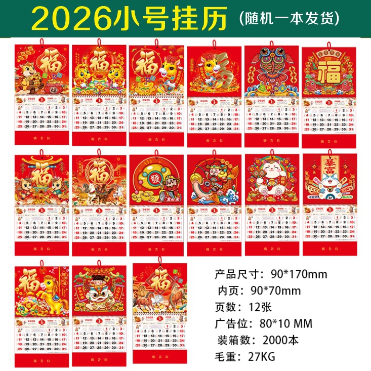 2026年新款马年挂历定制传统通盛双日历福字吊牌中国风大药房年历