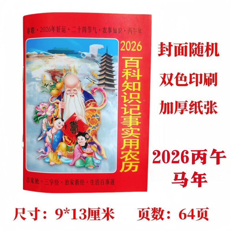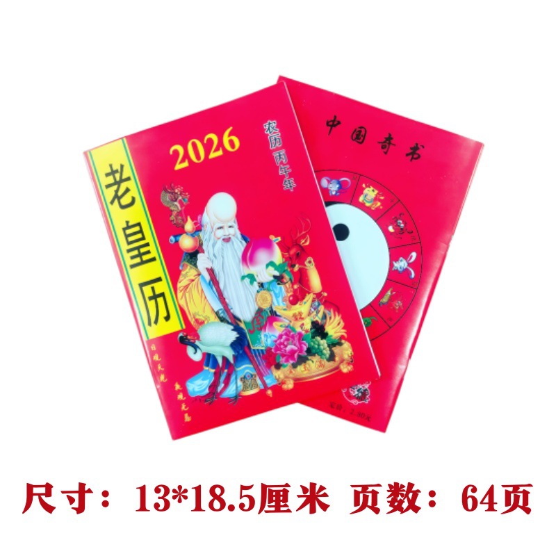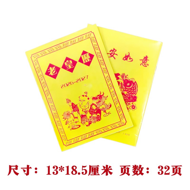 2026年马年老黄日历书老皇历本好日子32页黄皮日历万年历老式家用