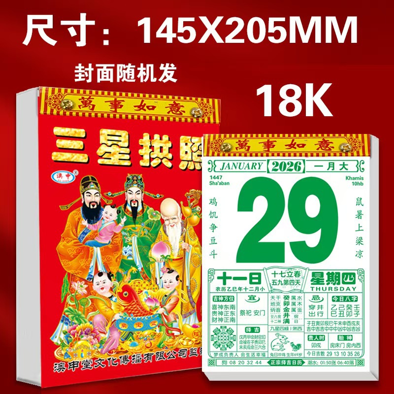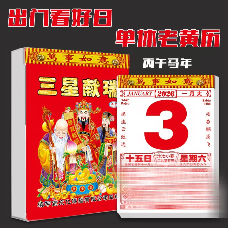 2026年马年老黄历式传统日历挂历黄历每日手撕家用月份牌撕历黄道