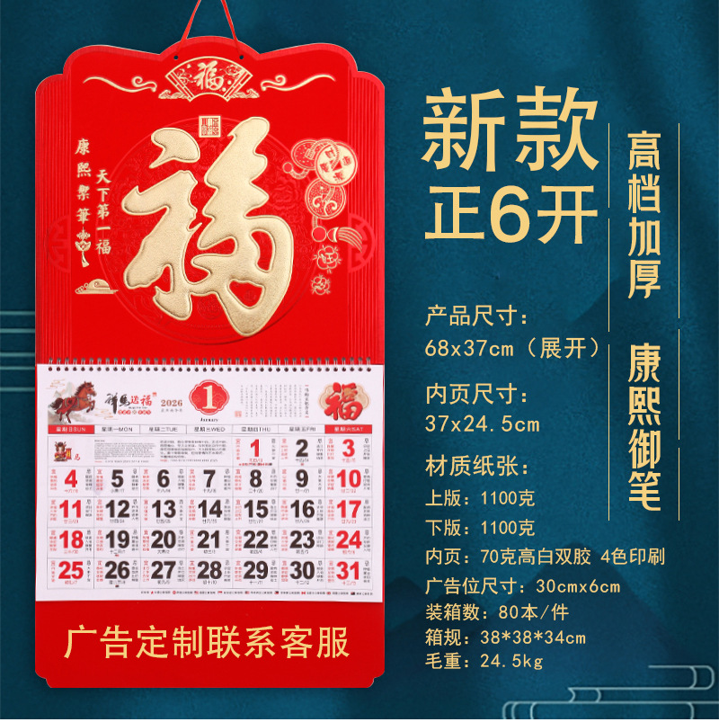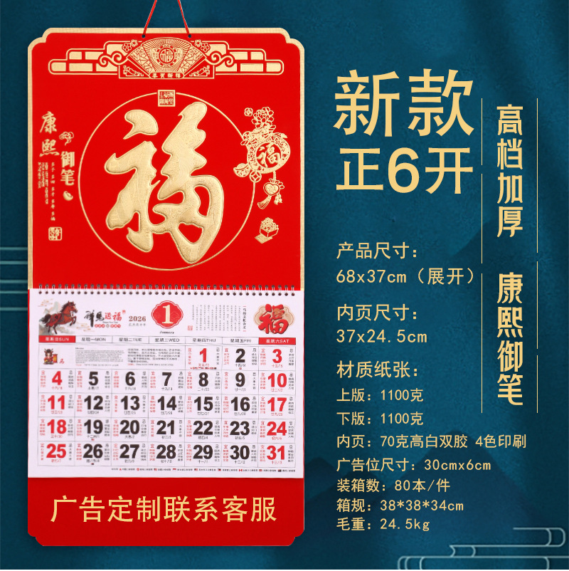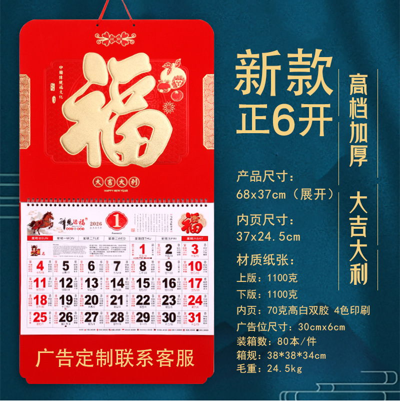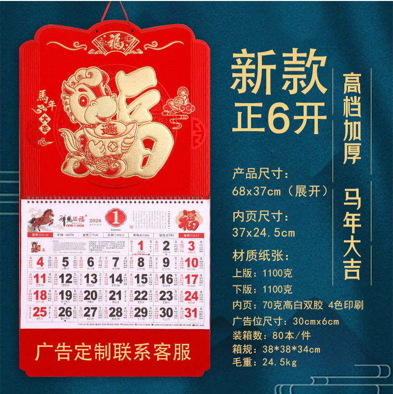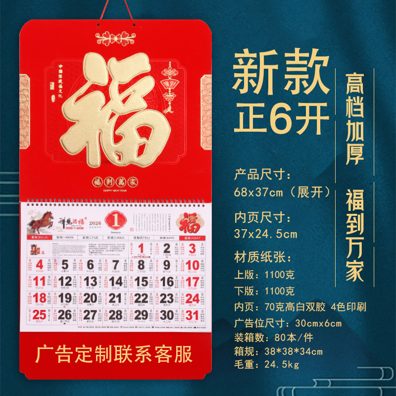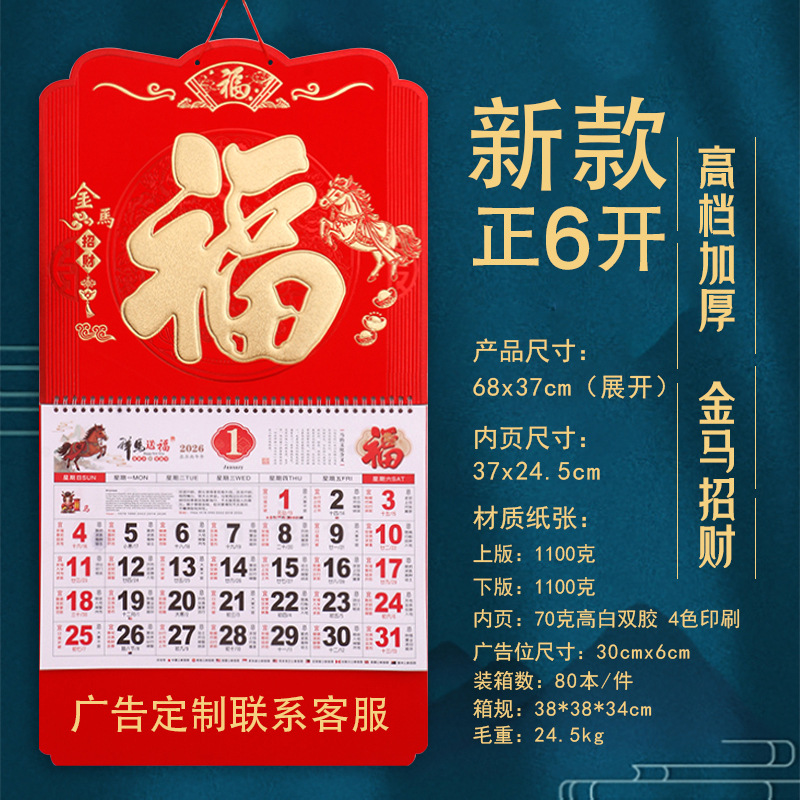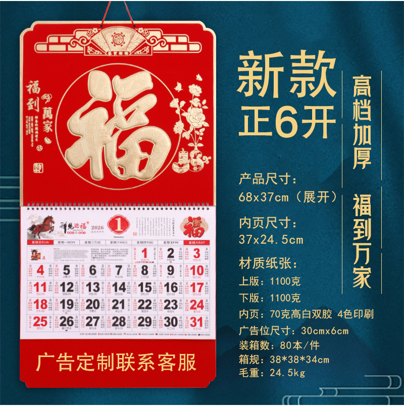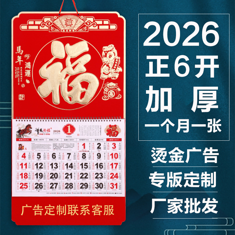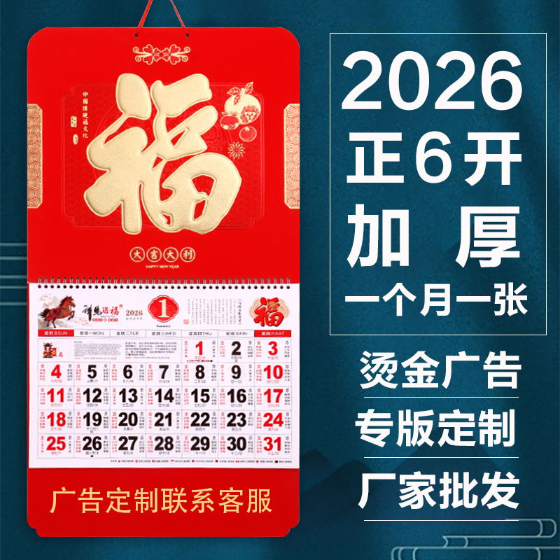2026年新款挂历加厚正六开手撕老皇历一月一张广告月历老式老黄历