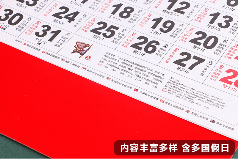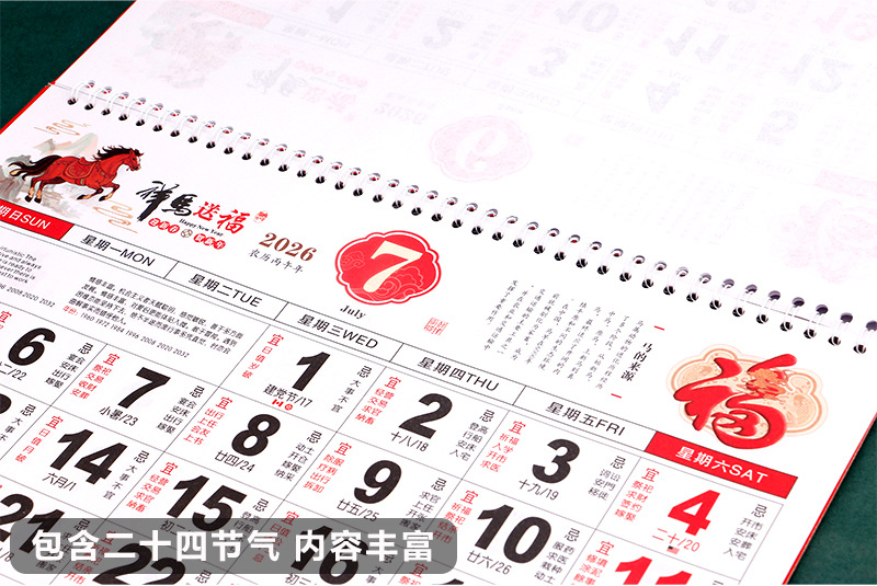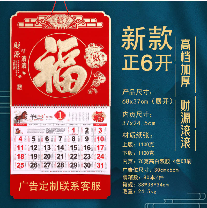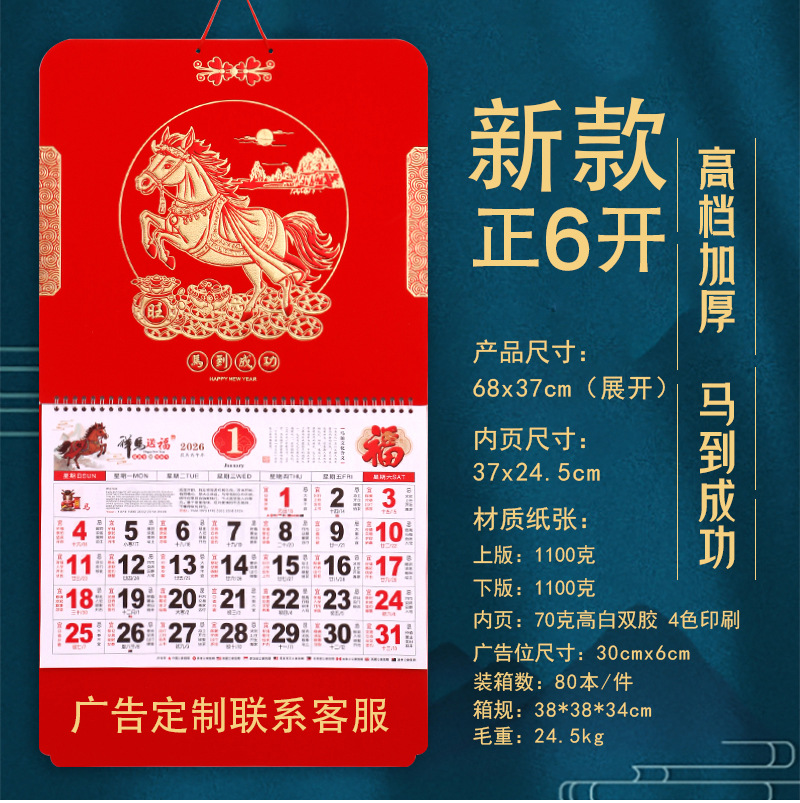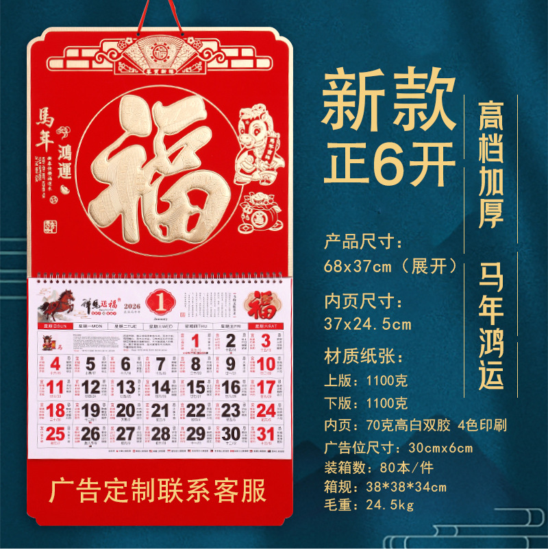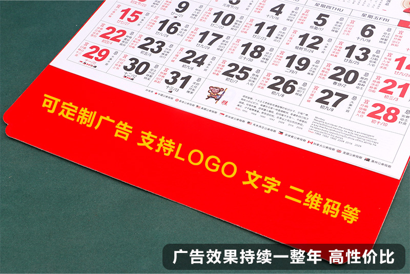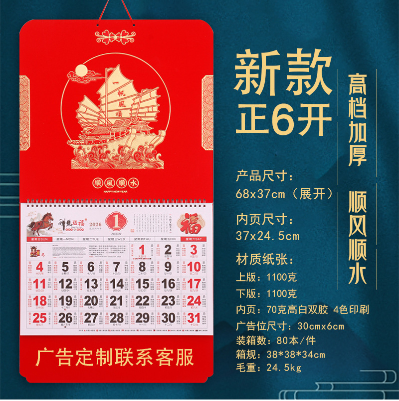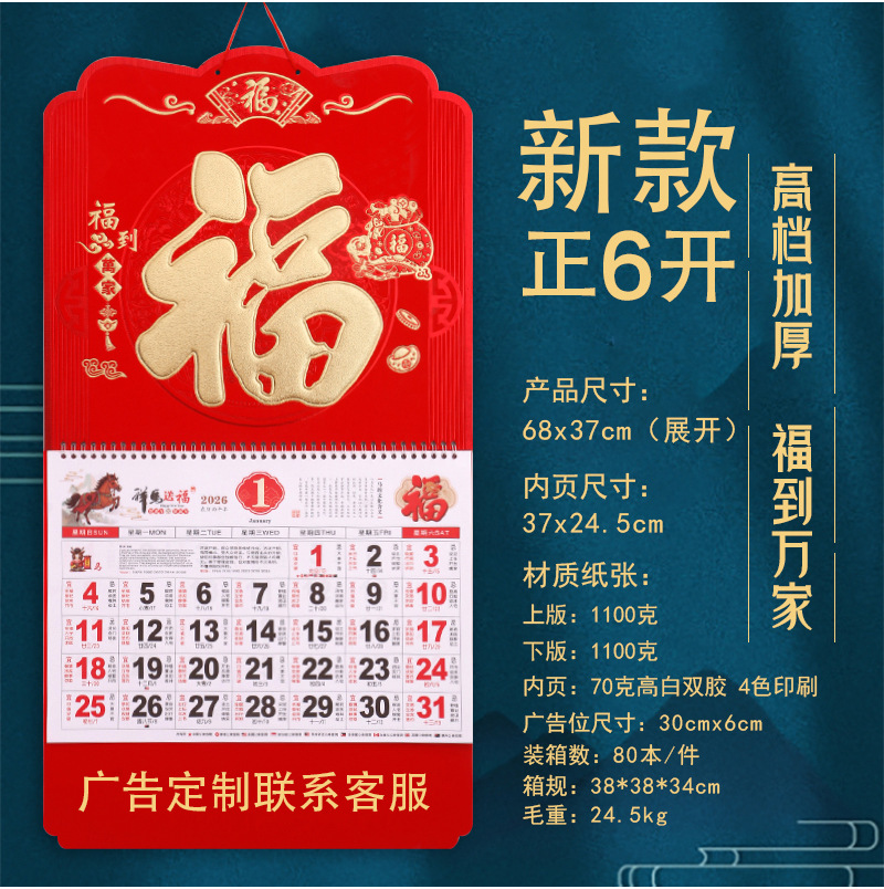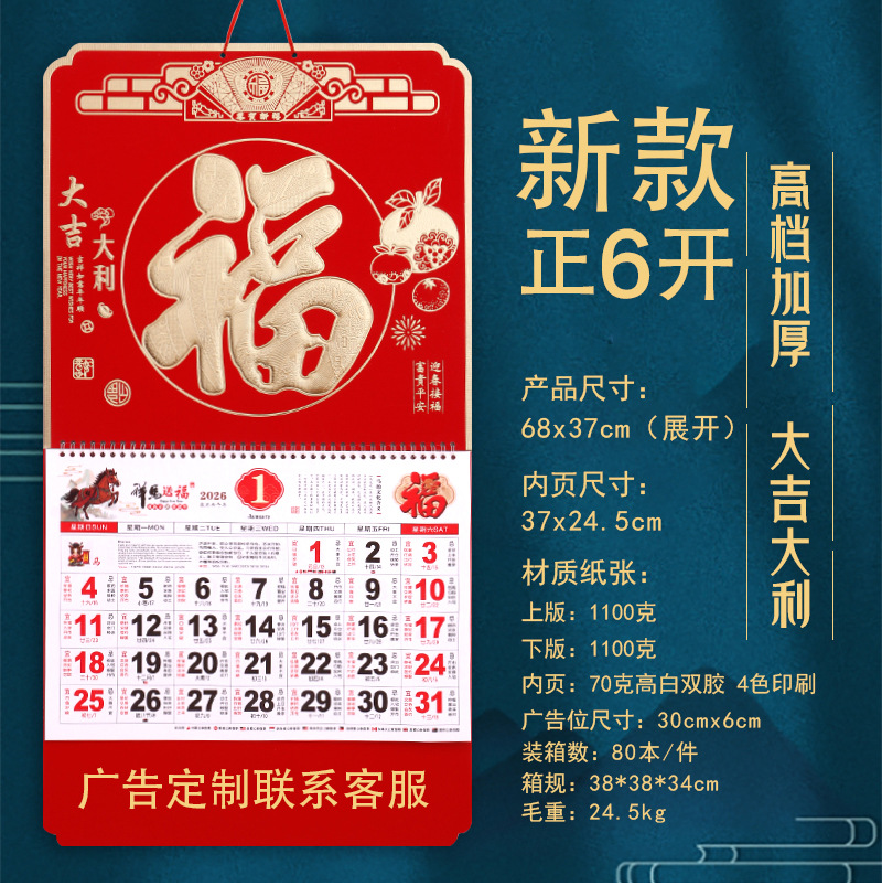 2026年新款挂历加厚正六开手撕老皇历一月一张广告月历老式老黄历