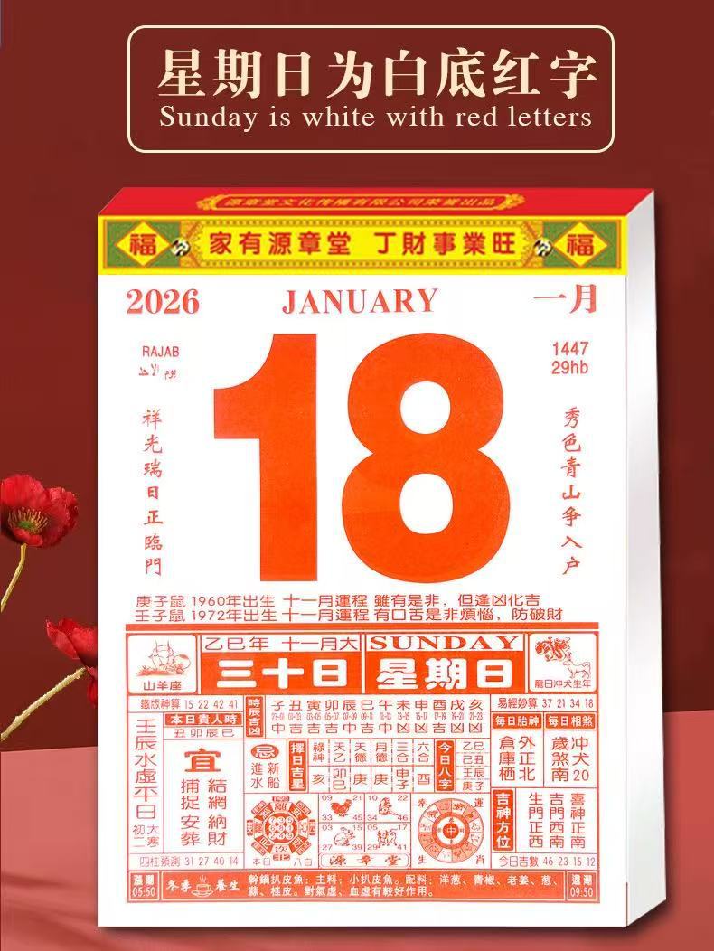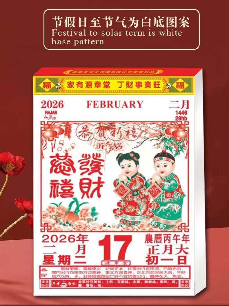 ✅2026年马年源章堂大福封面日历挂历挂墙家用传统手撕日历一
