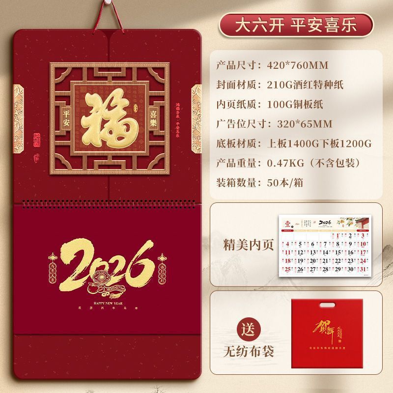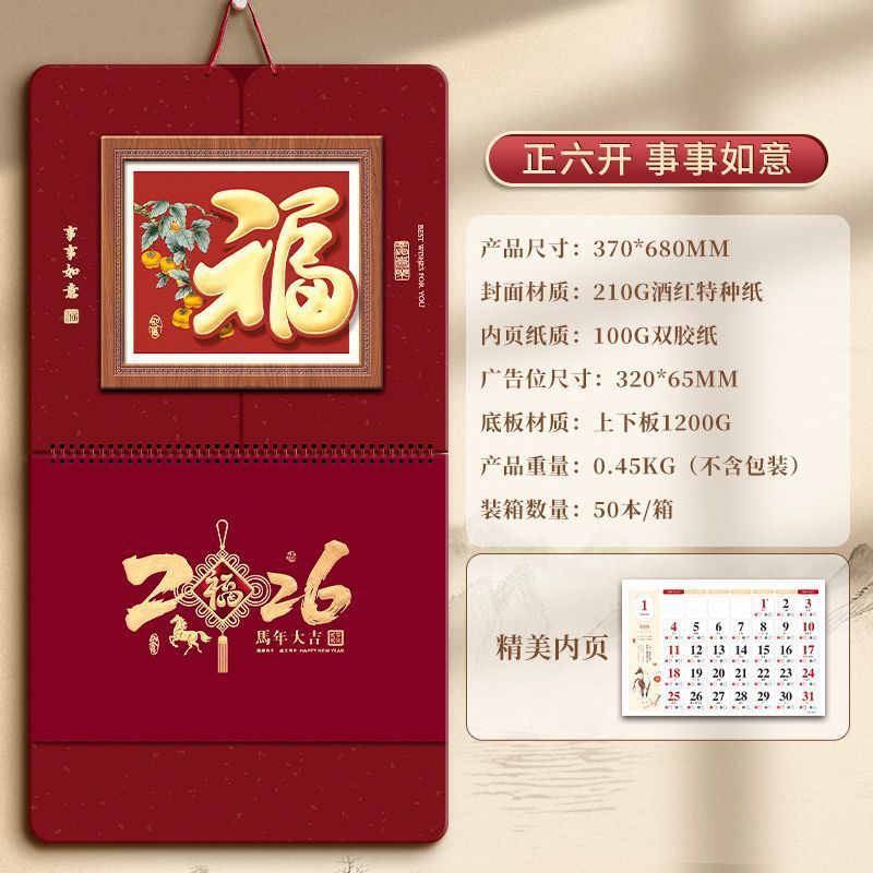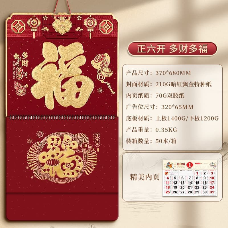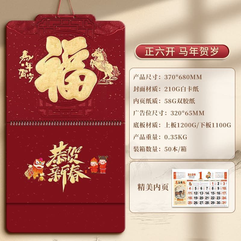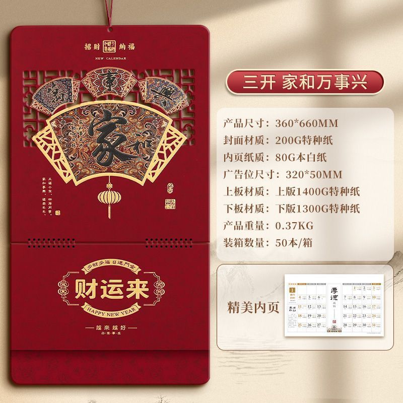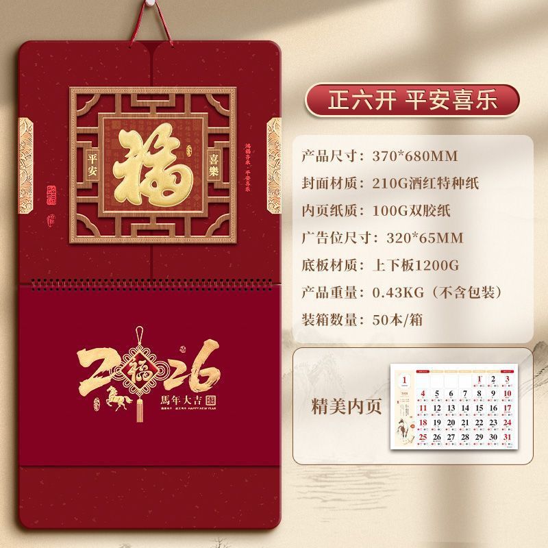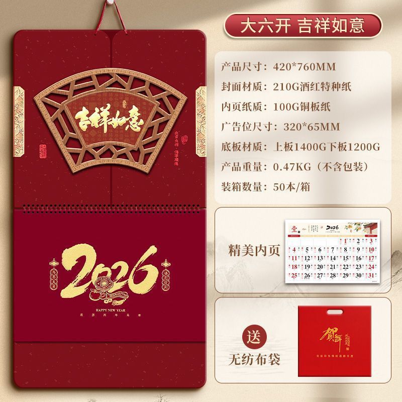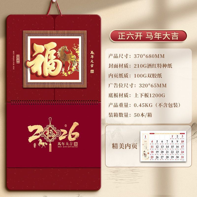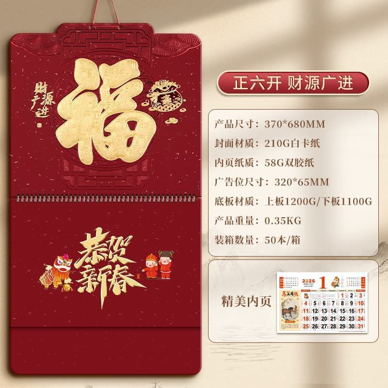 挂历2025年新款挂墙式大六开家用黄历大号吊历中国风传统月历批发