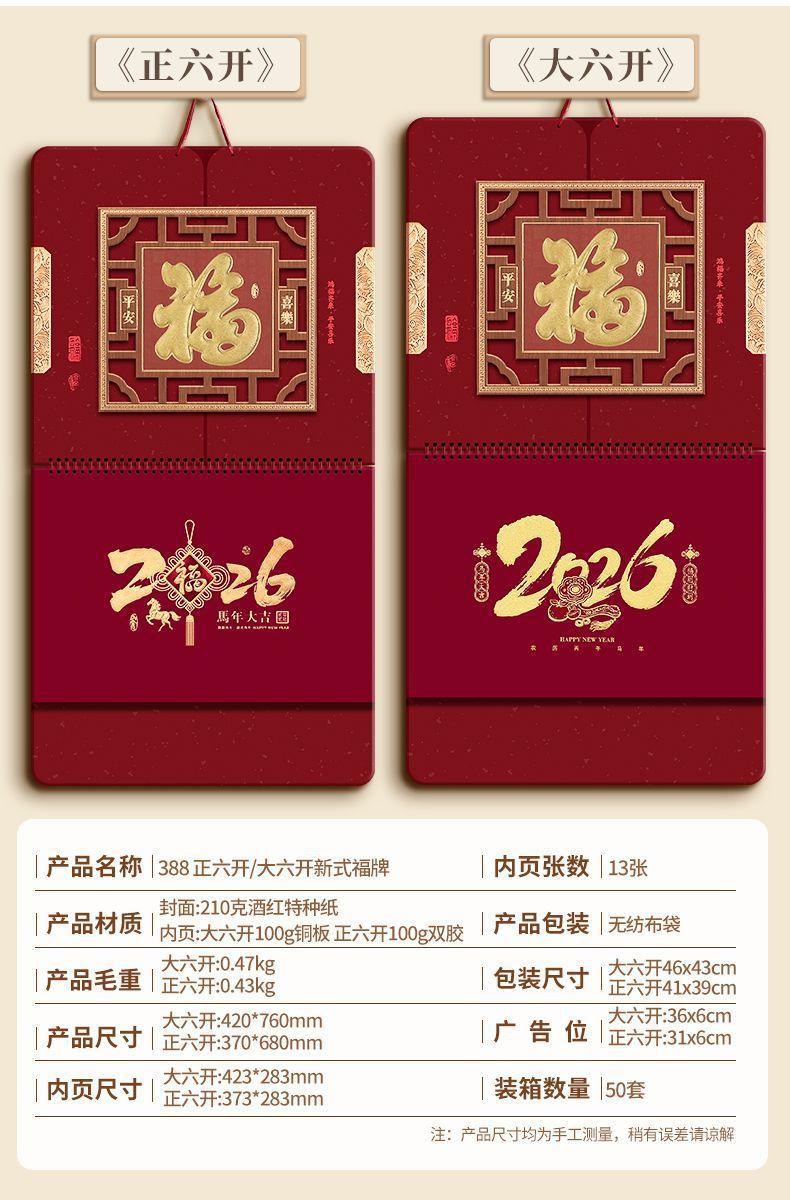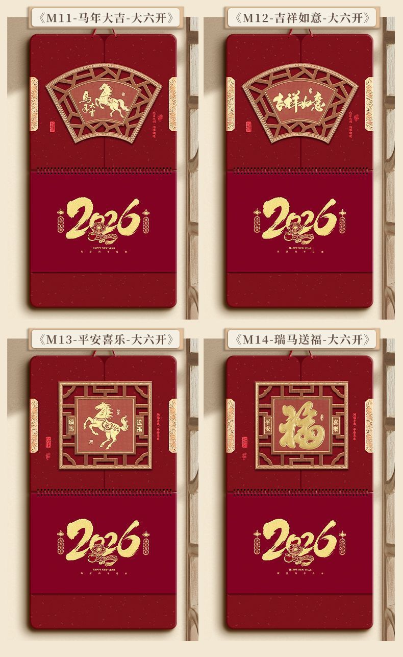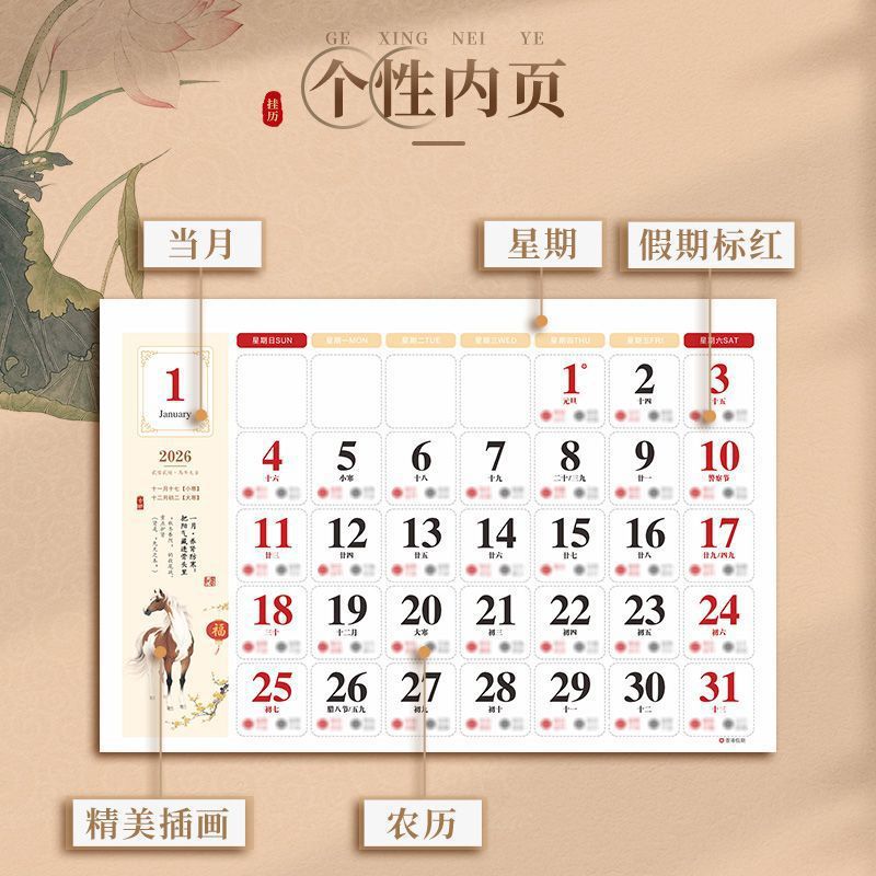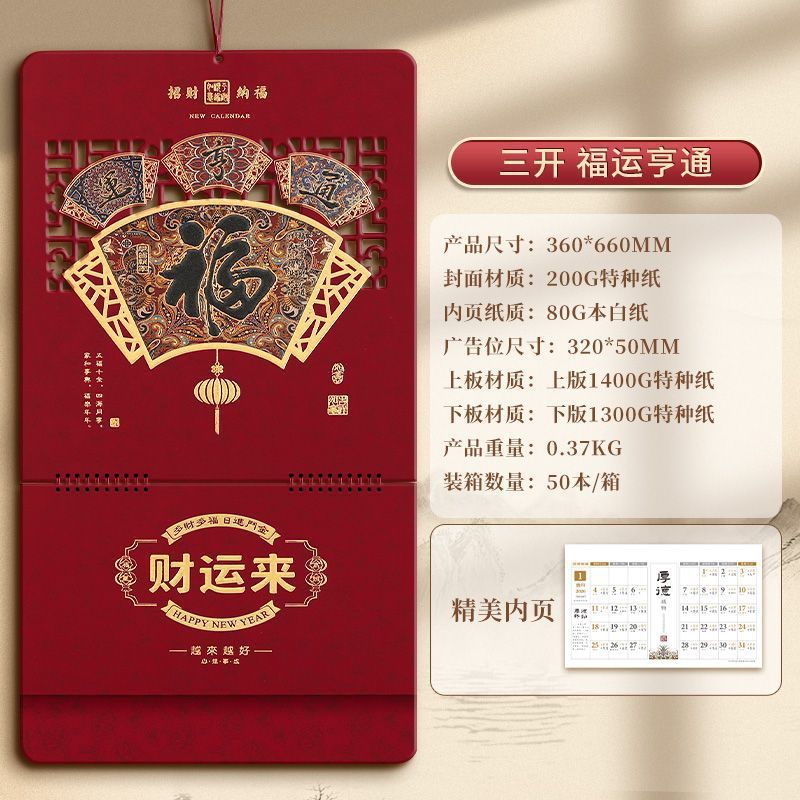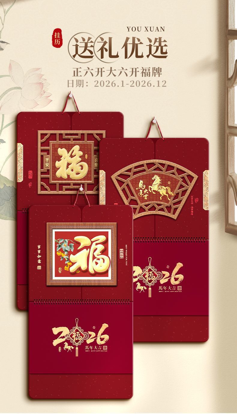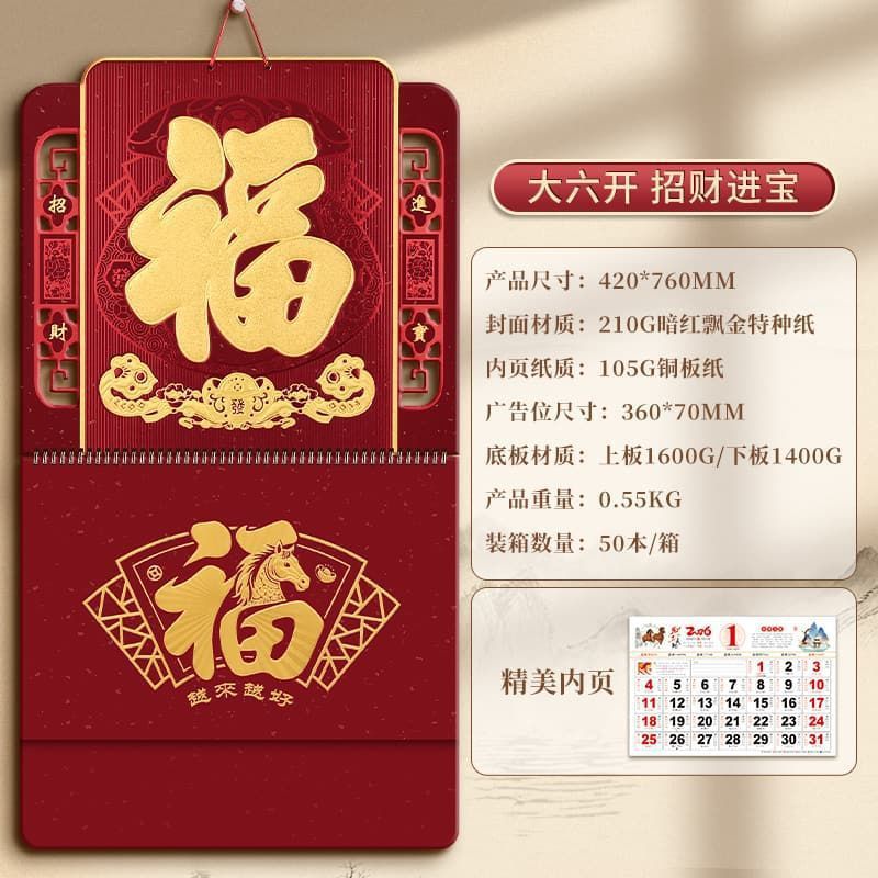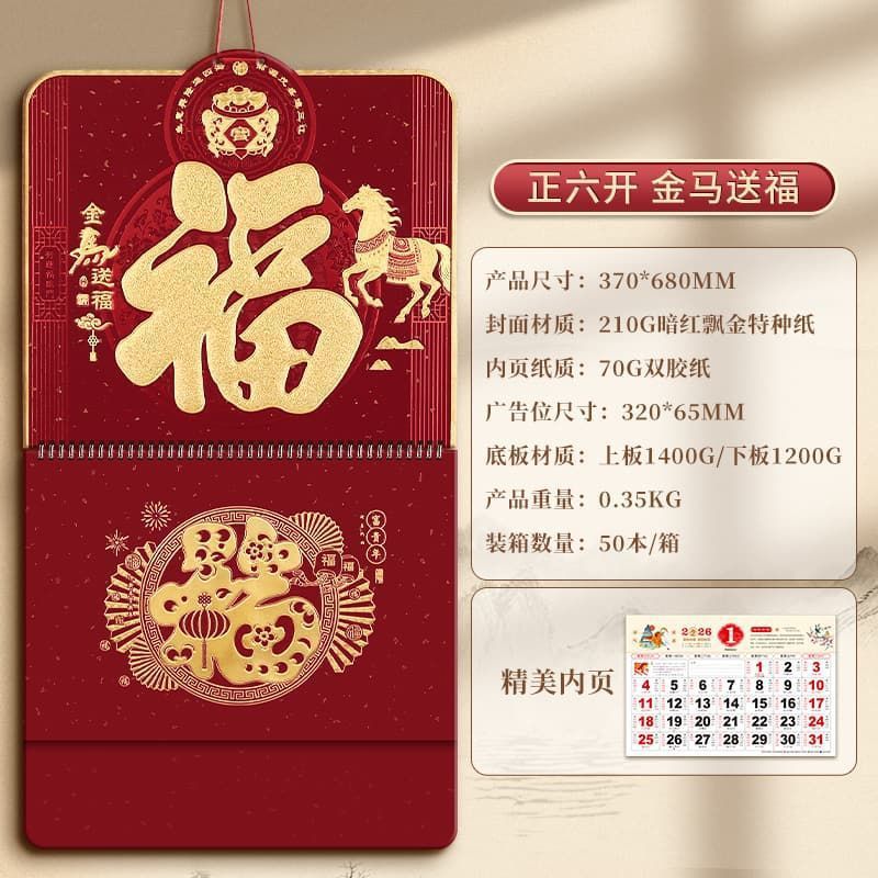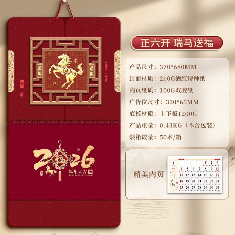 挂历2025年新款挂墙式大六开家用黄历大号吊历中国风传统月历批发