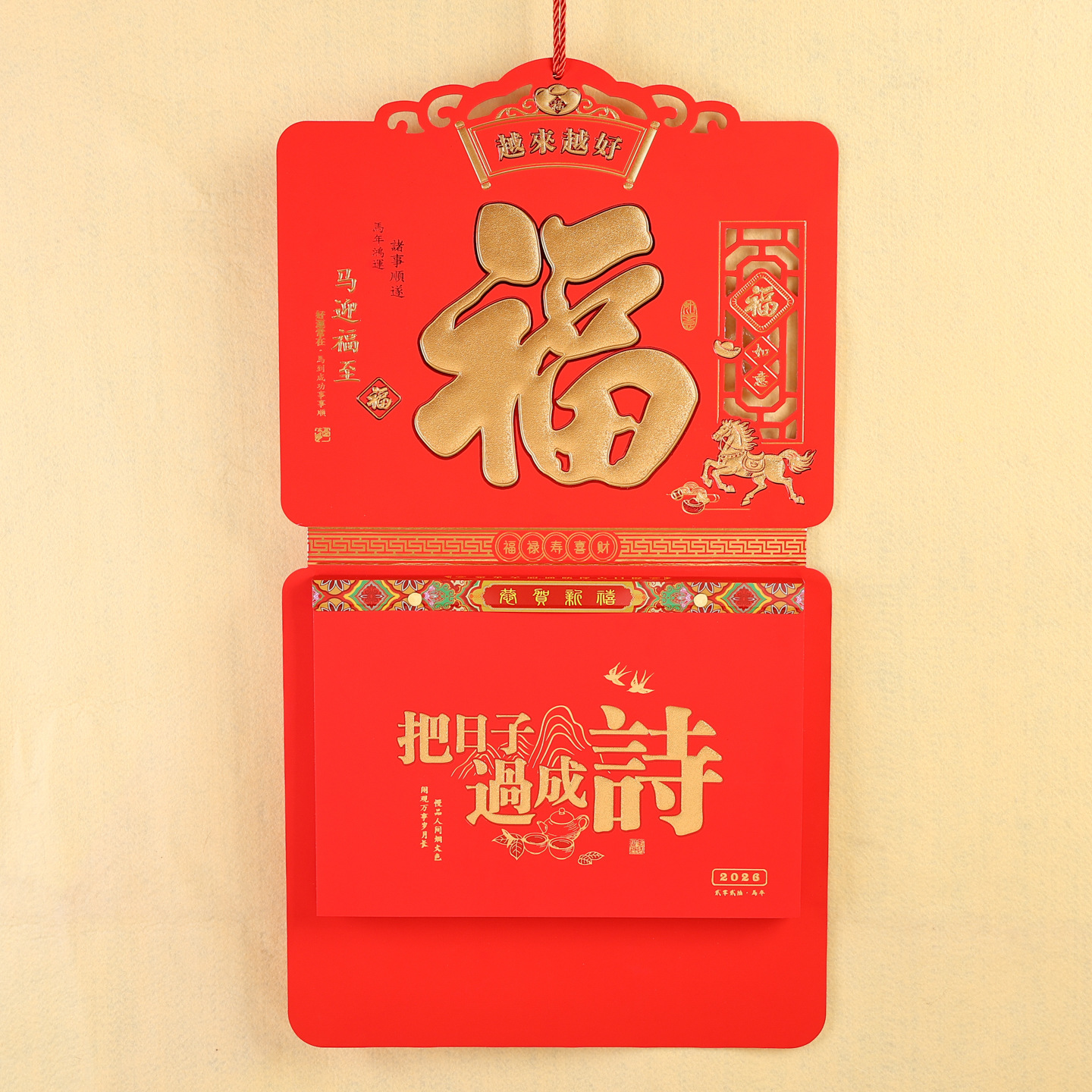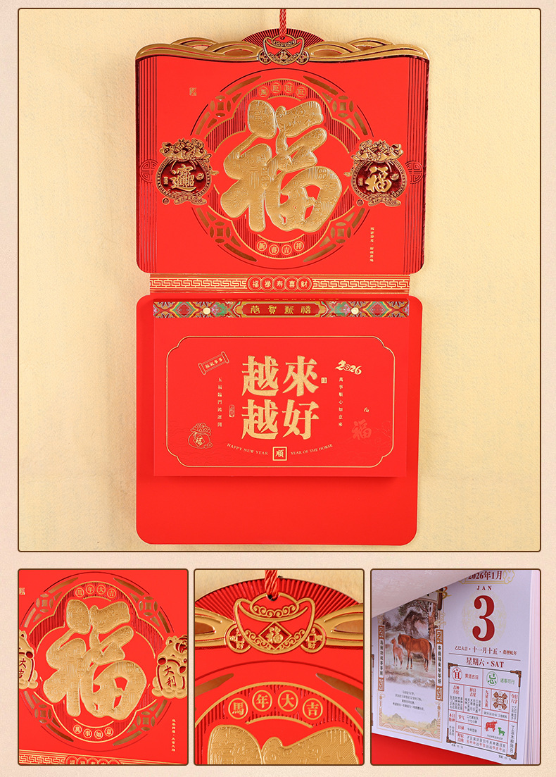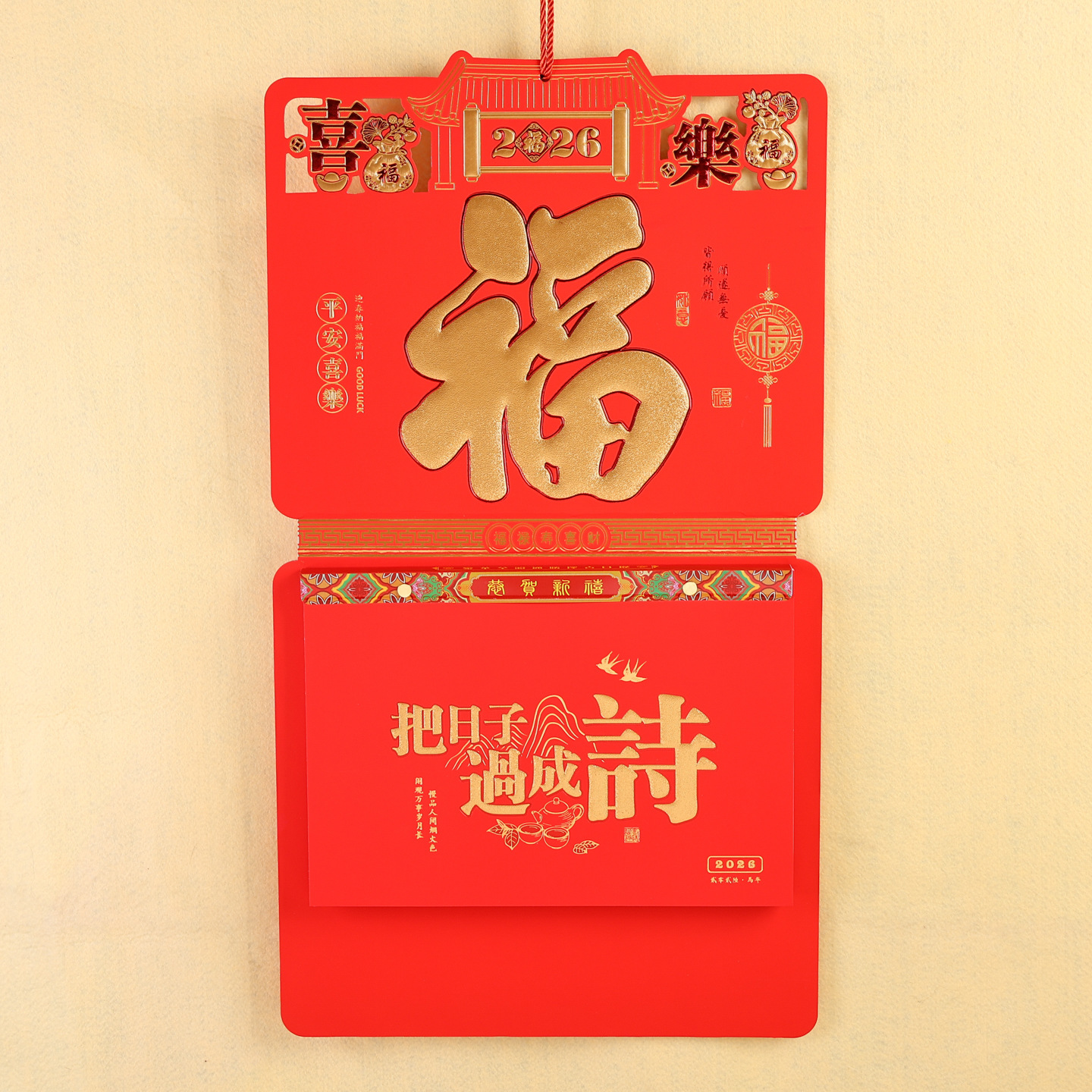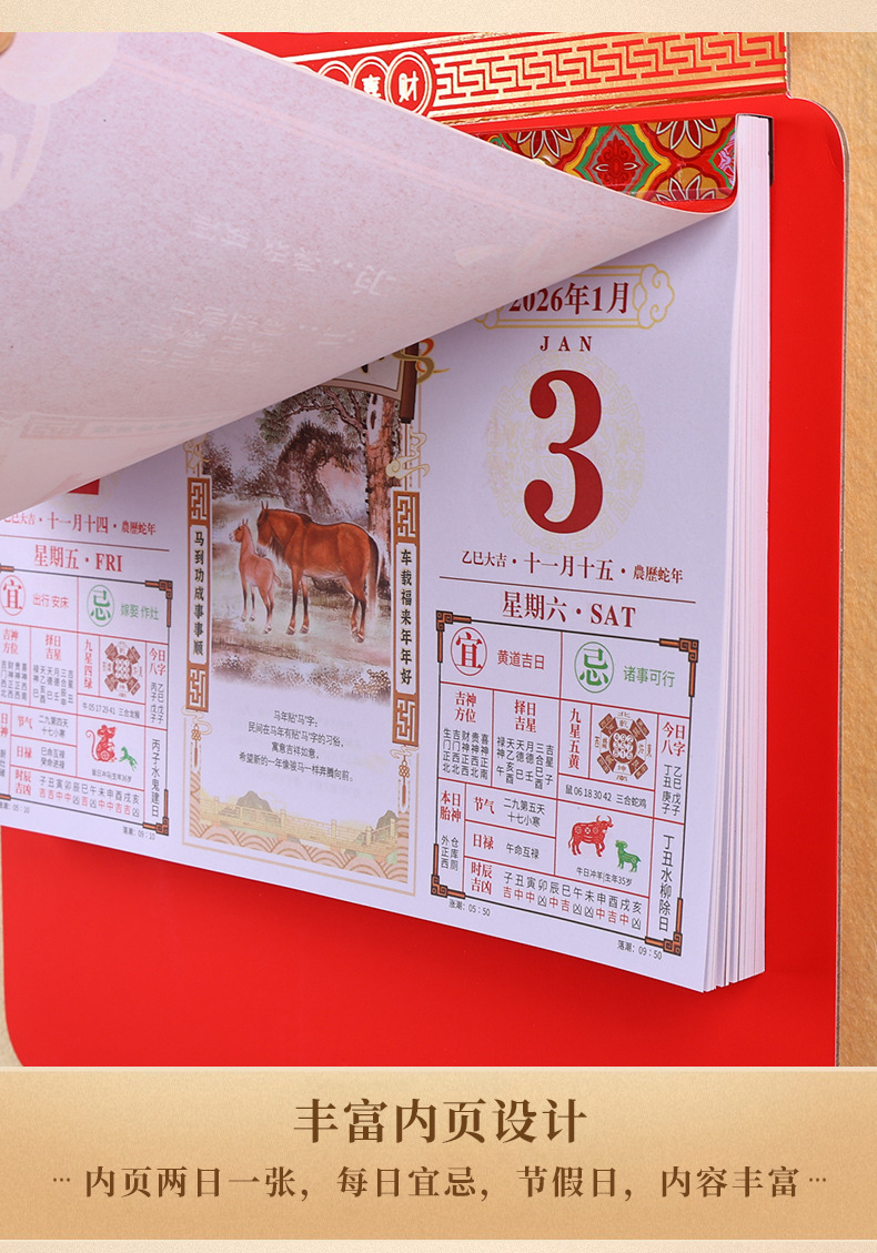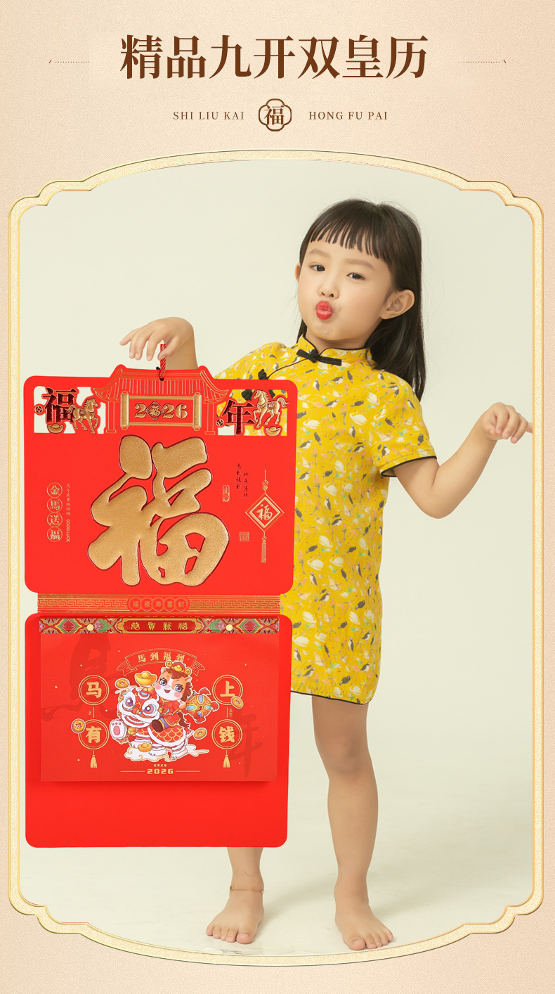 2026新款金箔挂历九开双日历广告月历老式大老黄历正六开日历