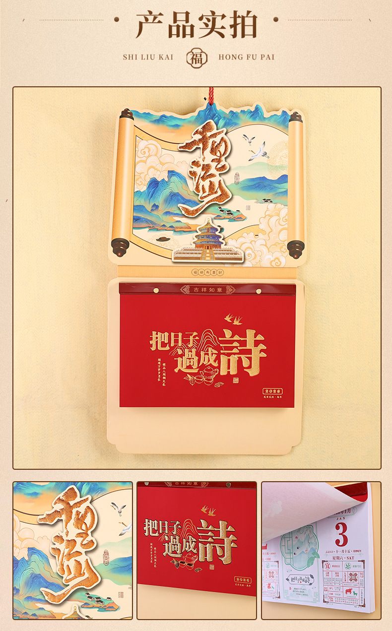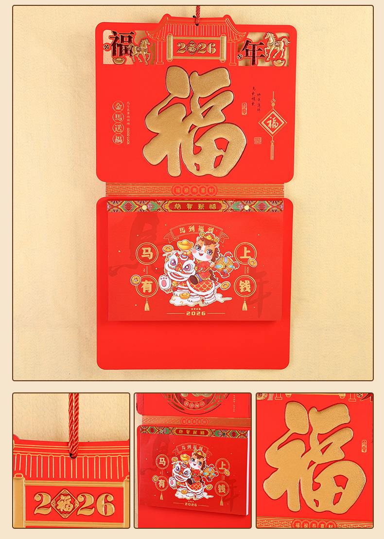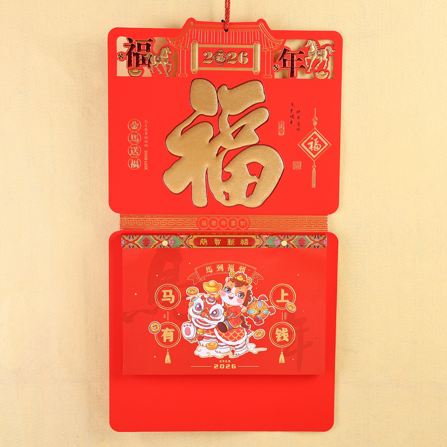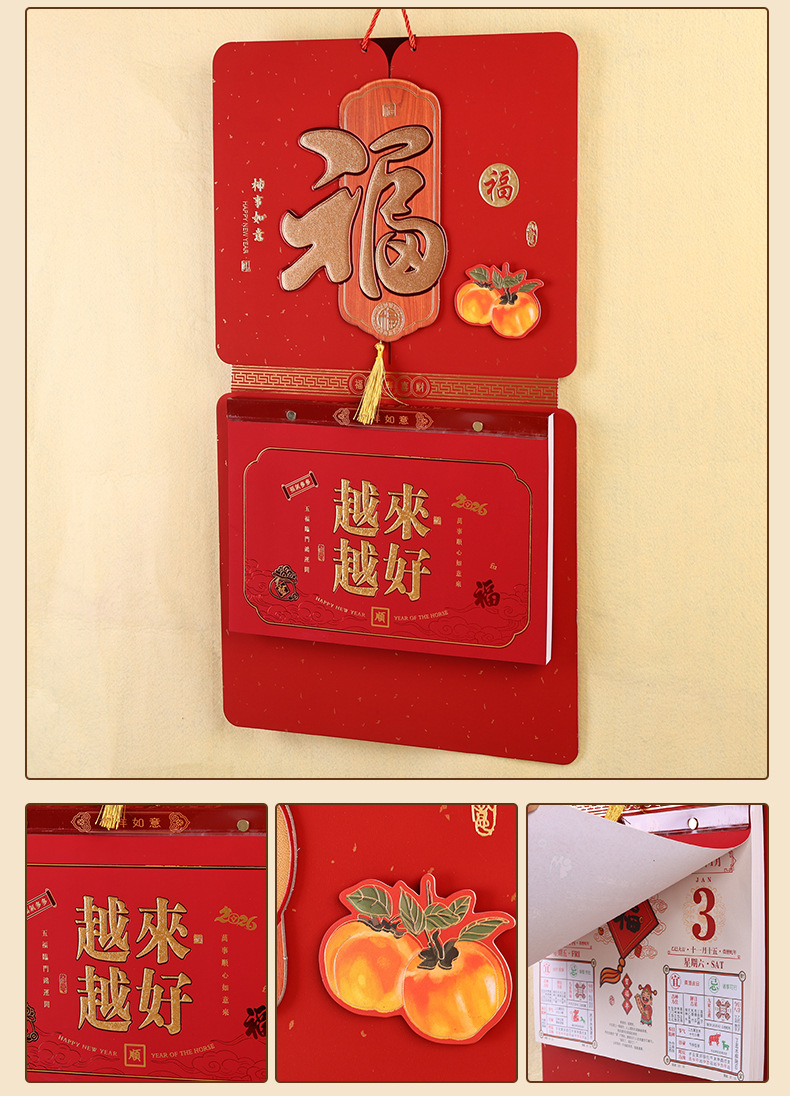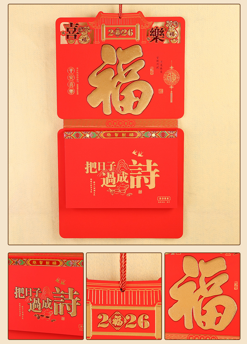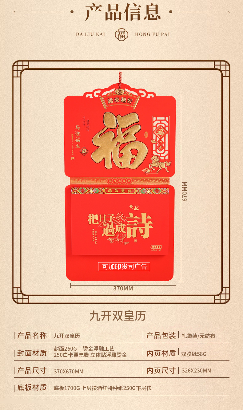 2026新款金箔挂历九开双日历广告月历老式大老黄历正六开日历