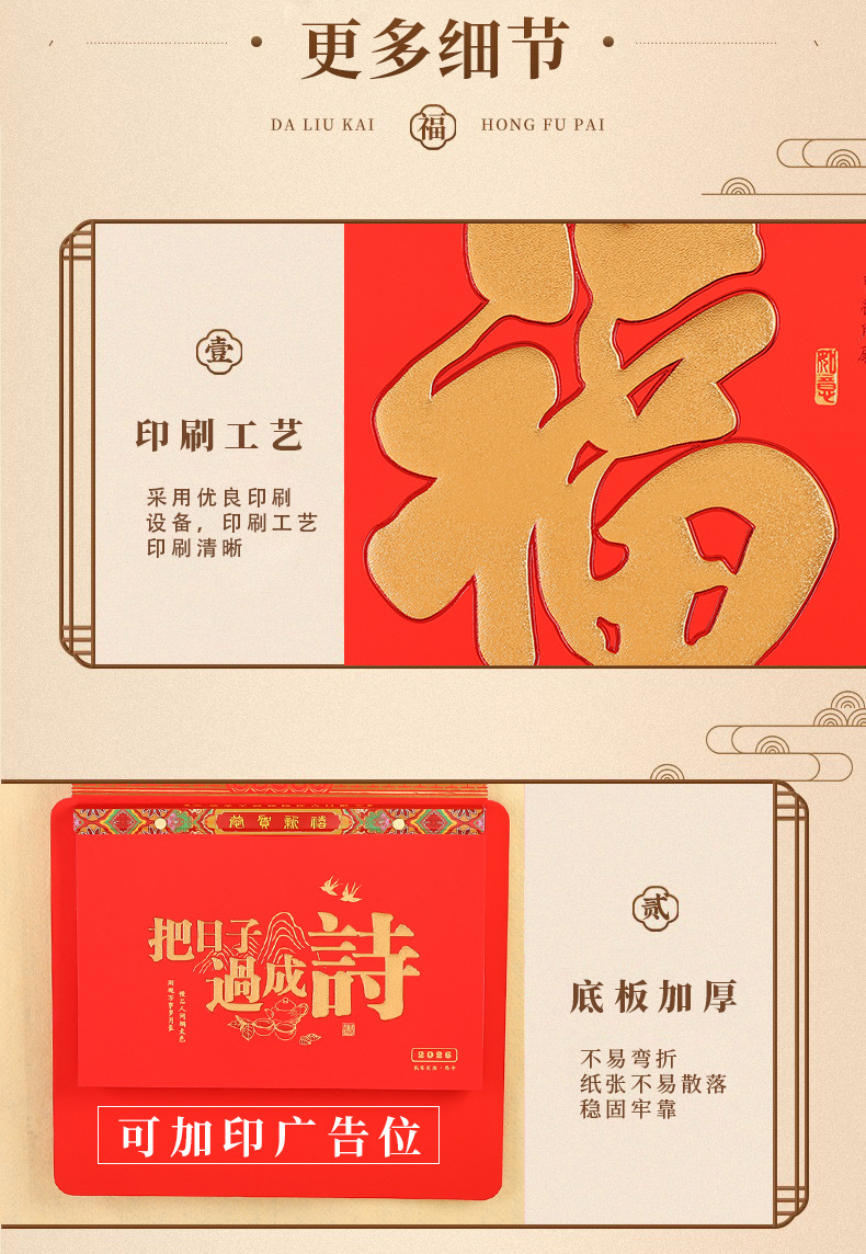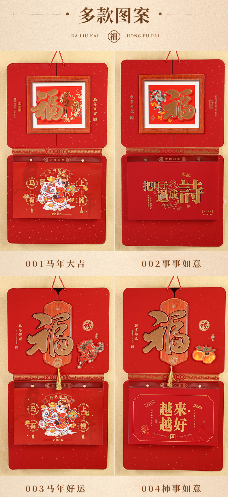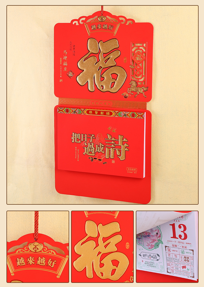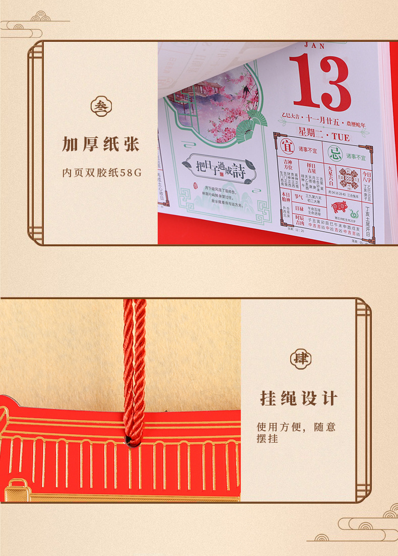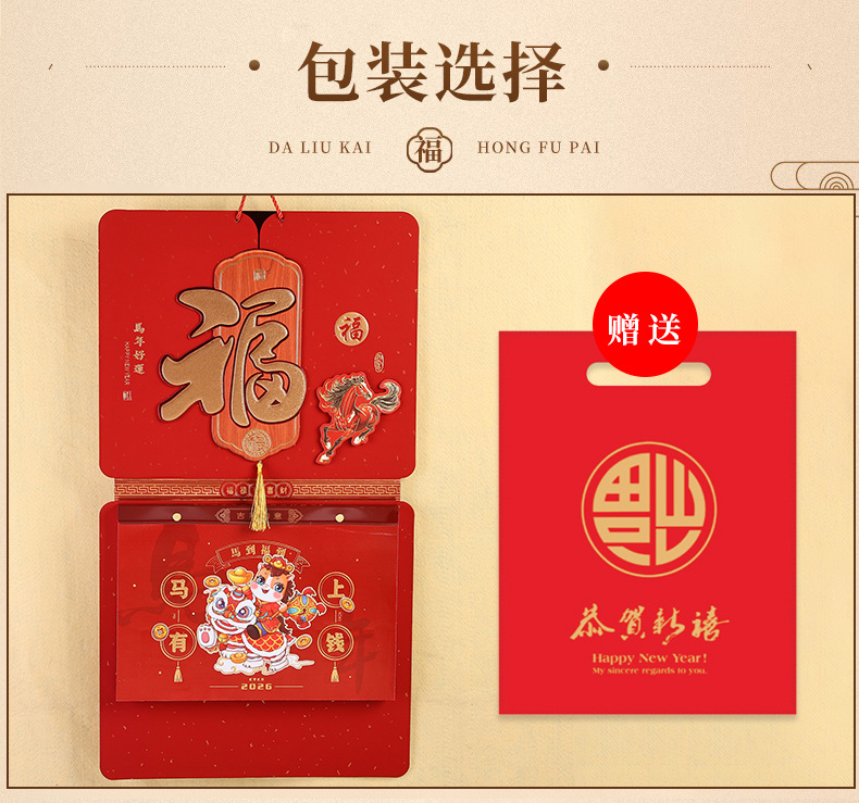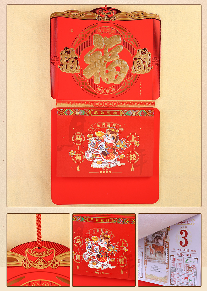 2026新款金箔挂历九开双日历广告月历老式大老黄历正六开日历