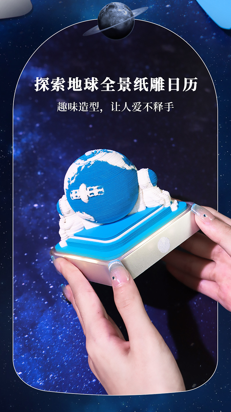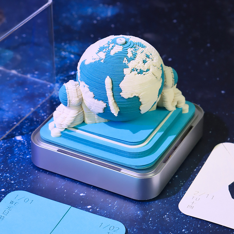 跨境热卖2026纸雕地球日历创意文创礼物桌面装饰摆件3d立体便签本