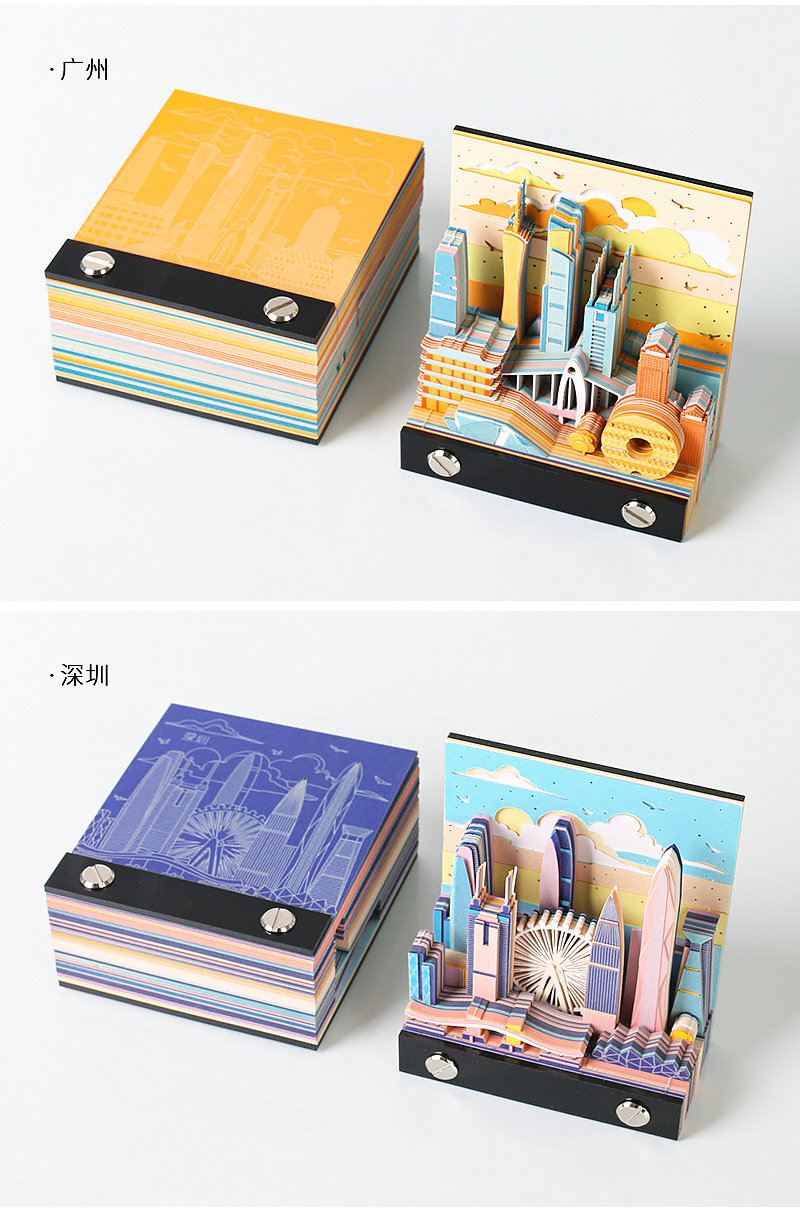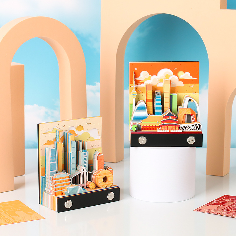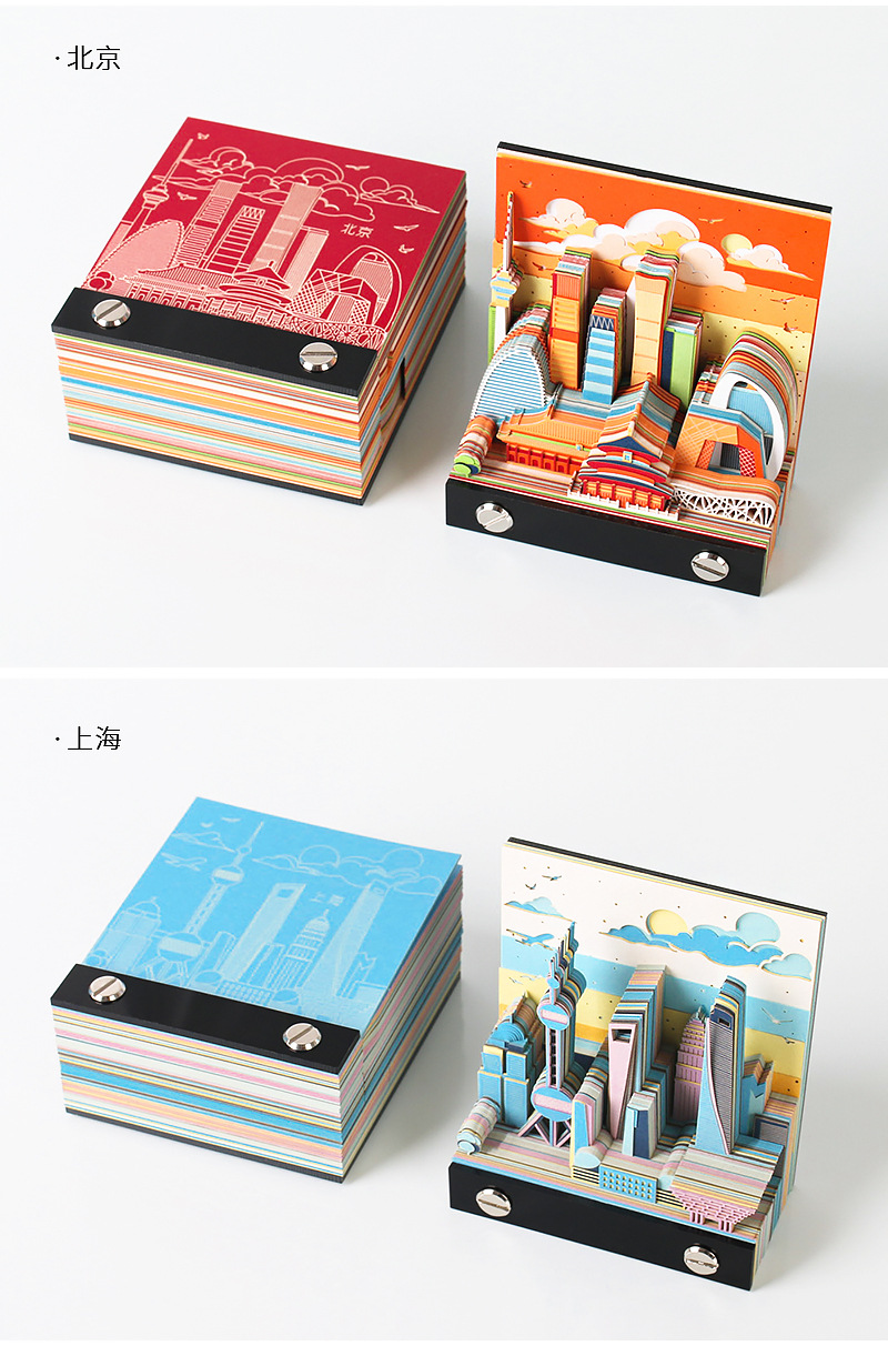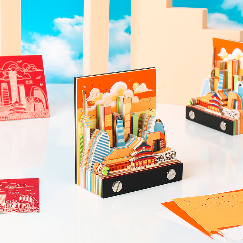 北上广深城市系列文创礼品定制2026纸雕日历桌面摆件3D立体便签本