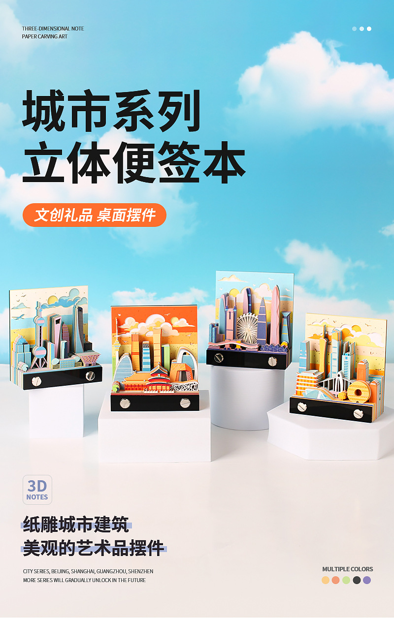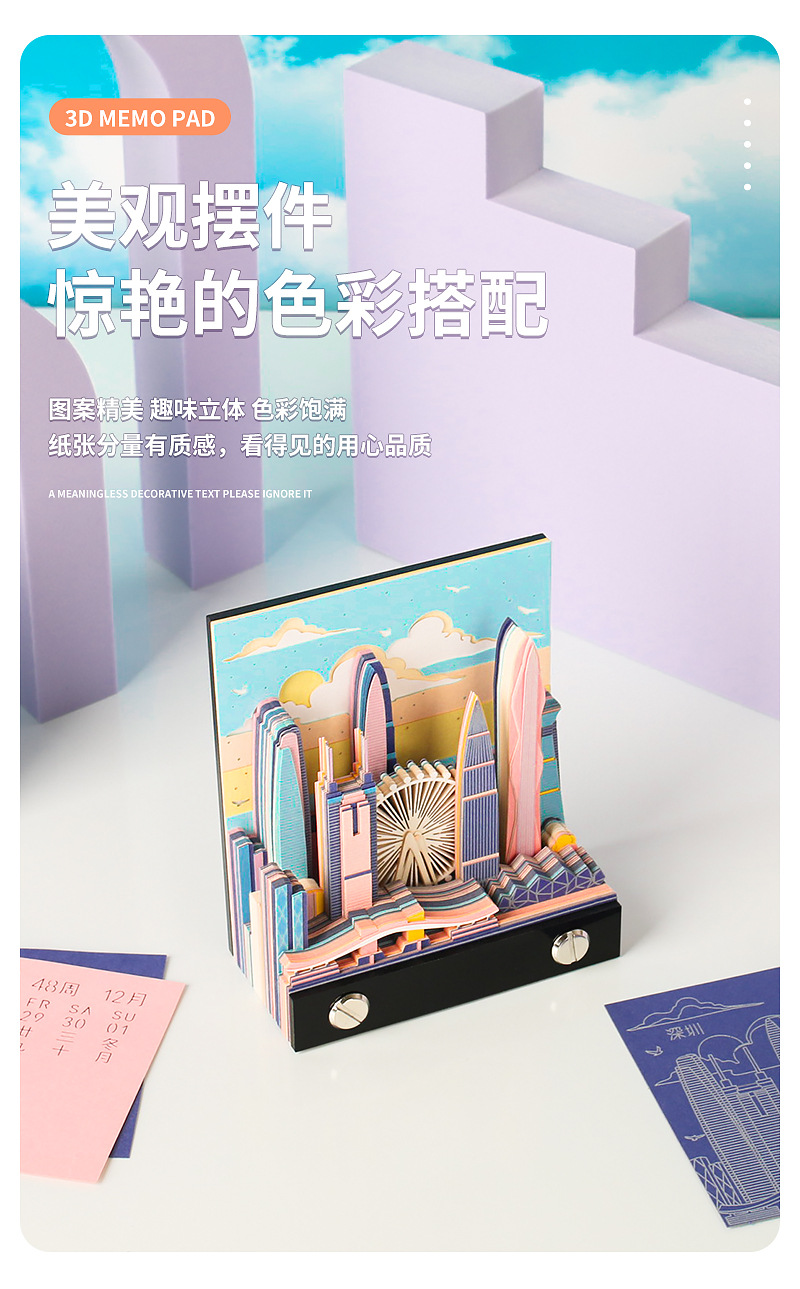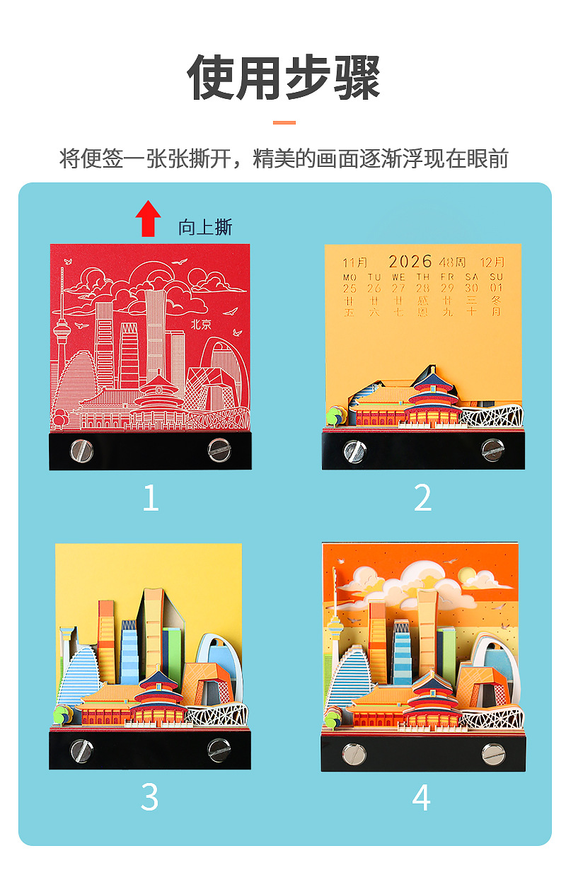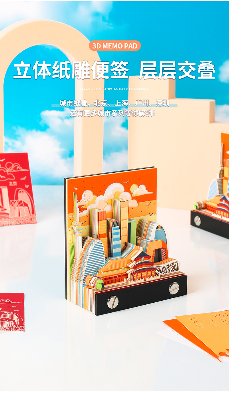 北上广深城市系列文创礼品定制2026纸雕日历桌面摆件3D立体便签本