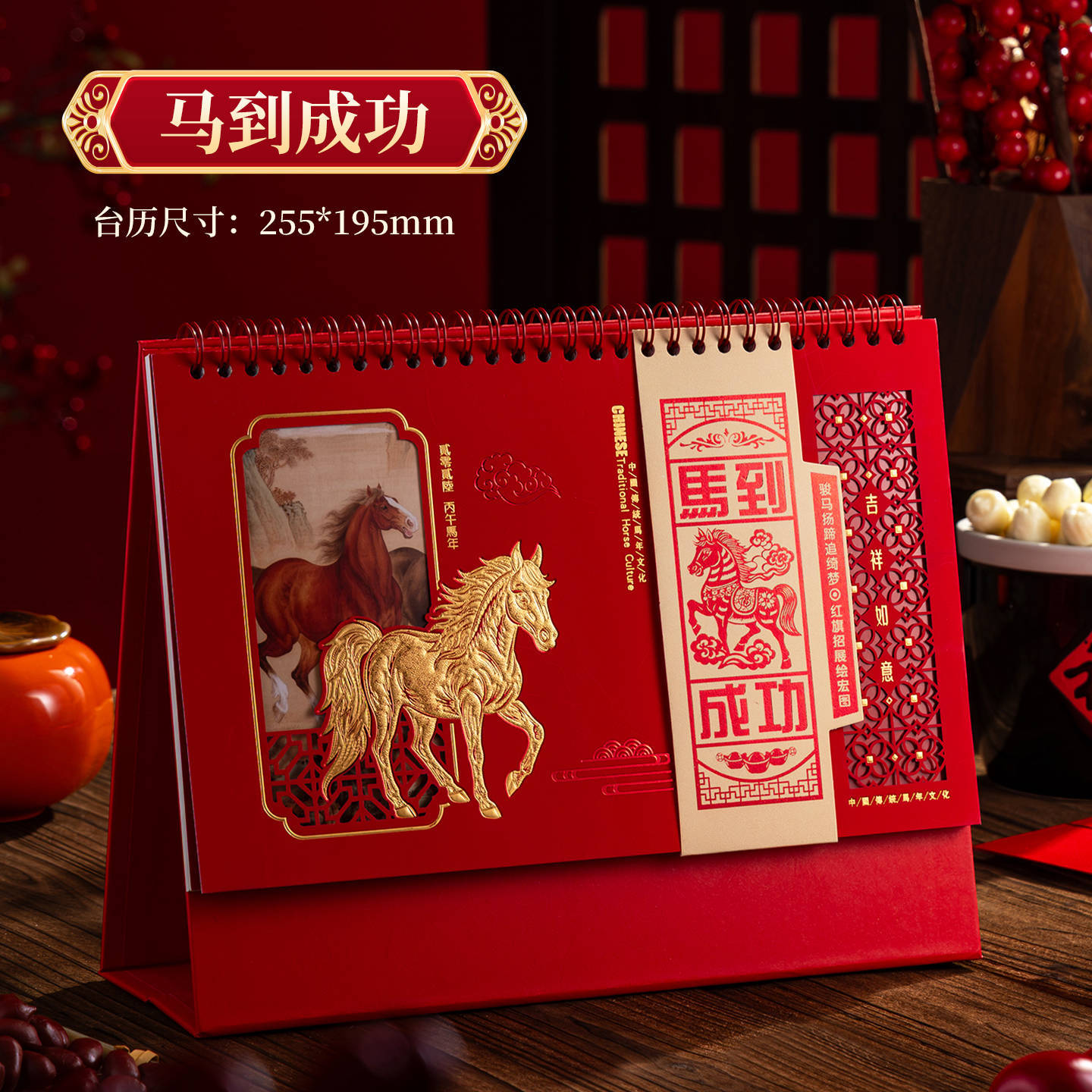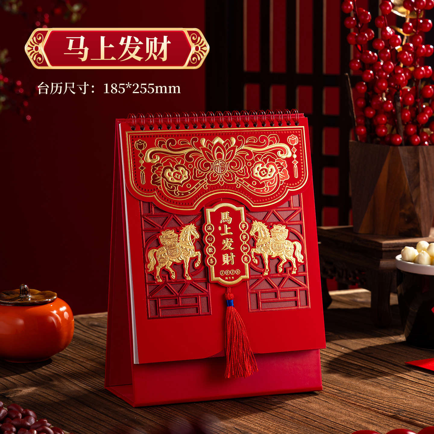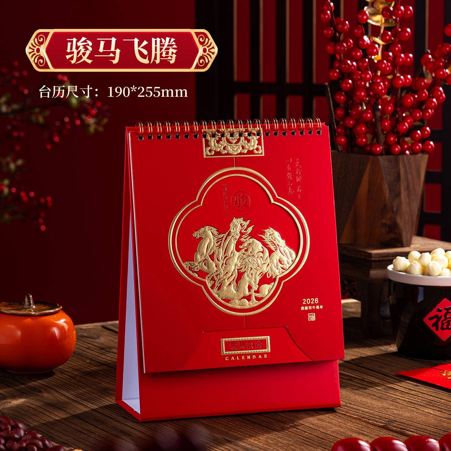 2026年台历日历马年中国风桌面台历本创意简约摆件烫金日历可手撕