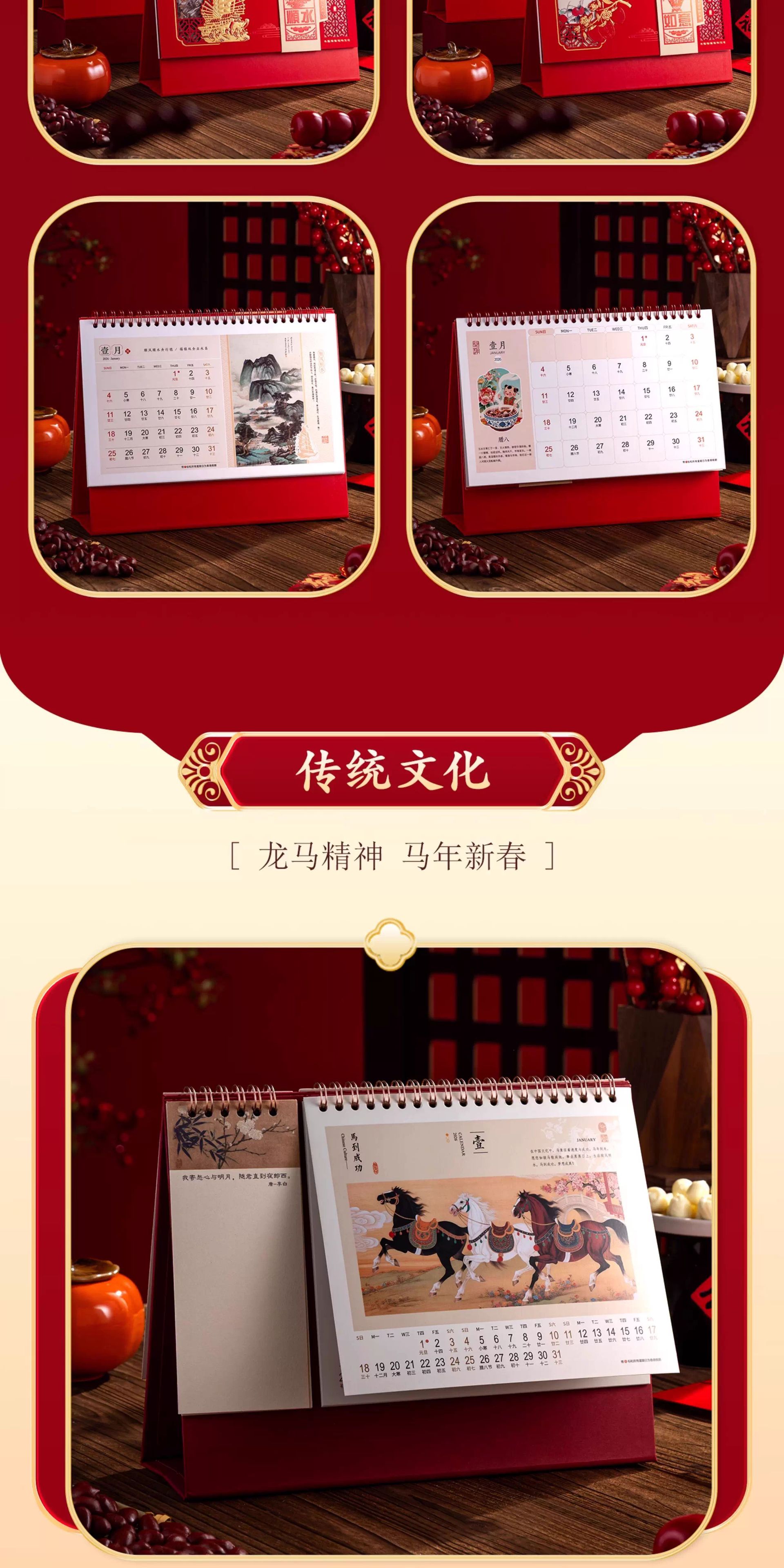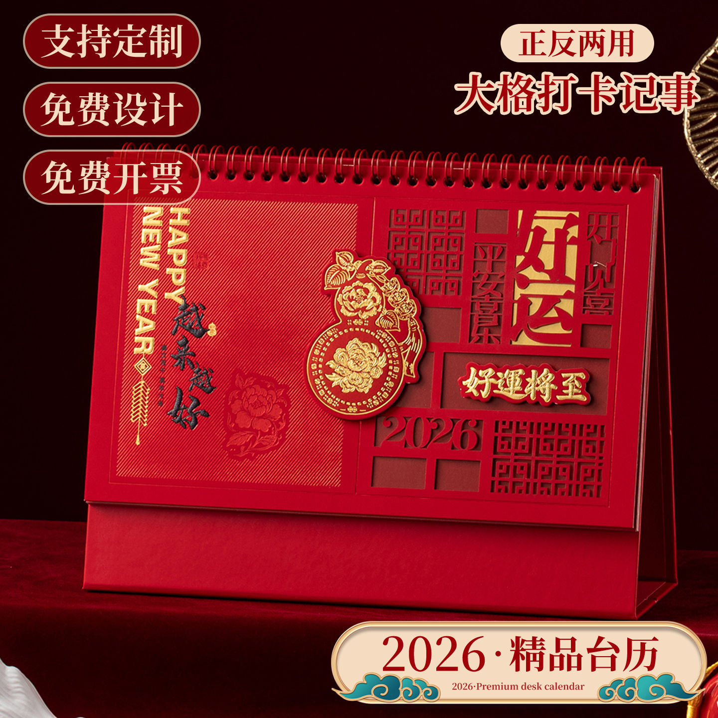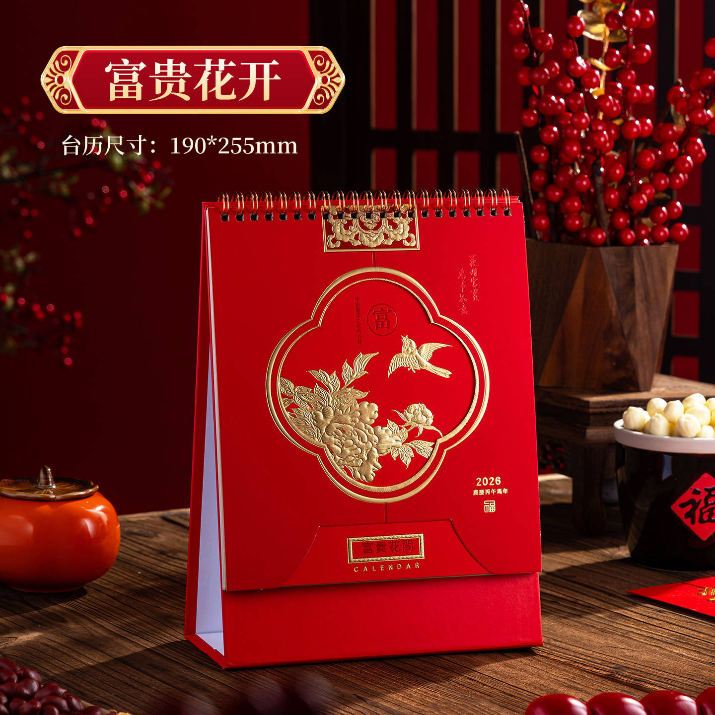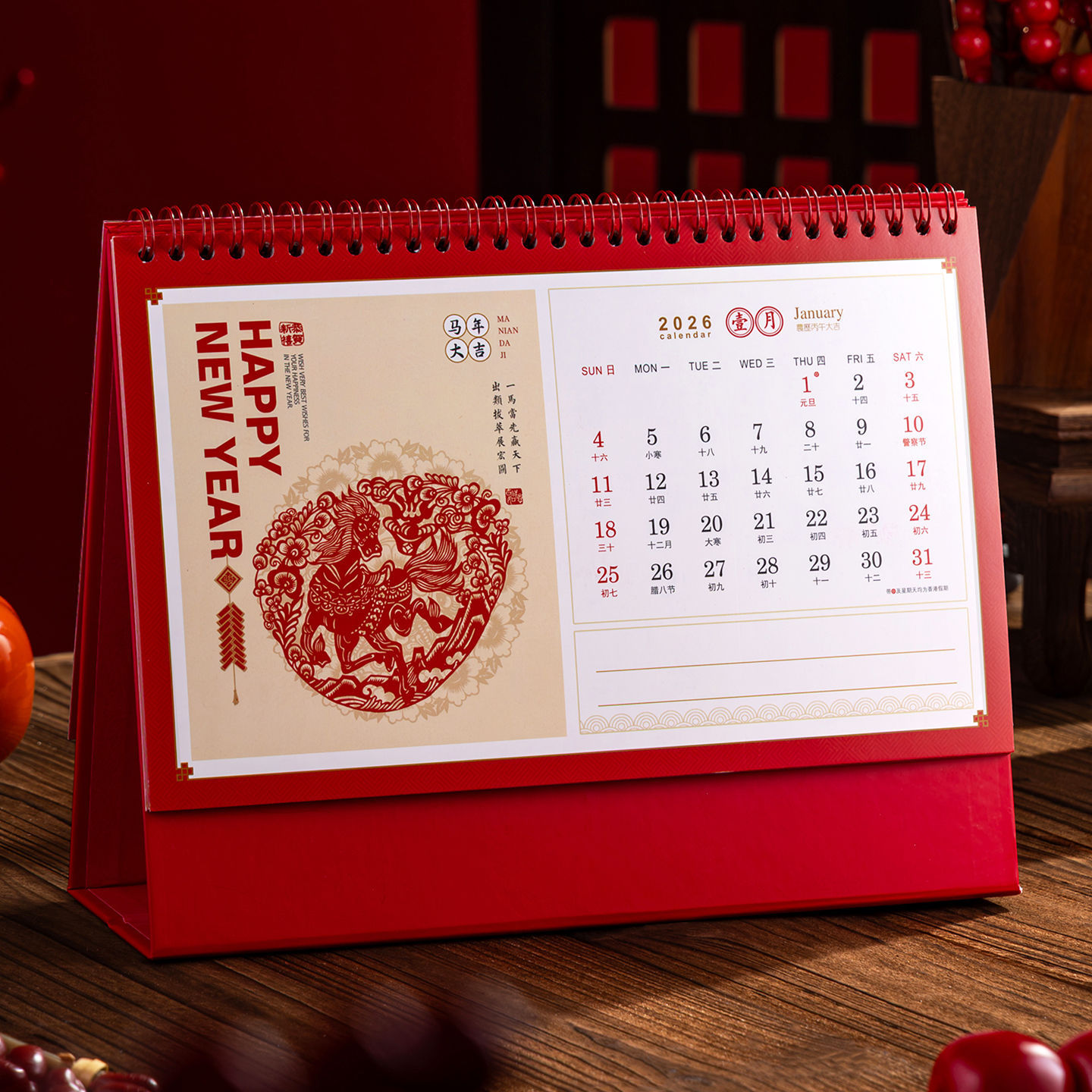 2026年台历日历马年中国风桌面台历本创意简约摆件烫金日历可手撕