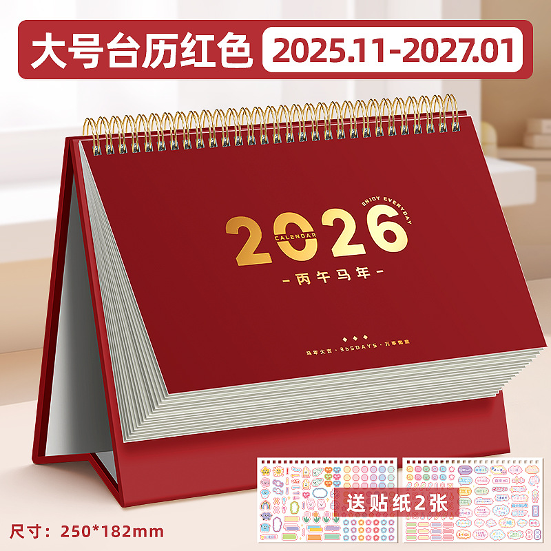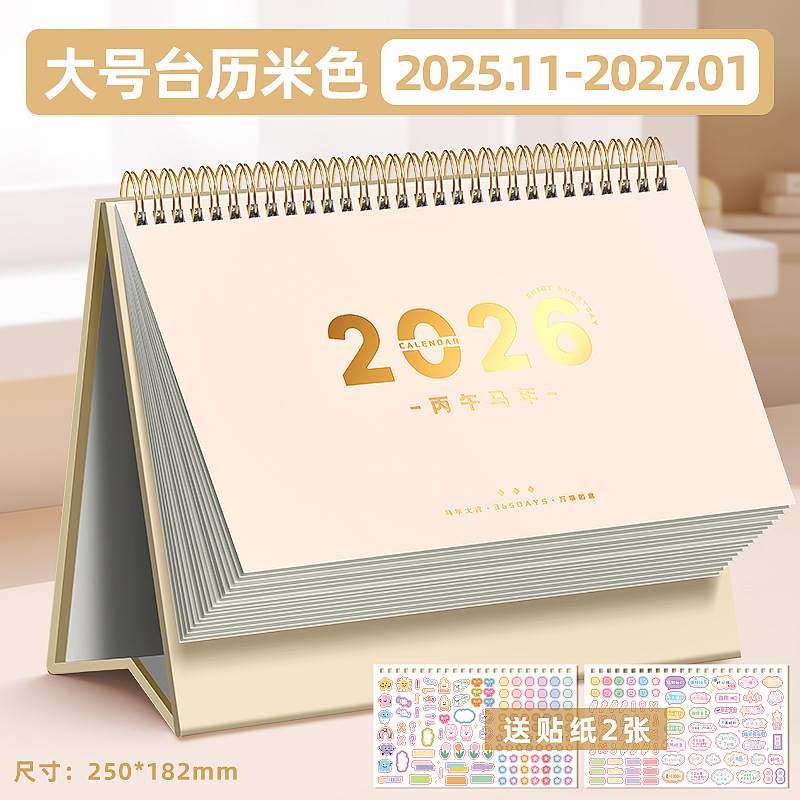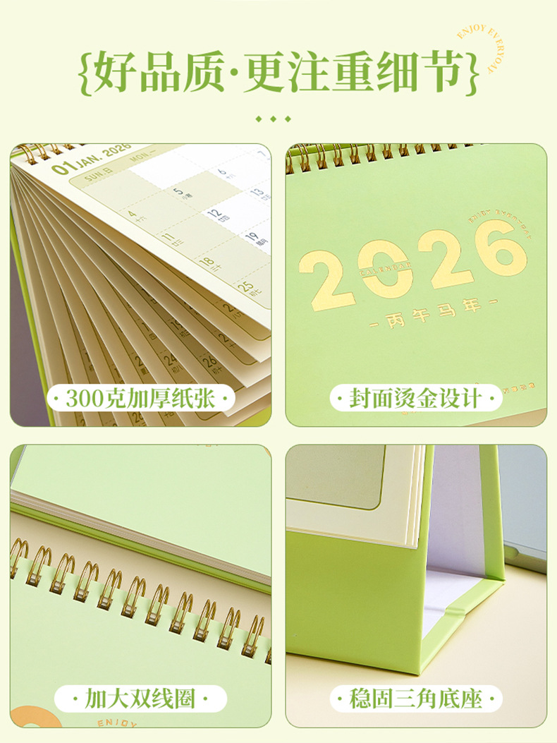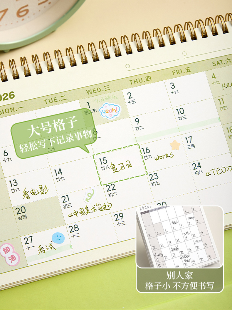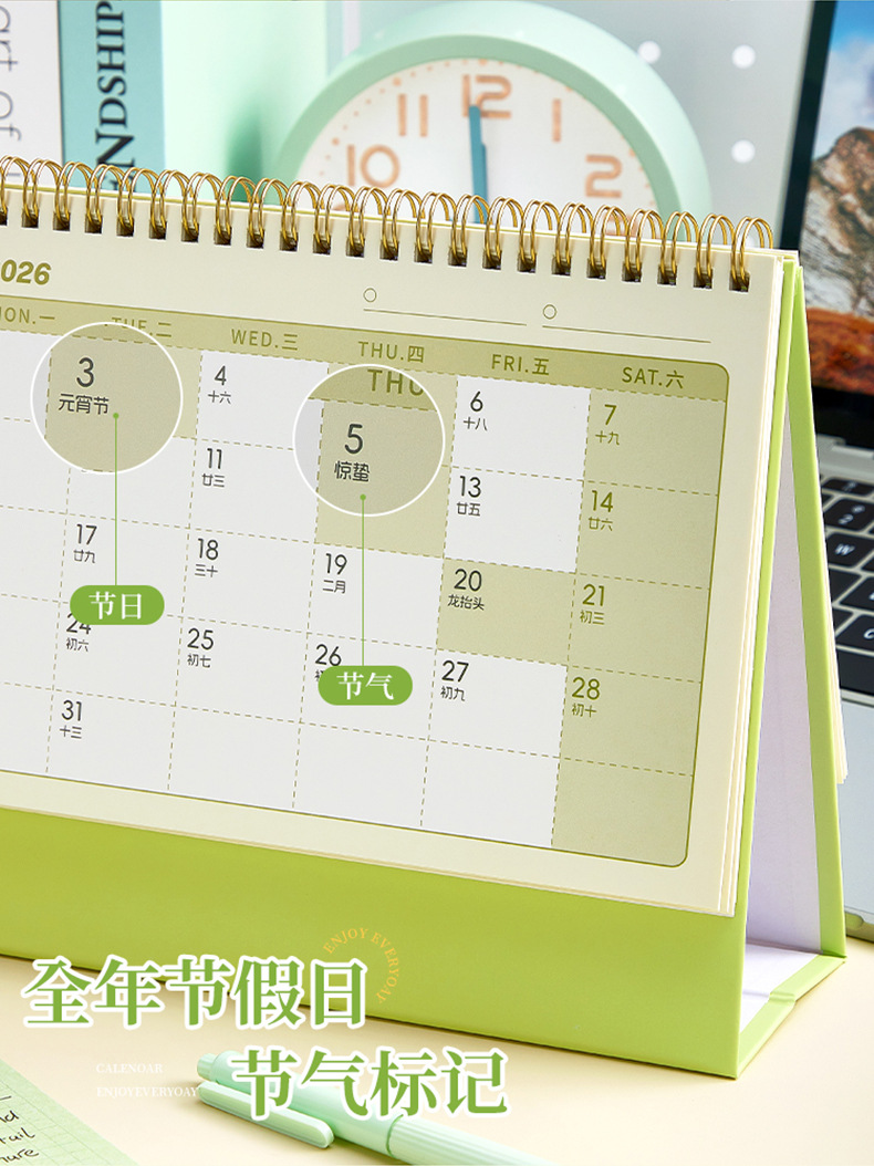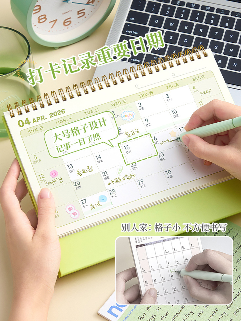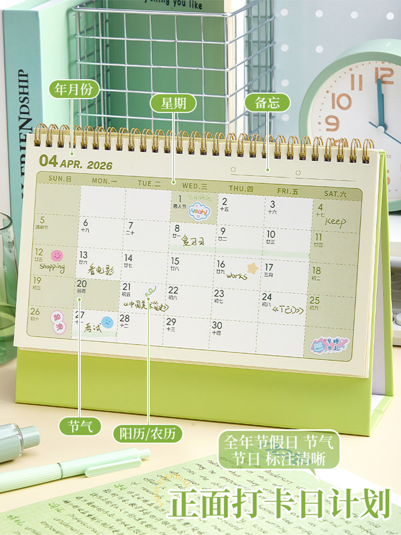 咔巴熊2026年台历简约桌面摆件全年节假日标记学生每日打卡计划本