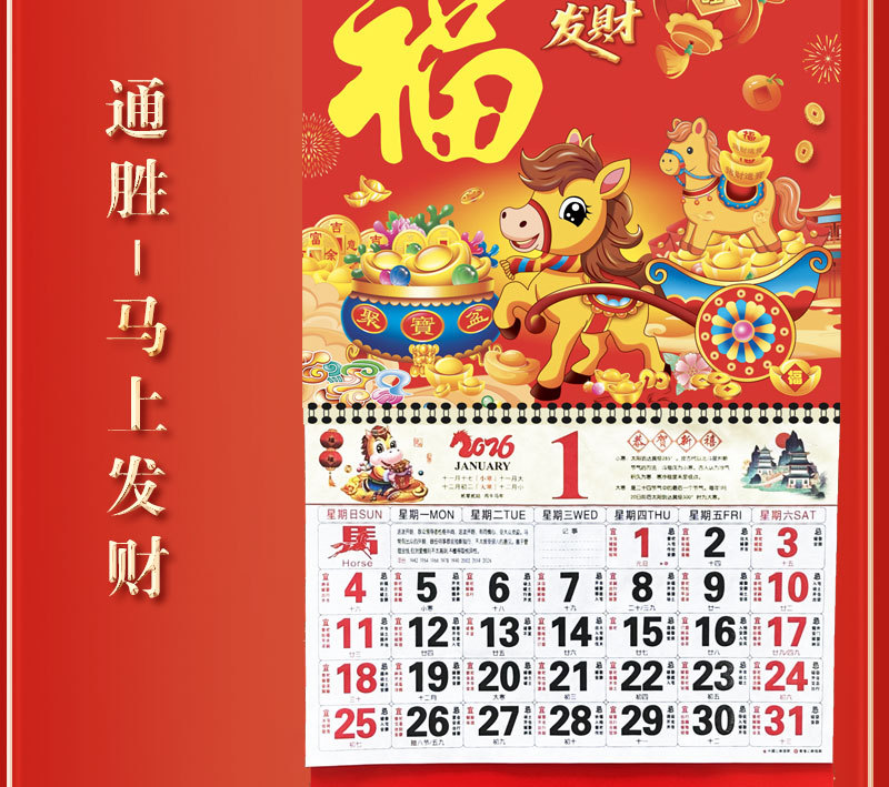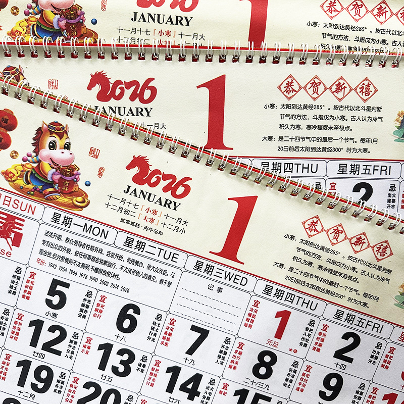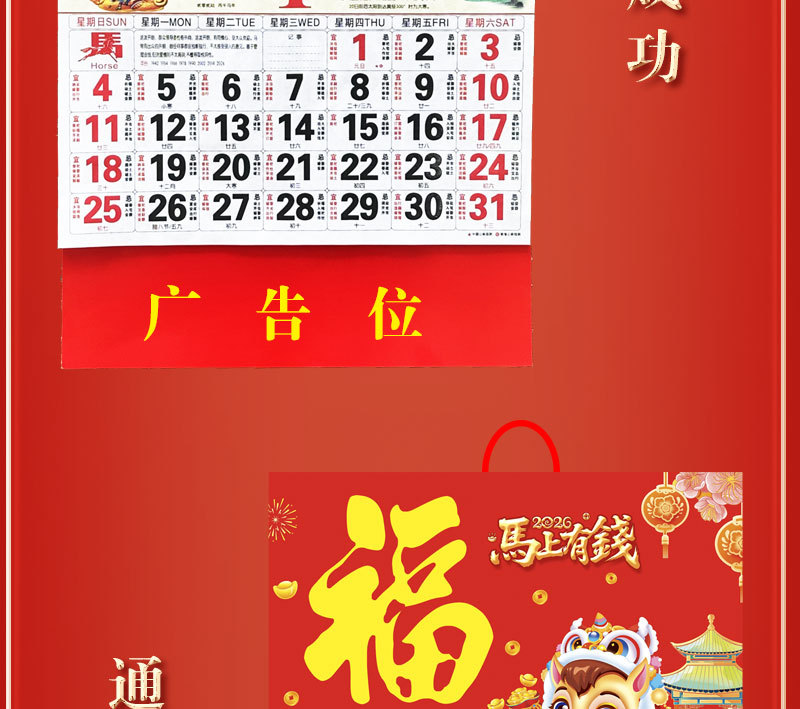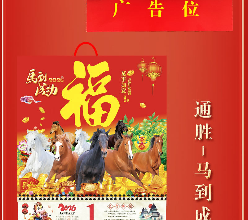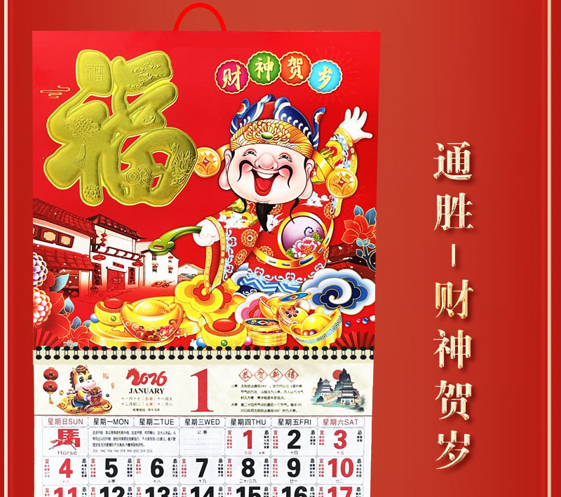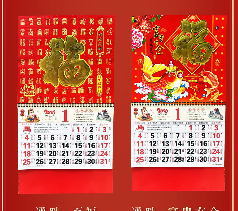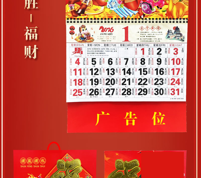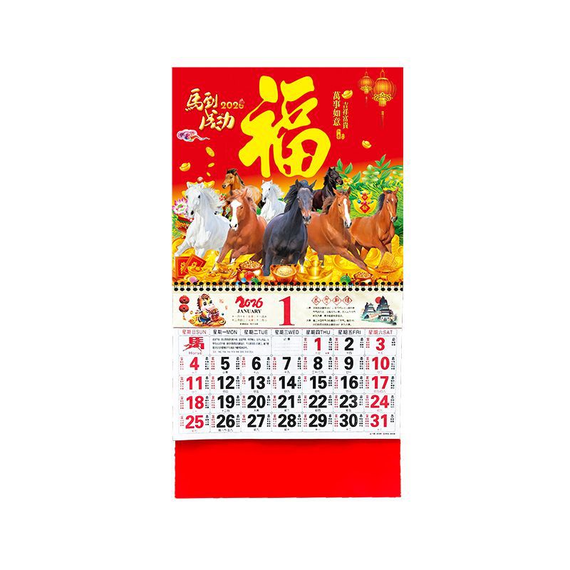 2026正六通胜吊牌家用挂墙月历烫金福字日历广告logo定 zhi挂历