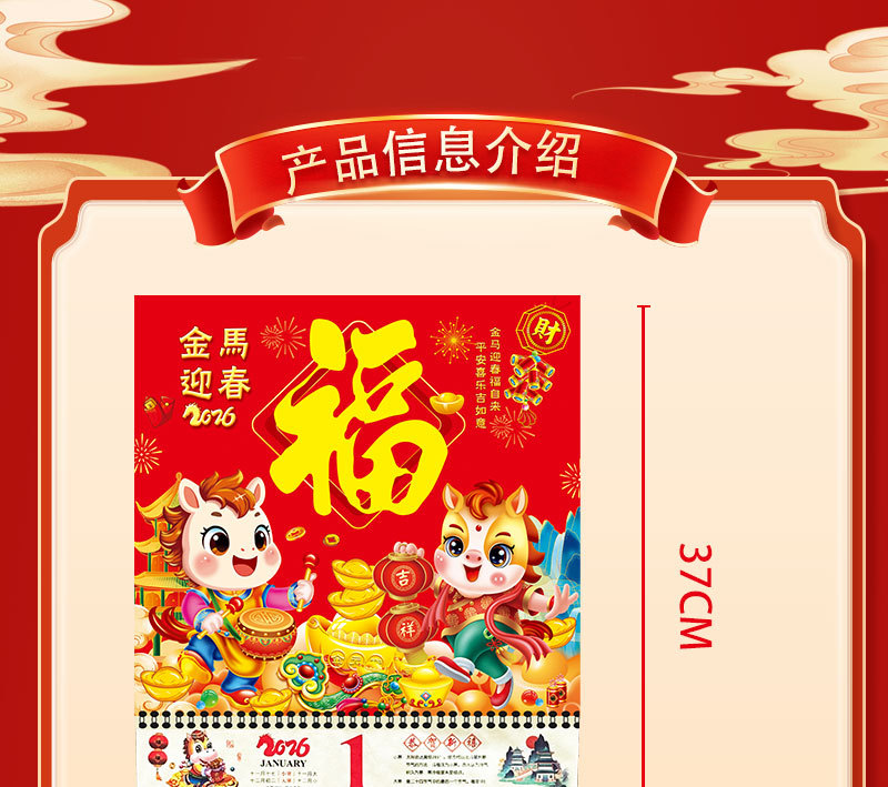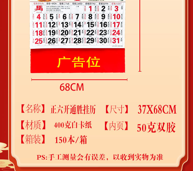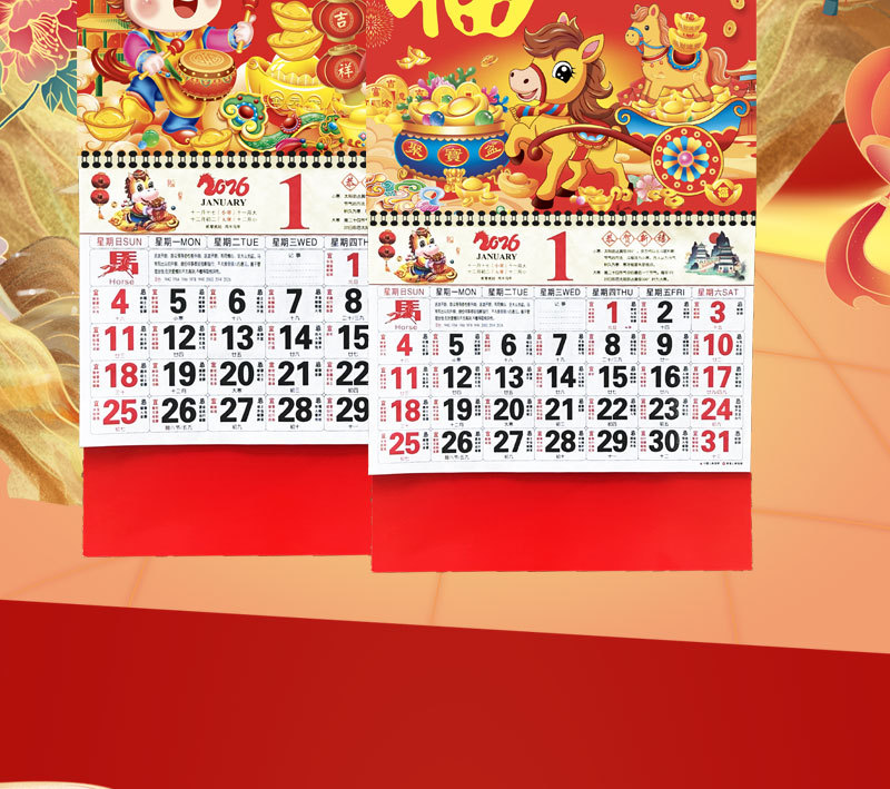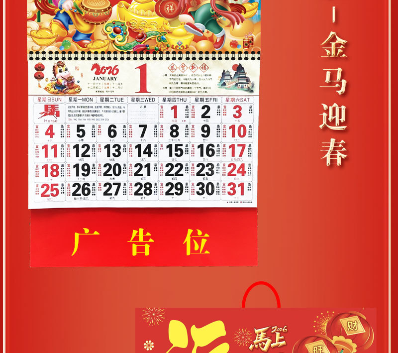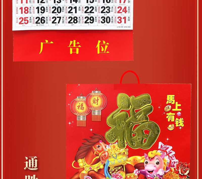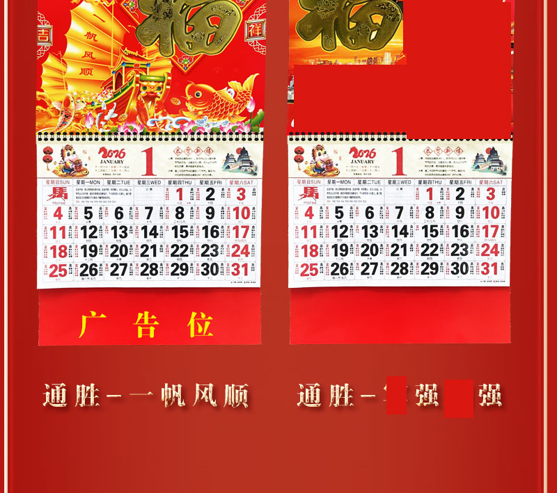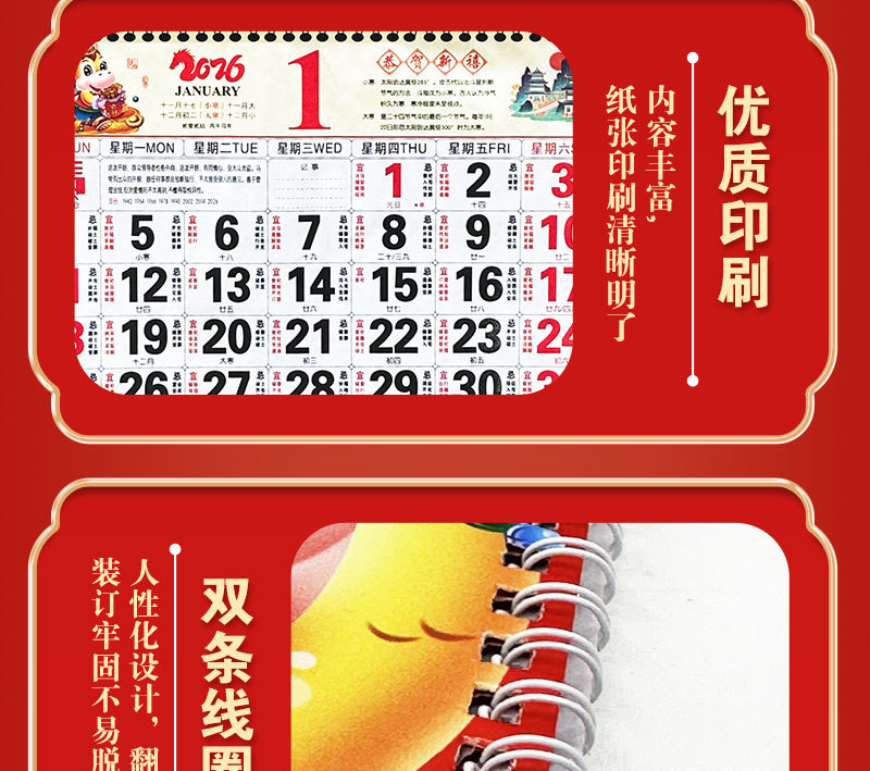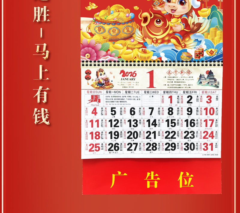 2026正六通胜吊牌家用挂墙月历烫金福字日历广告logo定 zhi挂历