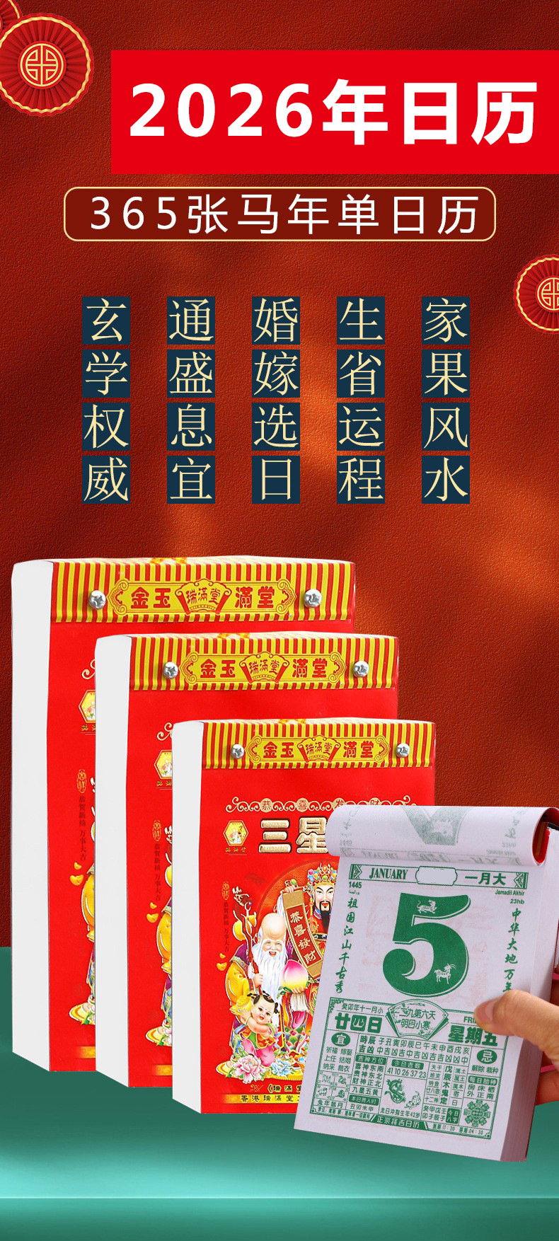 现货2026马年撕历皇历日历厂家手撕台历瑞满堂年历月历挂历老黄历