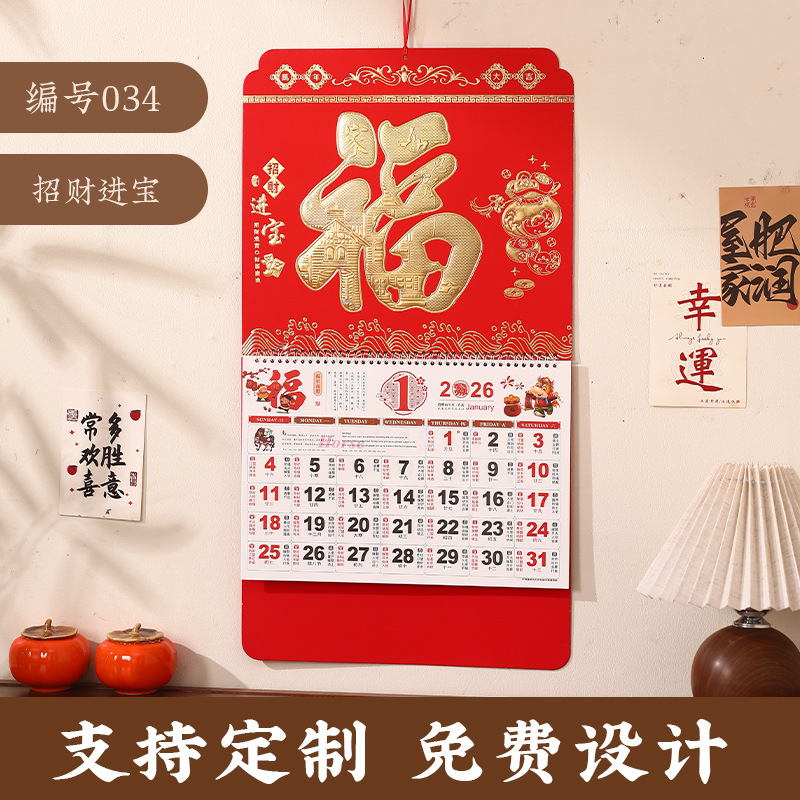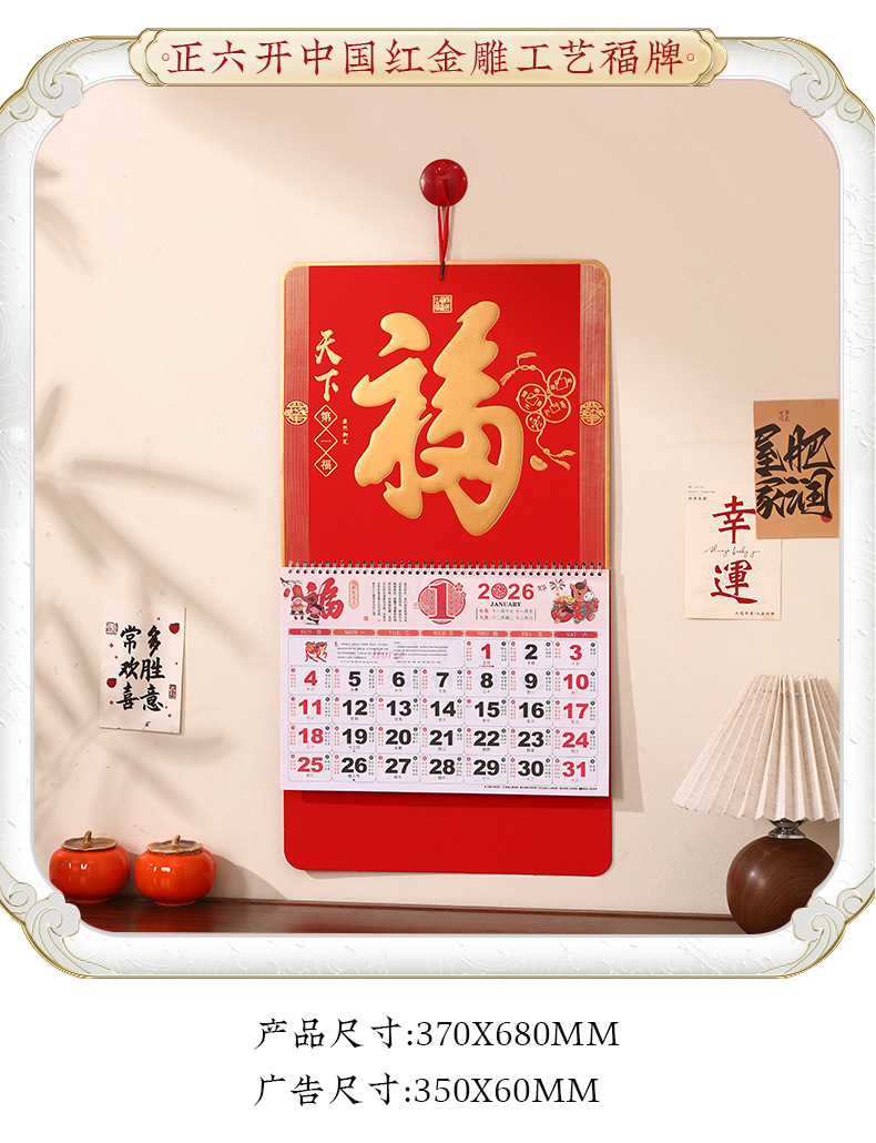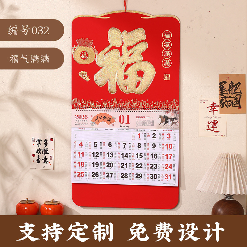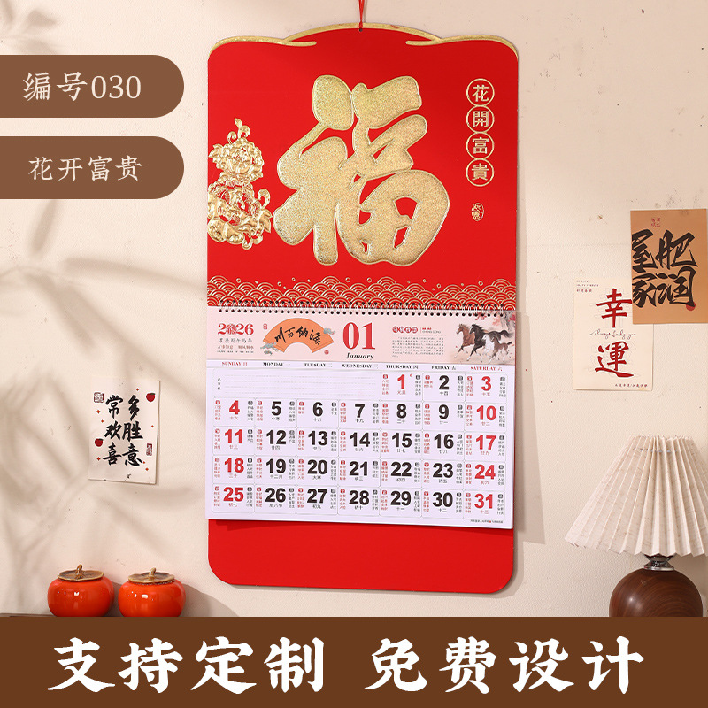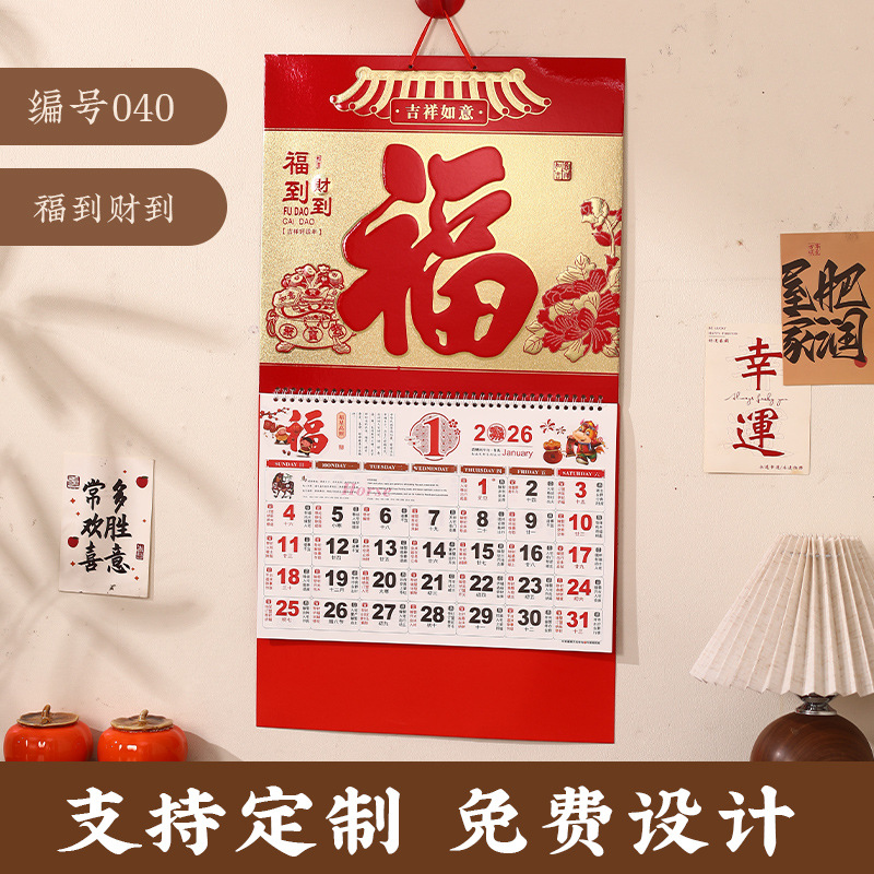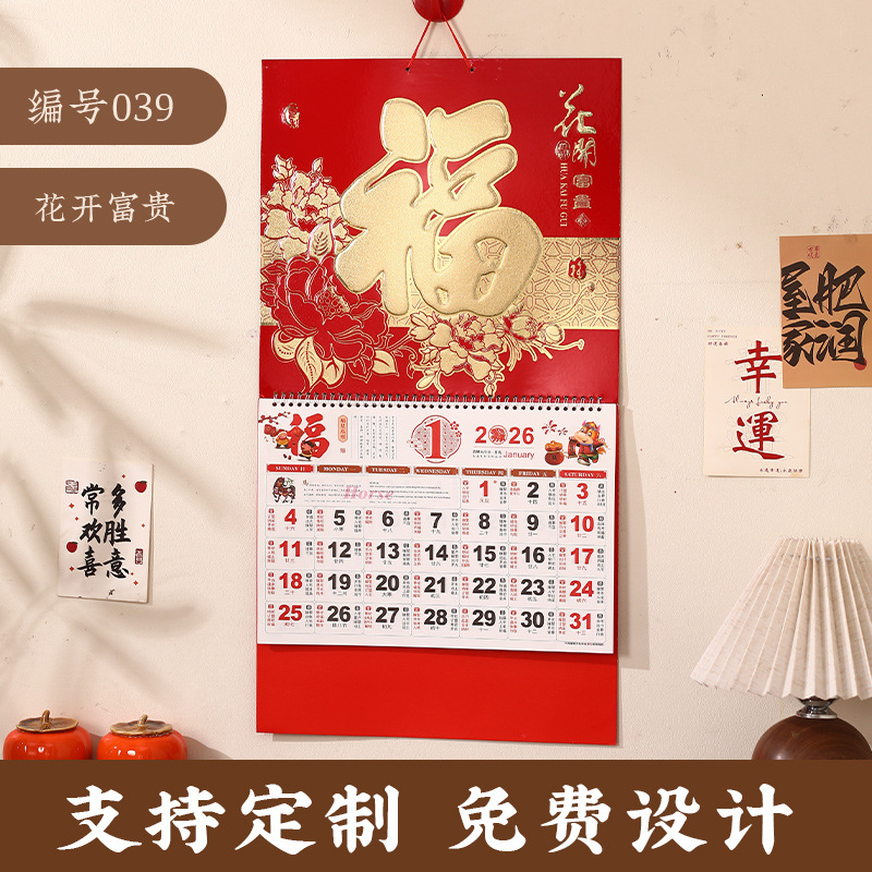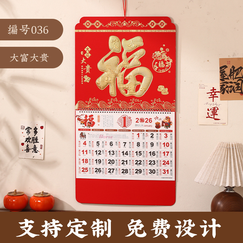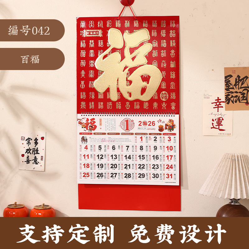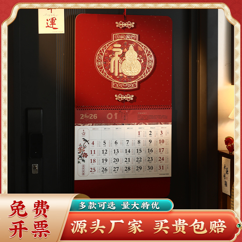 2026年福字挂历定制公司礼品手撕日历大号万年历定做创意金箔家用