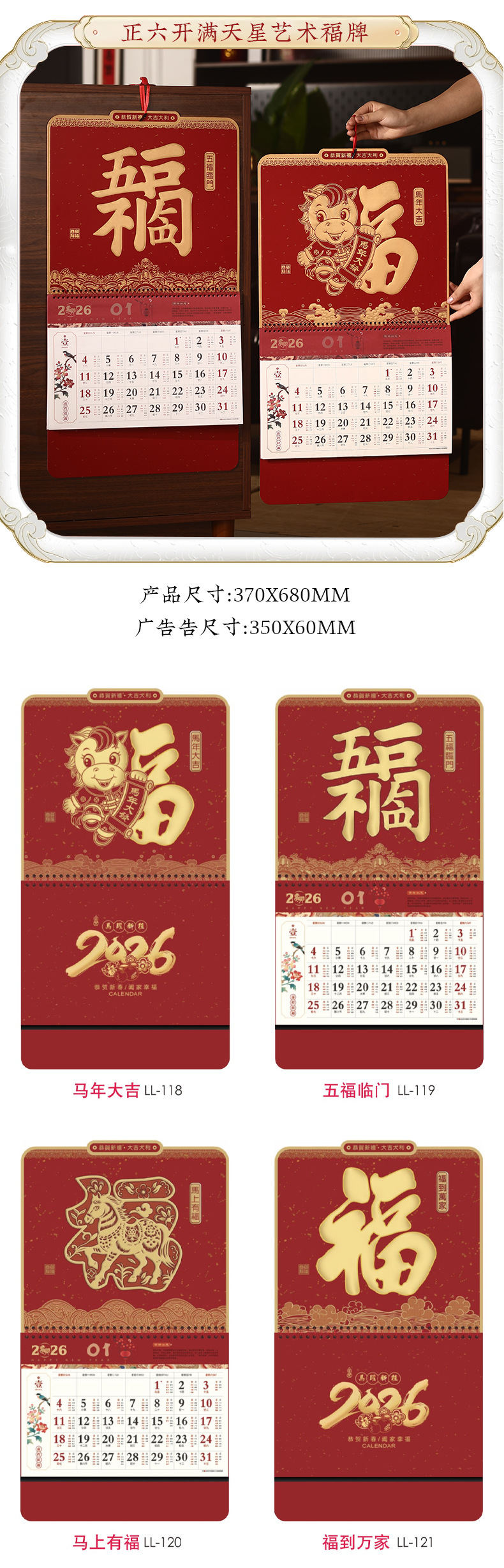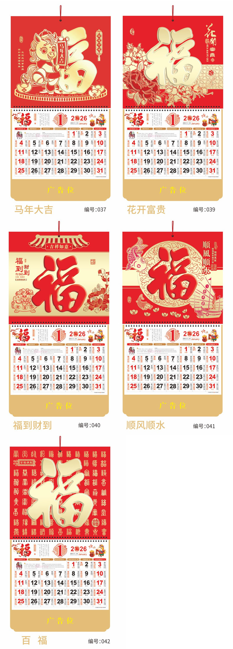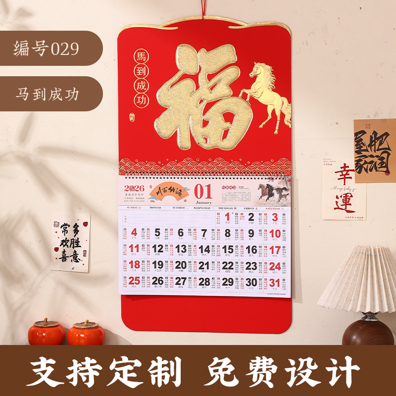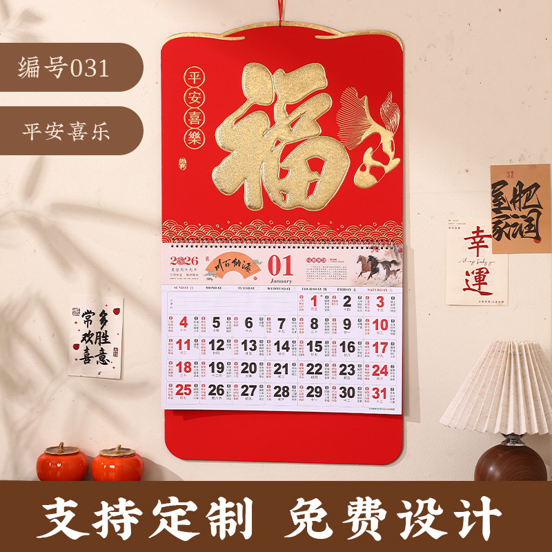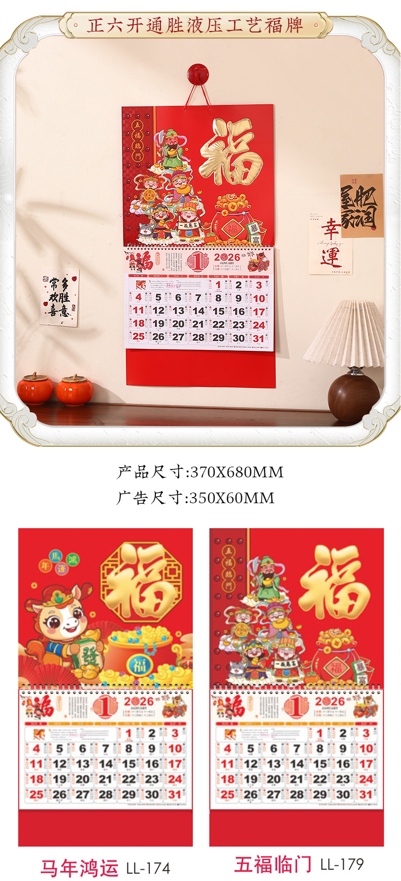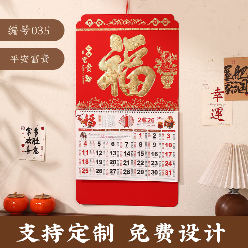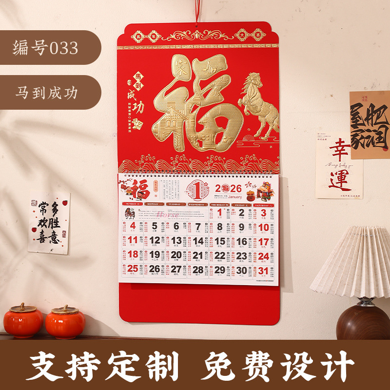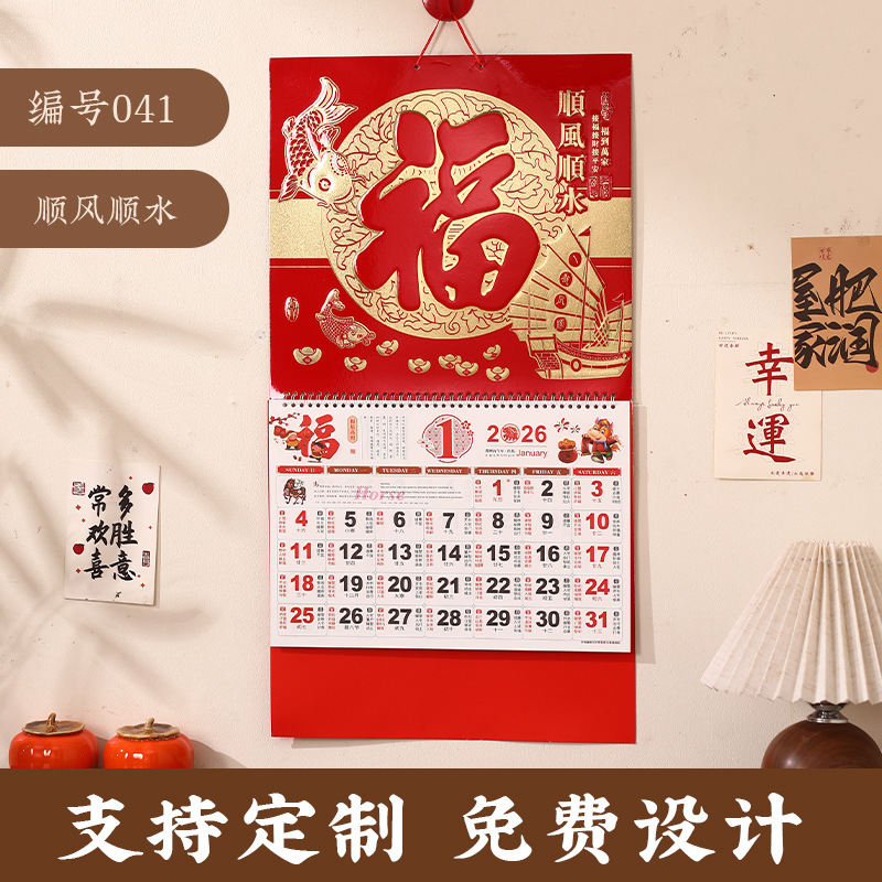 2026年福字挂历定制公司礼品手撕日历大号万年历定做创意金箔家用