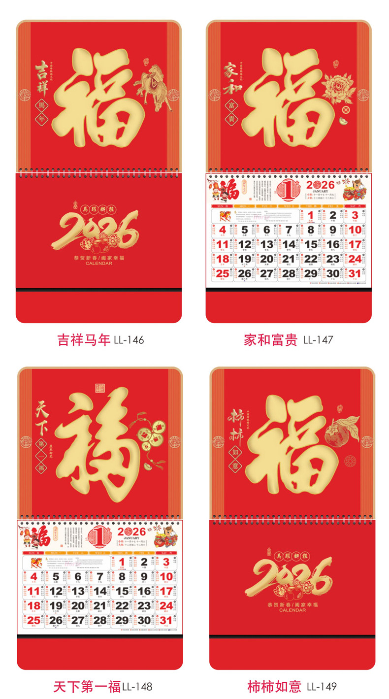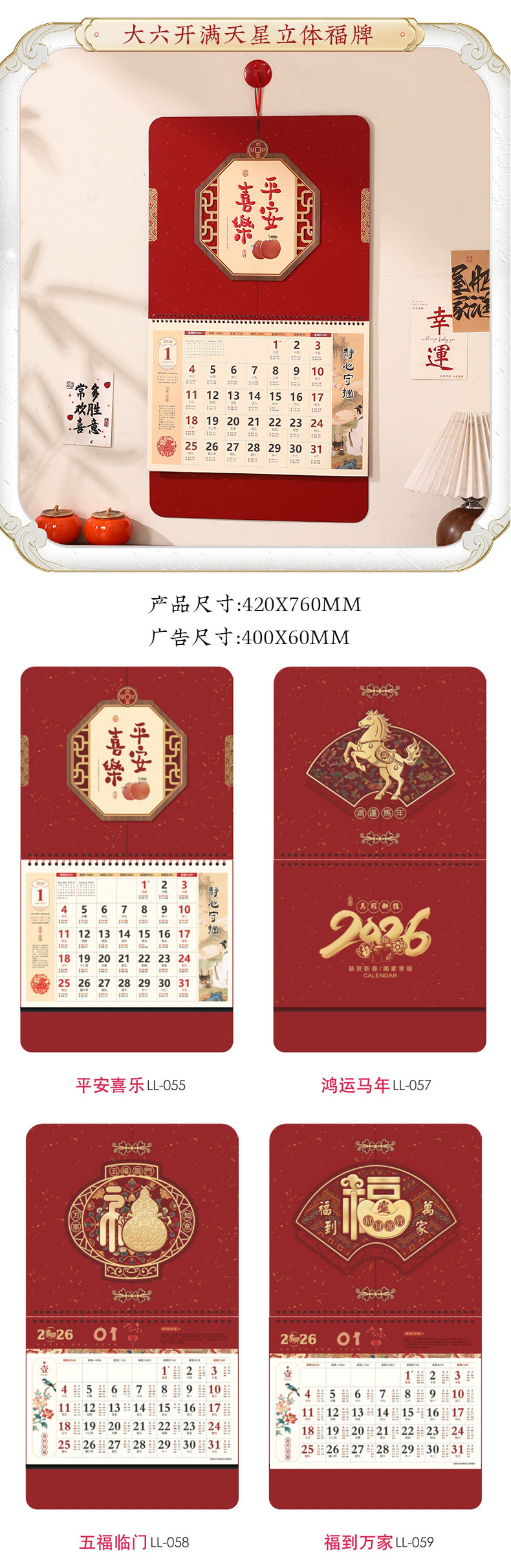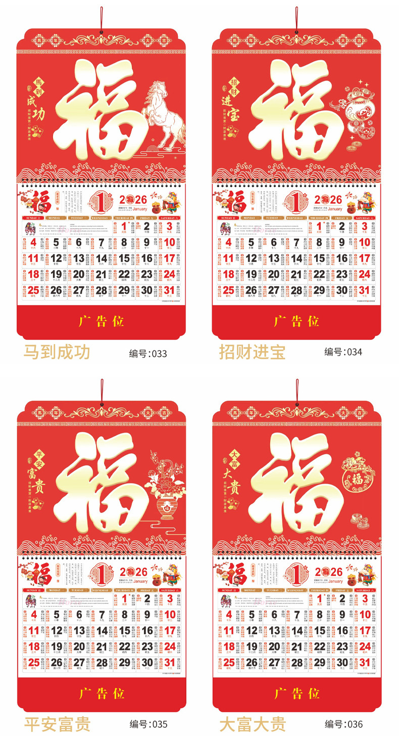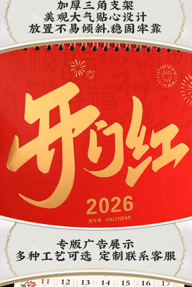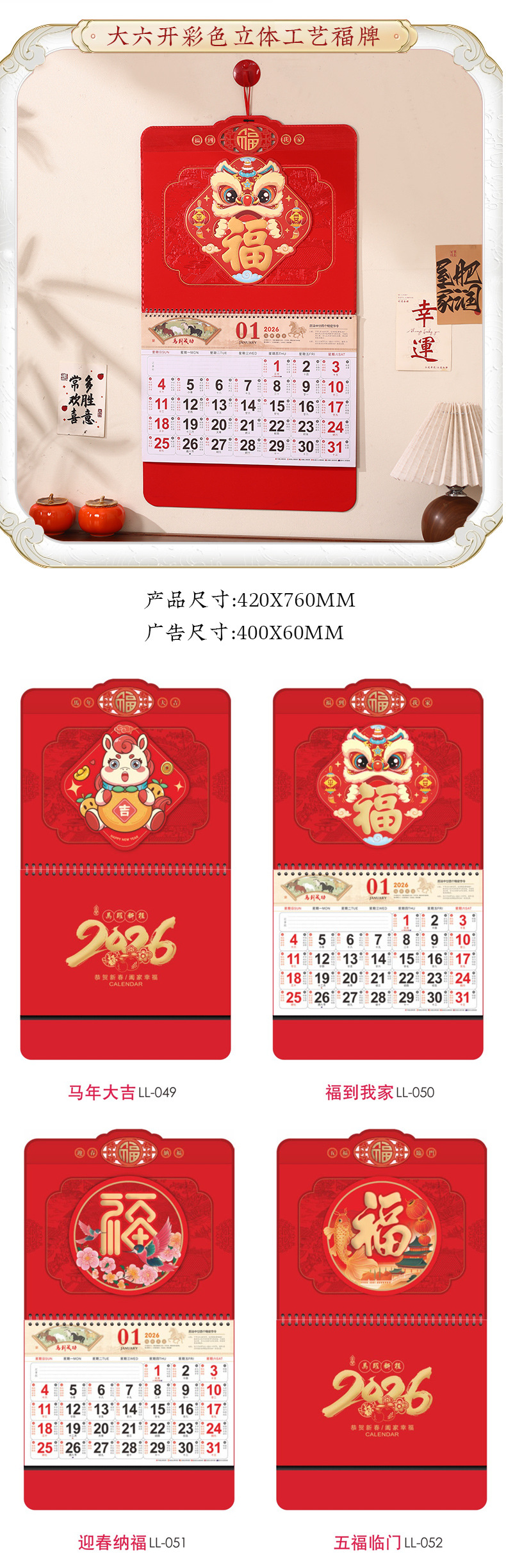 2026年福字挂历定制公司礼品手撕日历大号万年历定做创意金箔家用