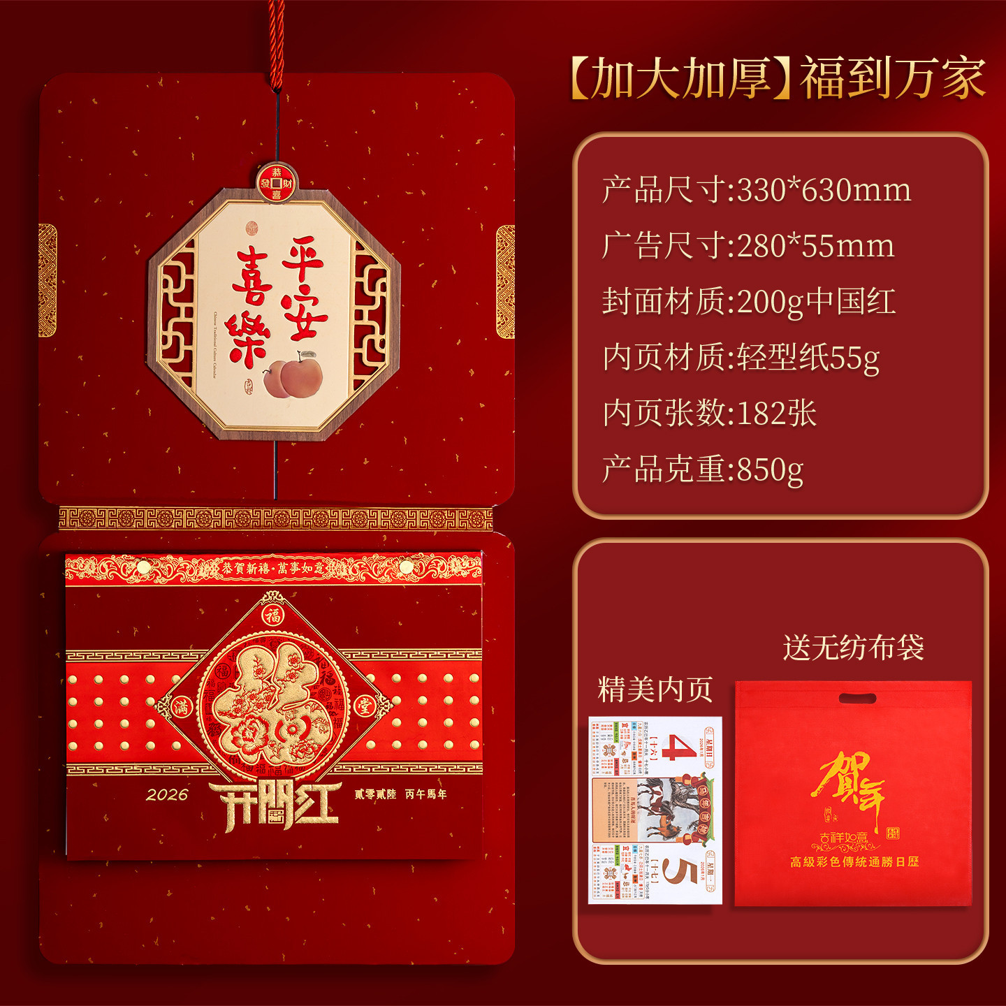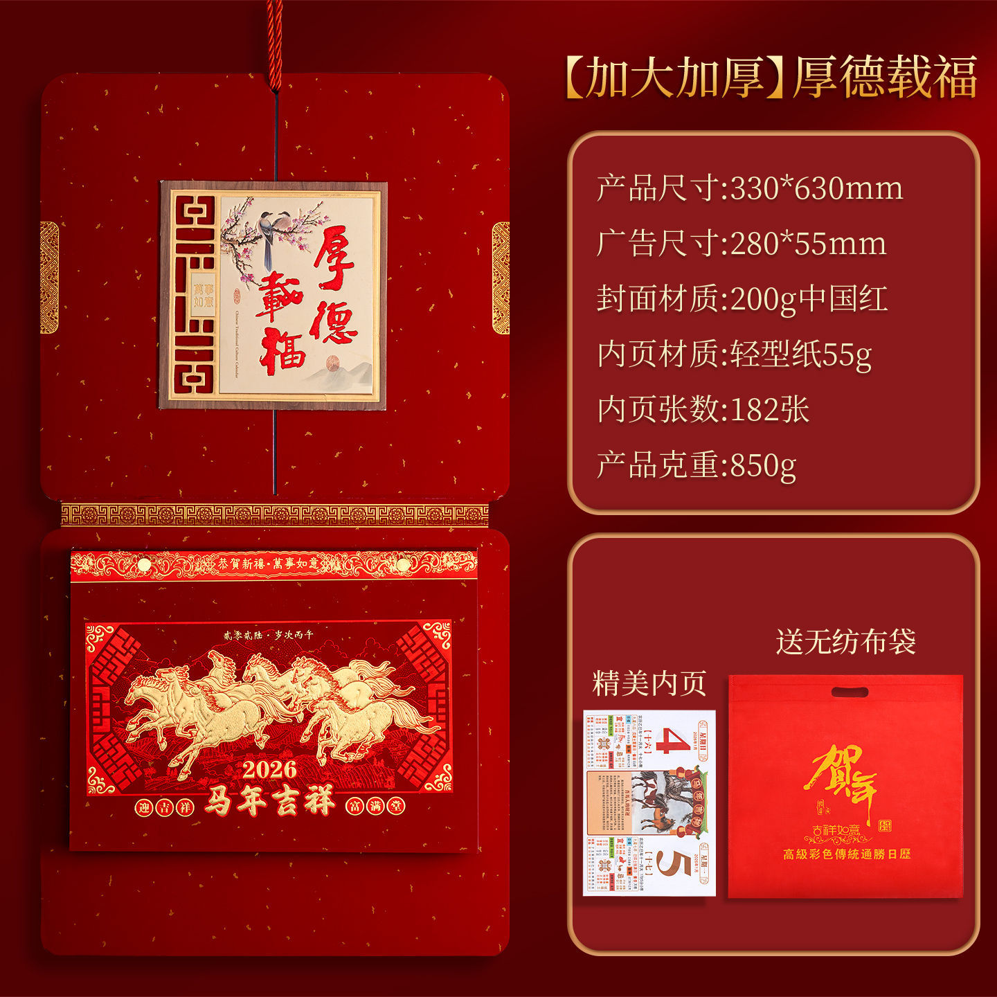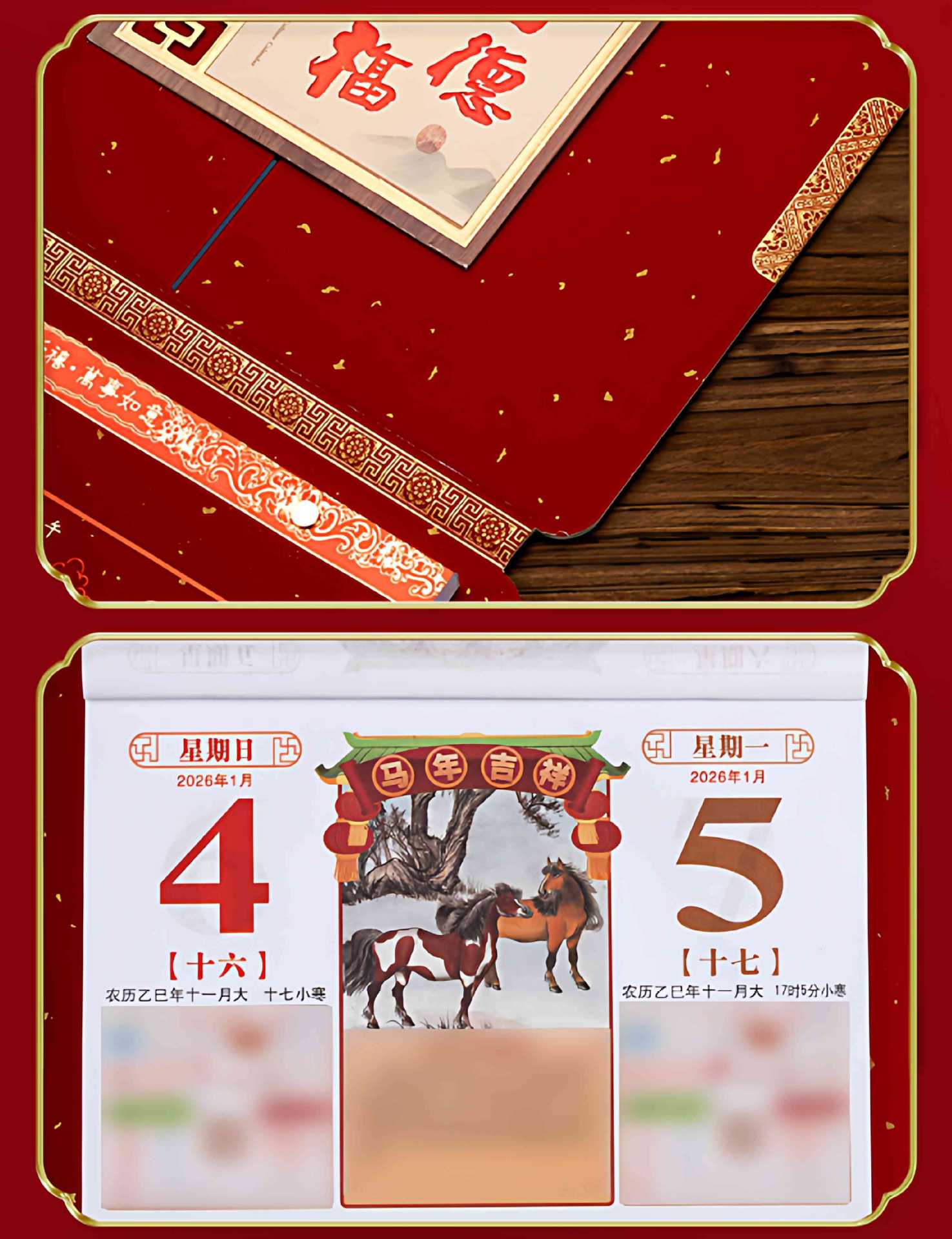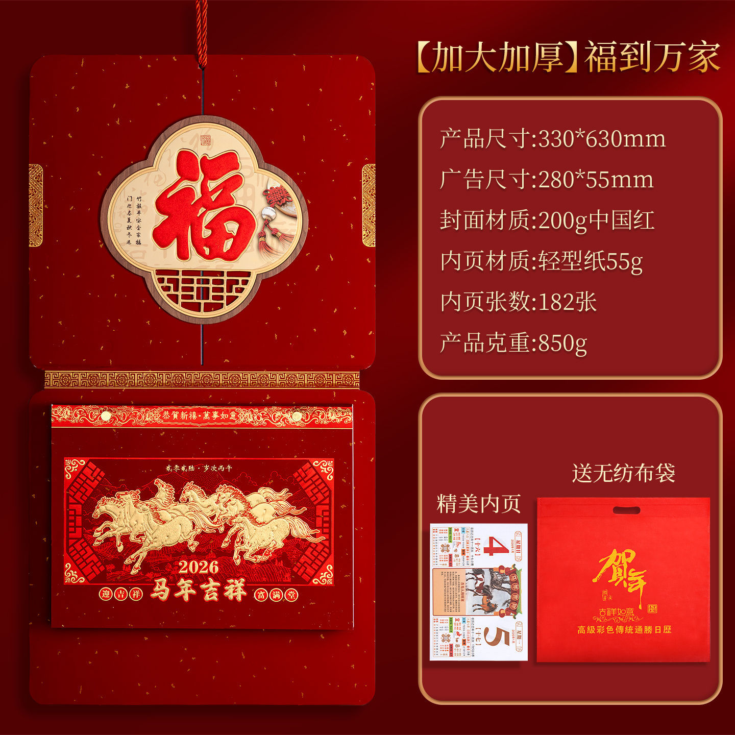 高档撕历2026年马年挂历中国红福字春节喜庆礼盒装传统年画挂历