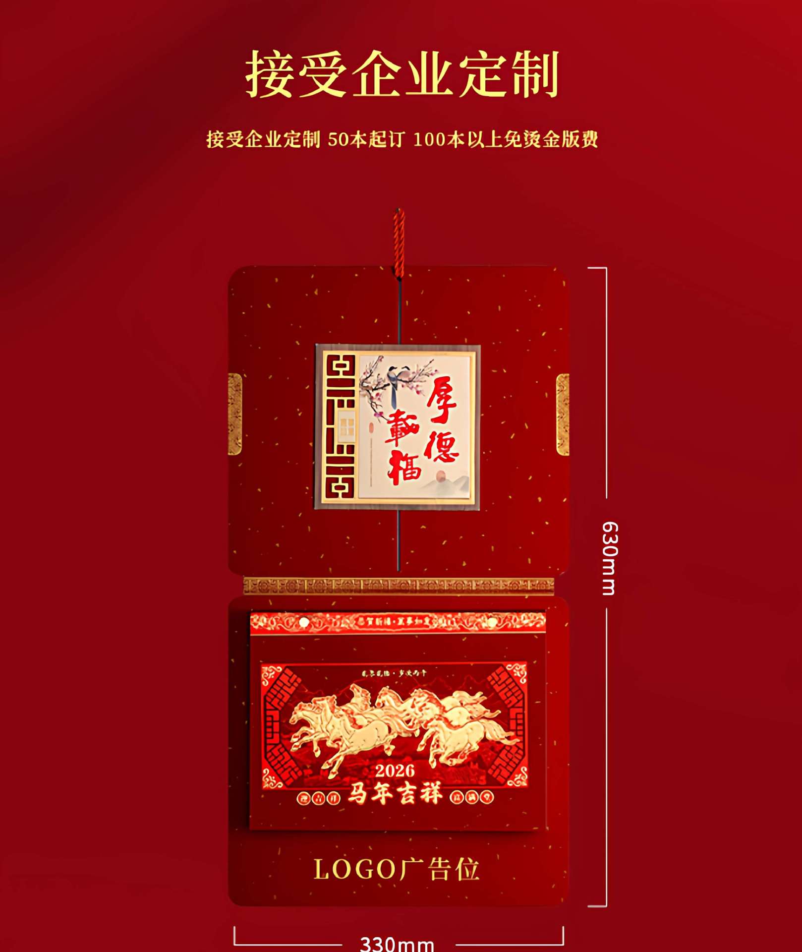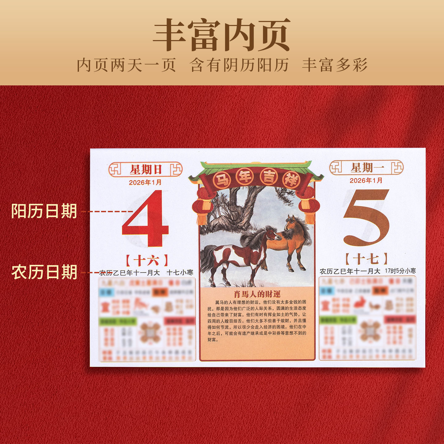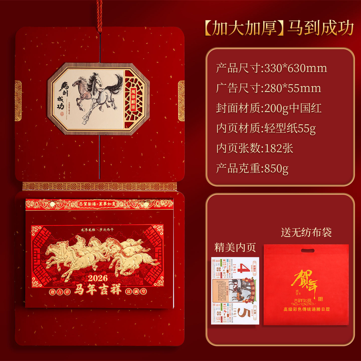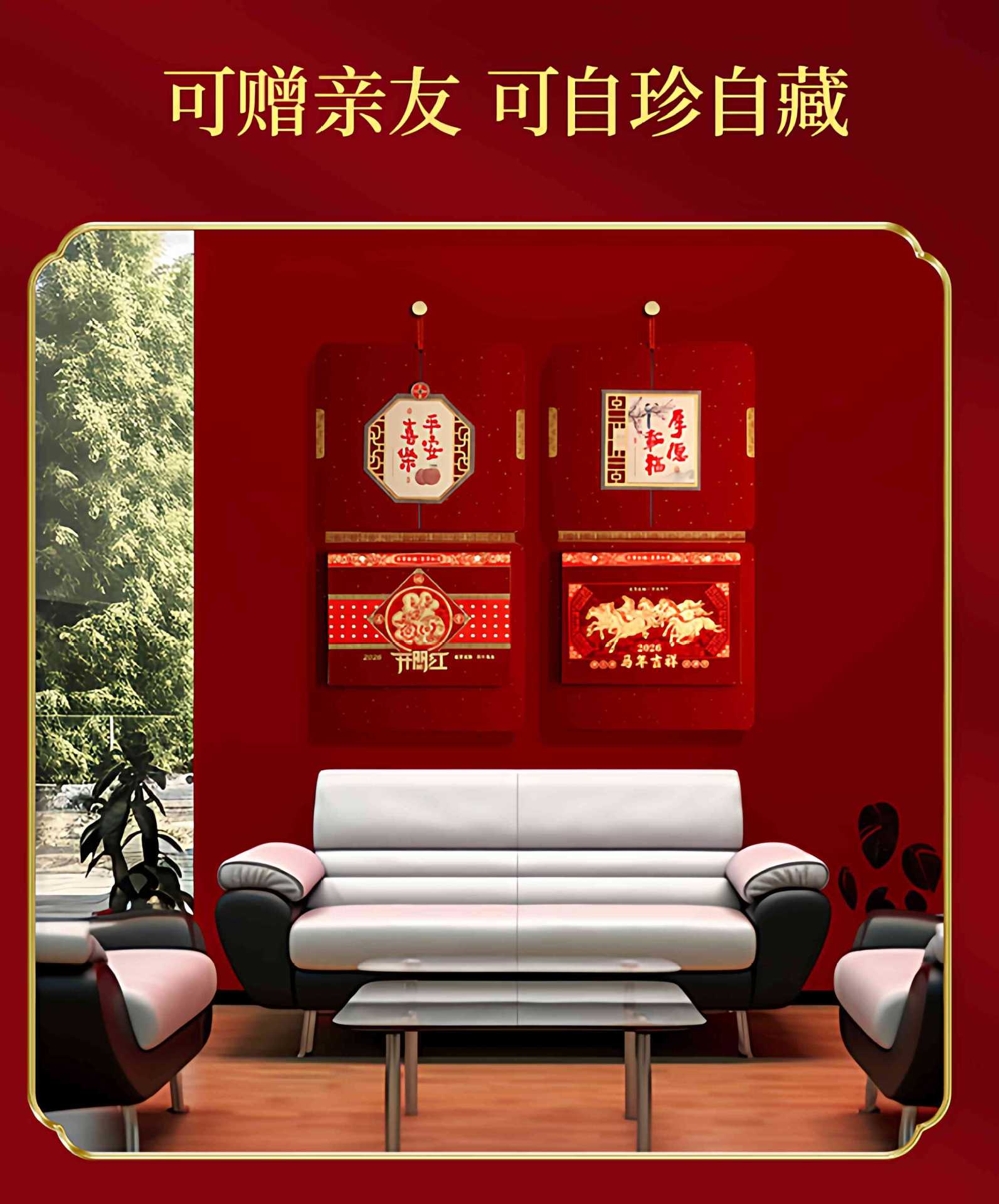 高档撕历2026年马年挂历中国红福字春节喜庆礼盒装传统年画挂历