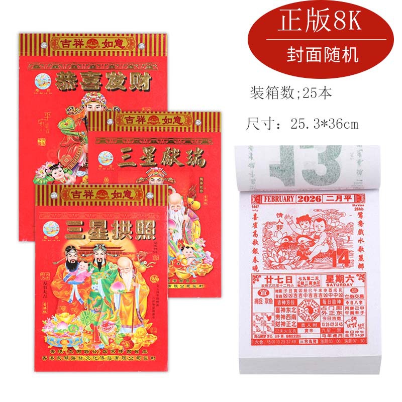 老黄历2026年365页日历大号挂墙老人挂历手撕万年历撕历一天一页